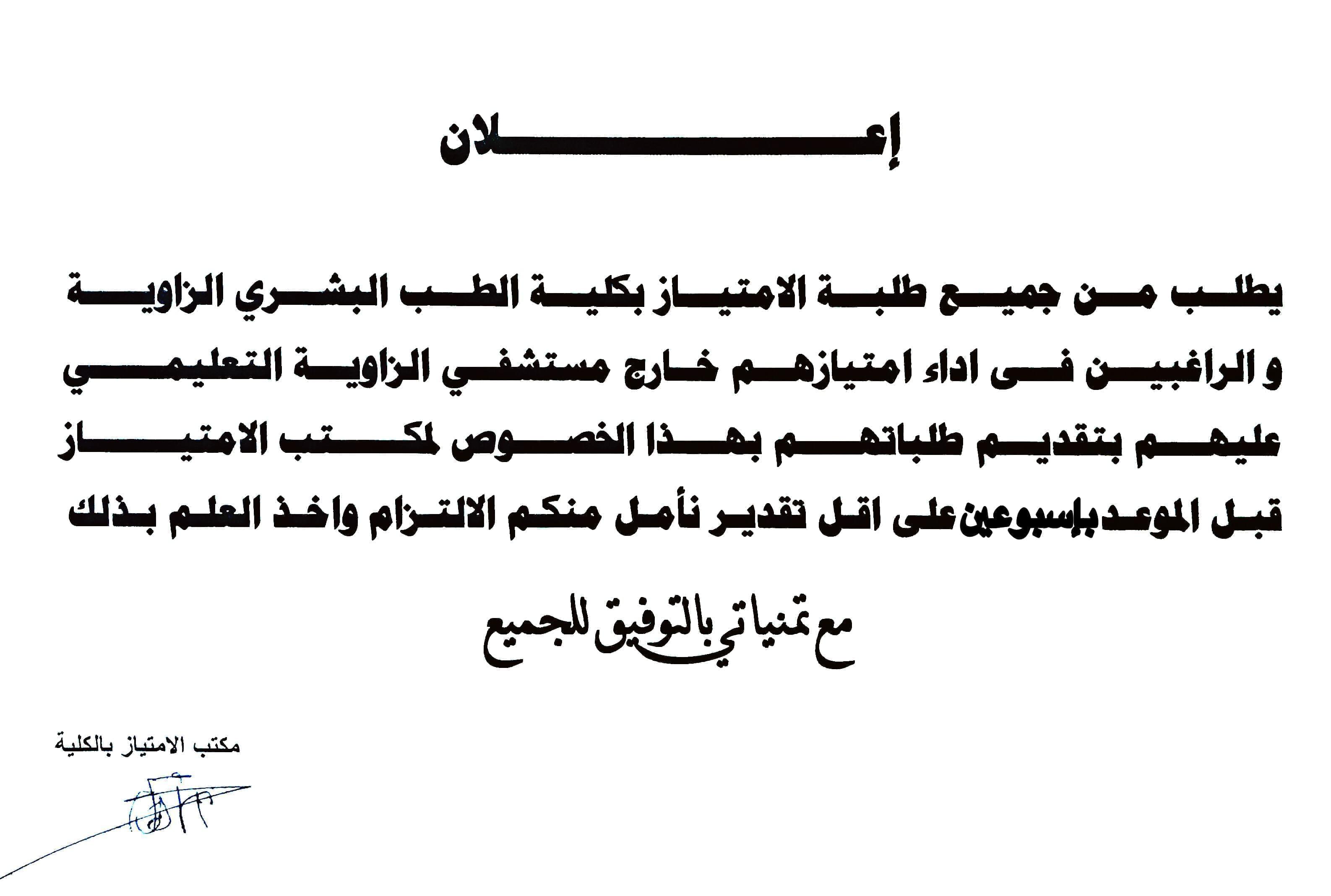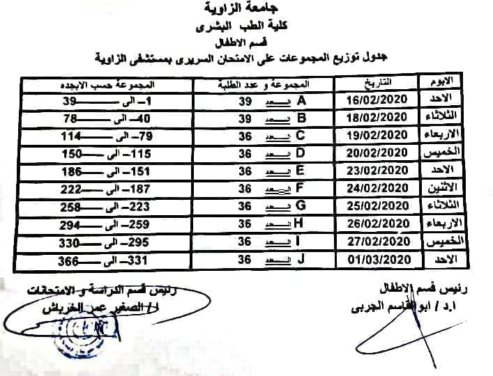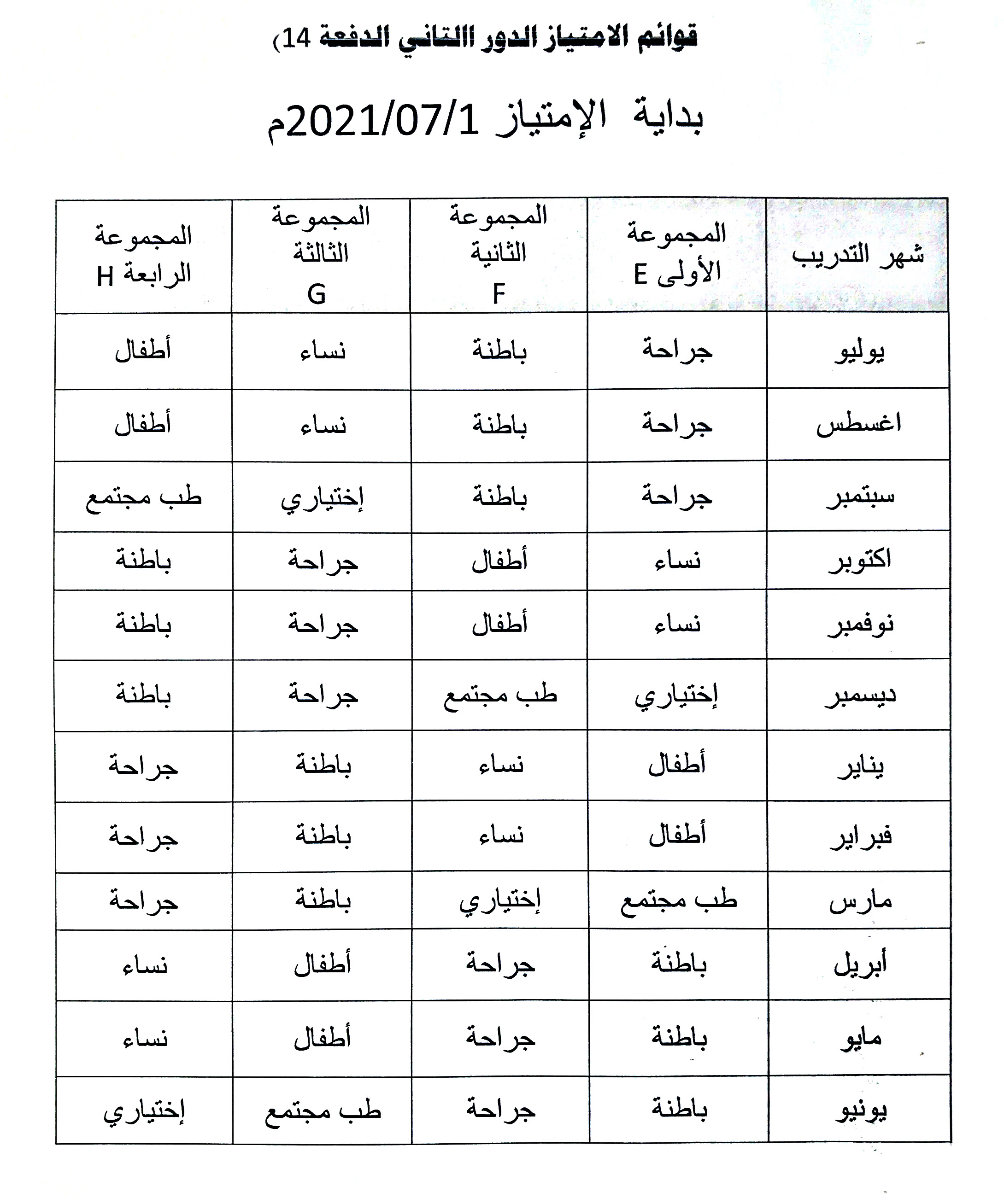 تقسيم مجموعات الإمتياز الدفعة 13 ( الدور الثاني) مع ملاحظة بأن من يرغب في أداء إمتيازه خارج الزاوية لأي تخصص التقدم بطلباتهم خلال أقرب فترة وقبل البدء بالإمتياز.