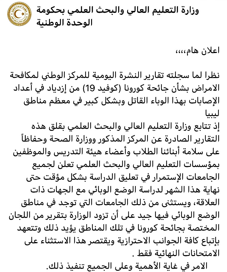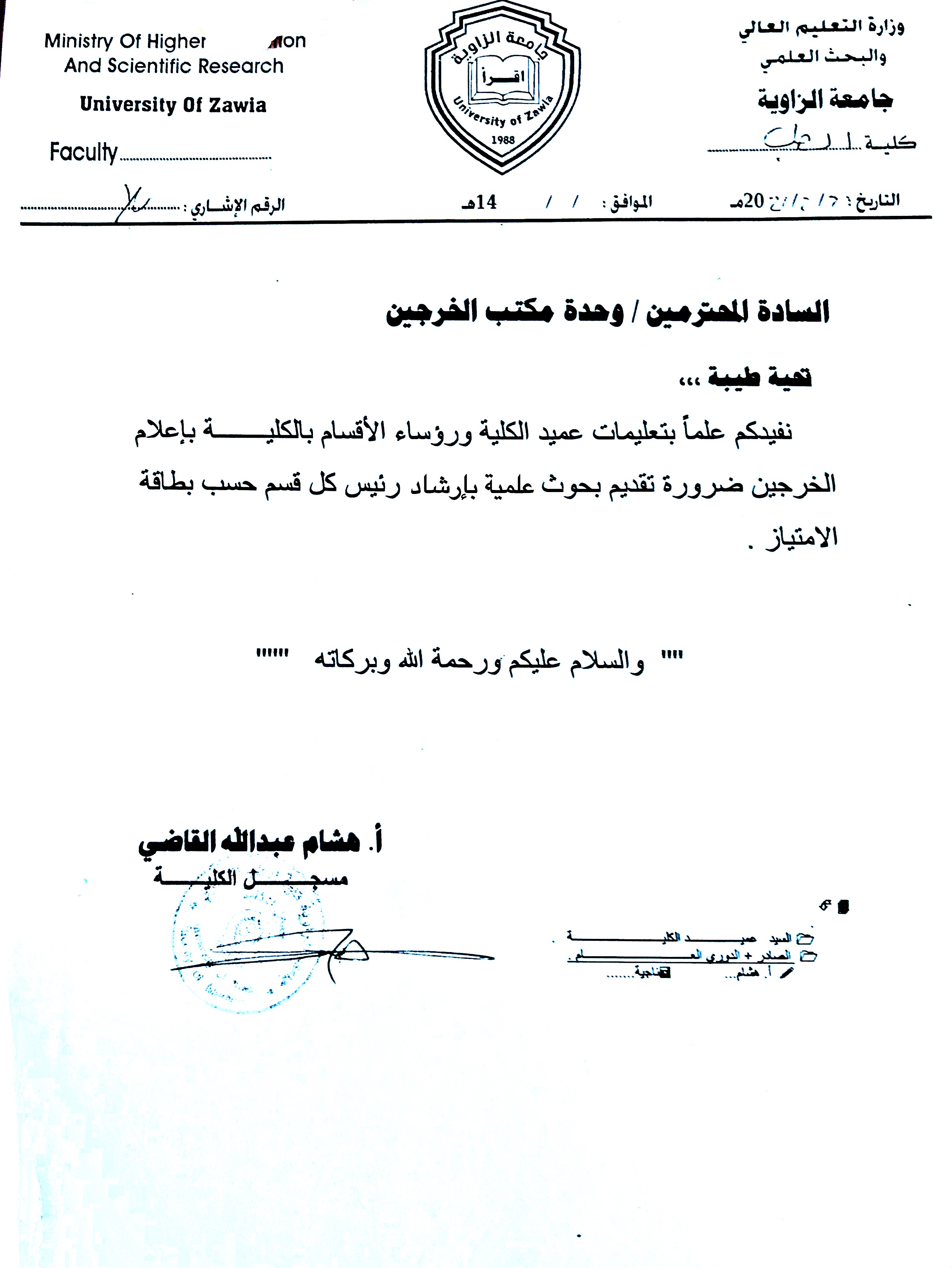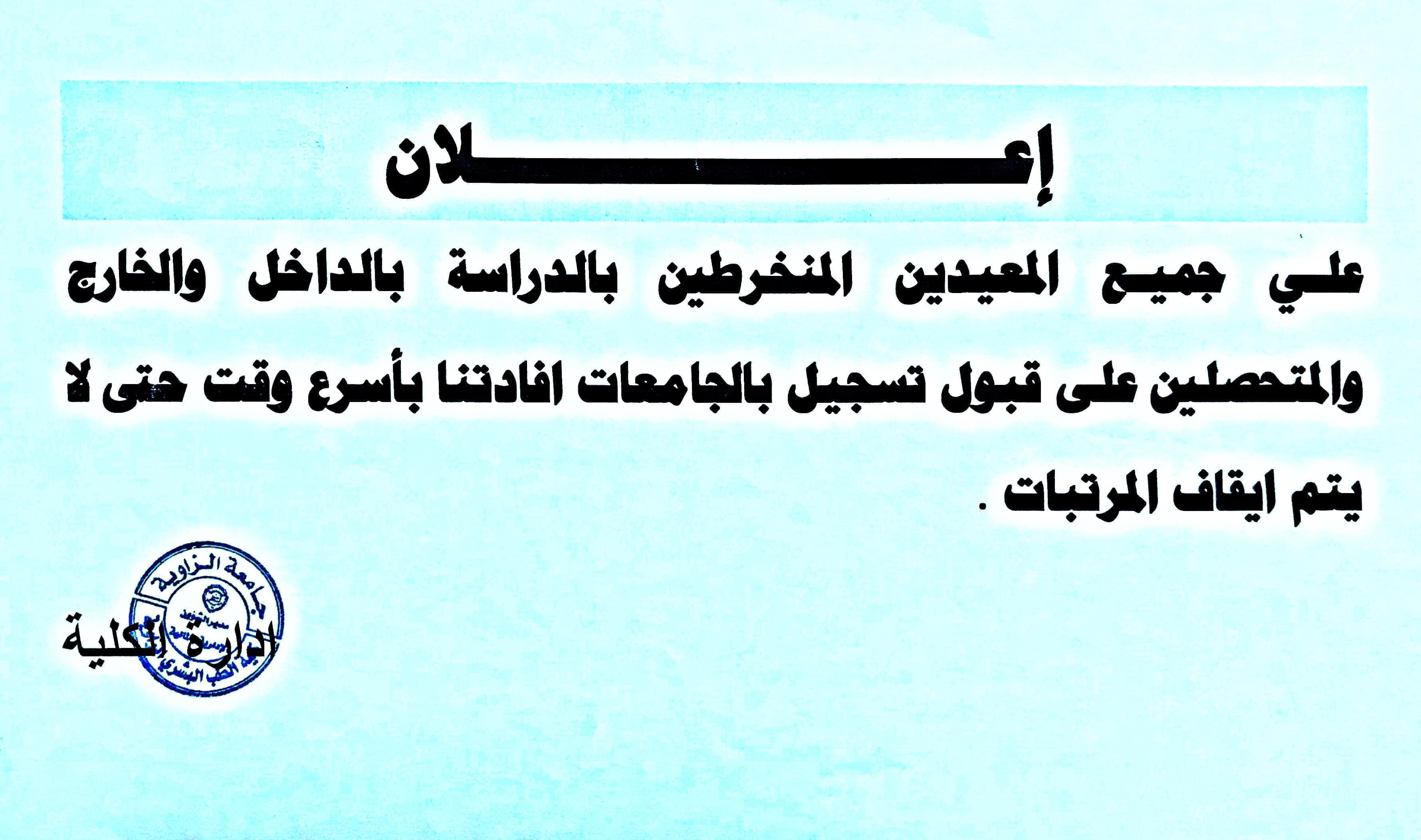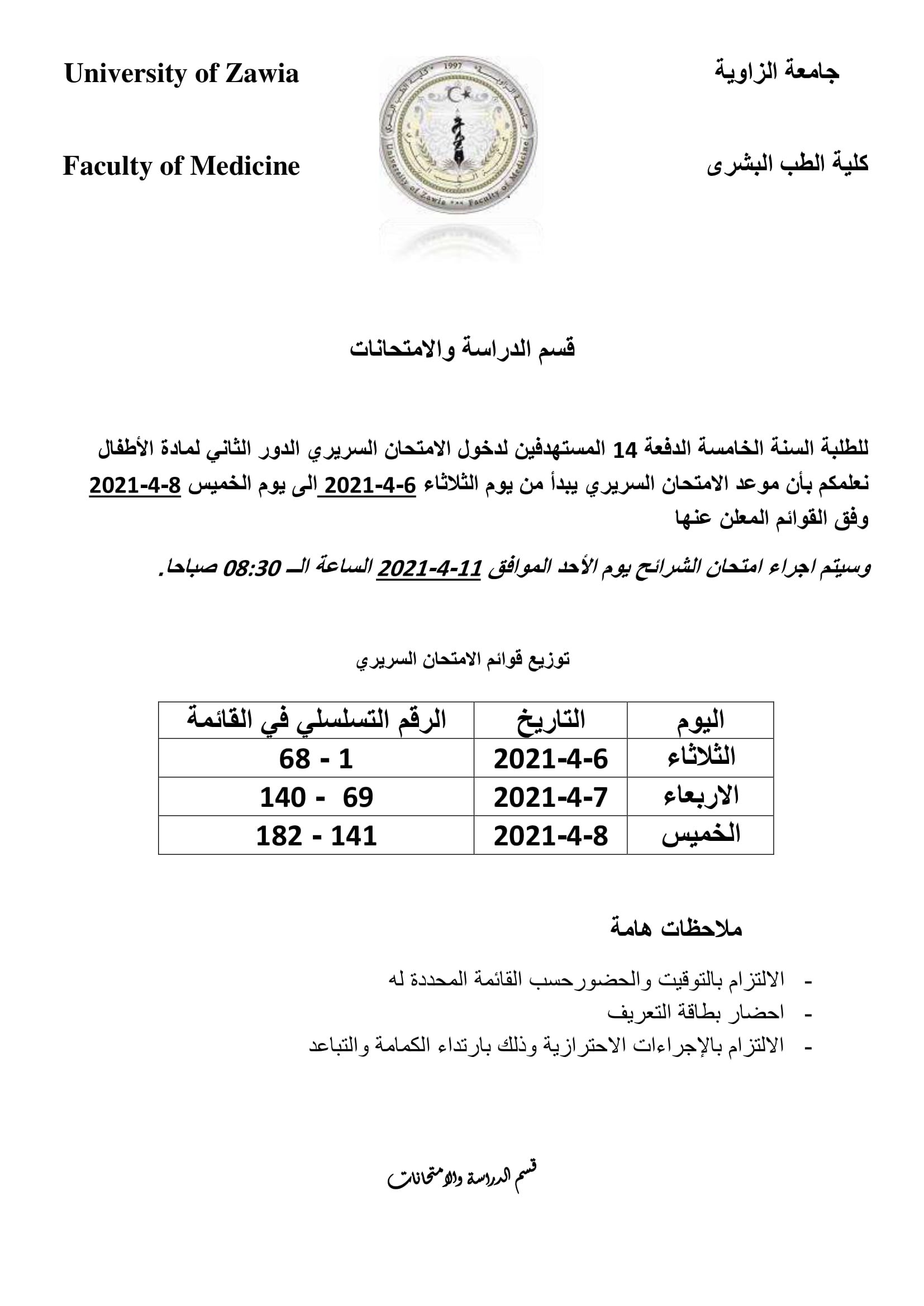 على الطلبة الغير مدرجة أسماؤهم بالقوائم مراجعة قسم الدراسة والإمتحانات.