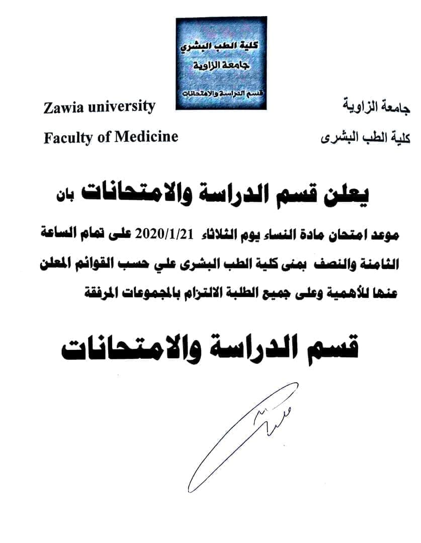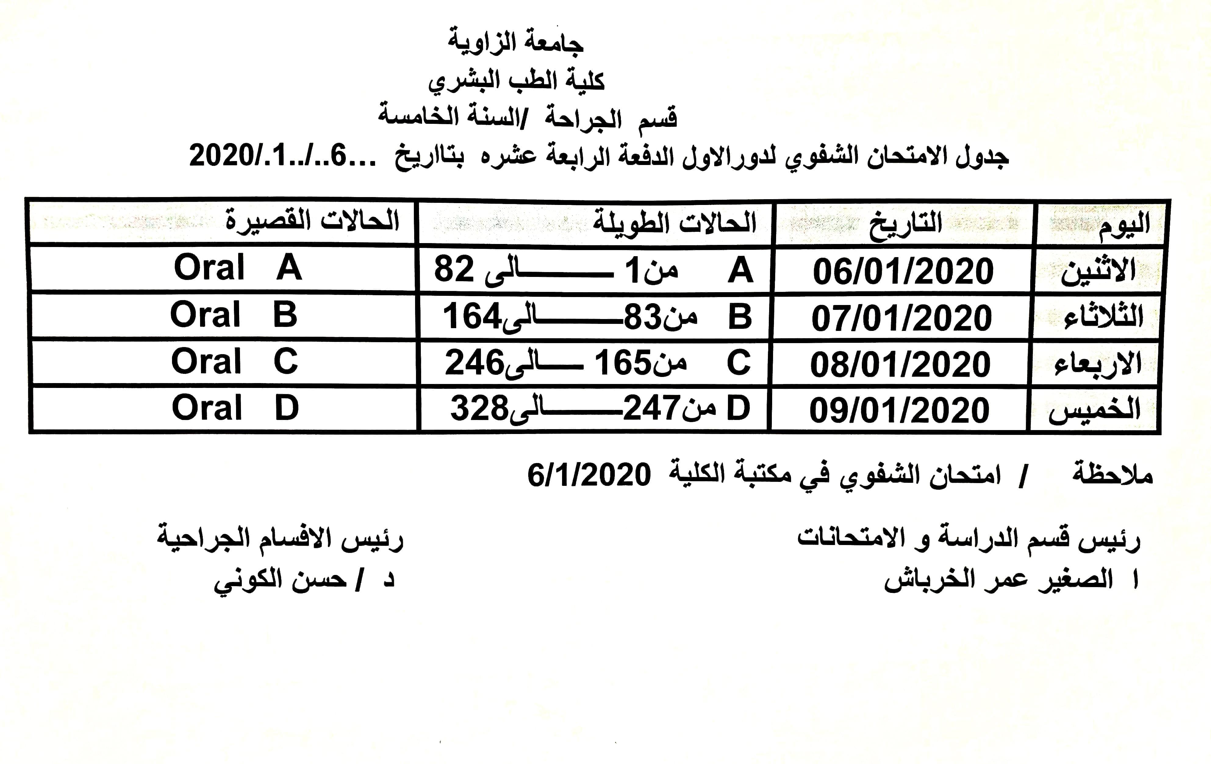 الإمتحان الشفوي بمكتبة كلية الطب البشري الزاوية.