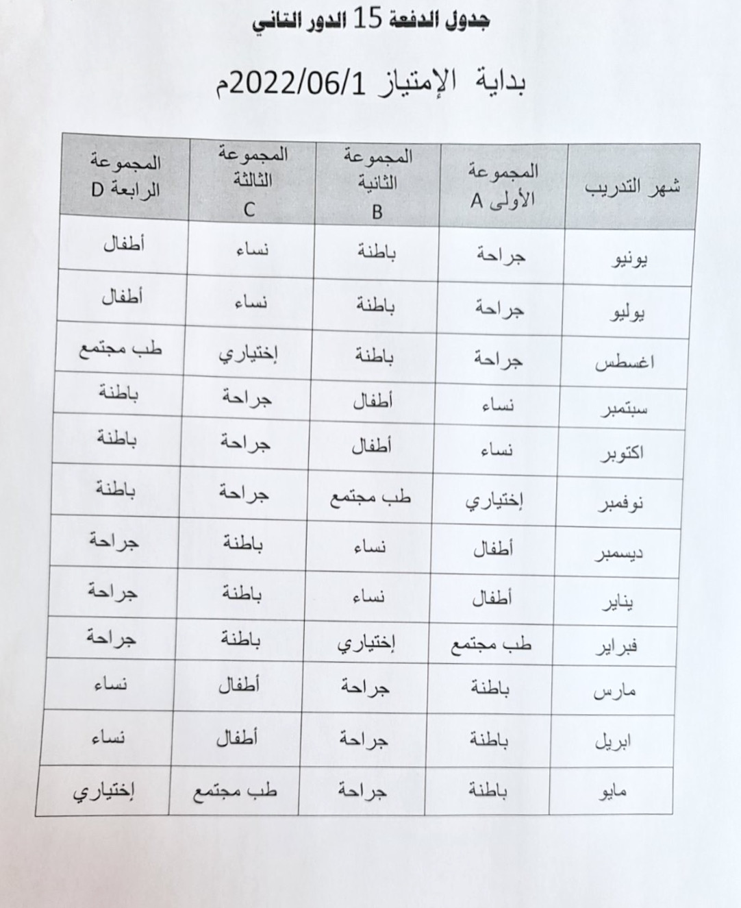علما بأن موعد بداية فترة الامتياز هو يوم الأحد الموافق 22-5-2022 .