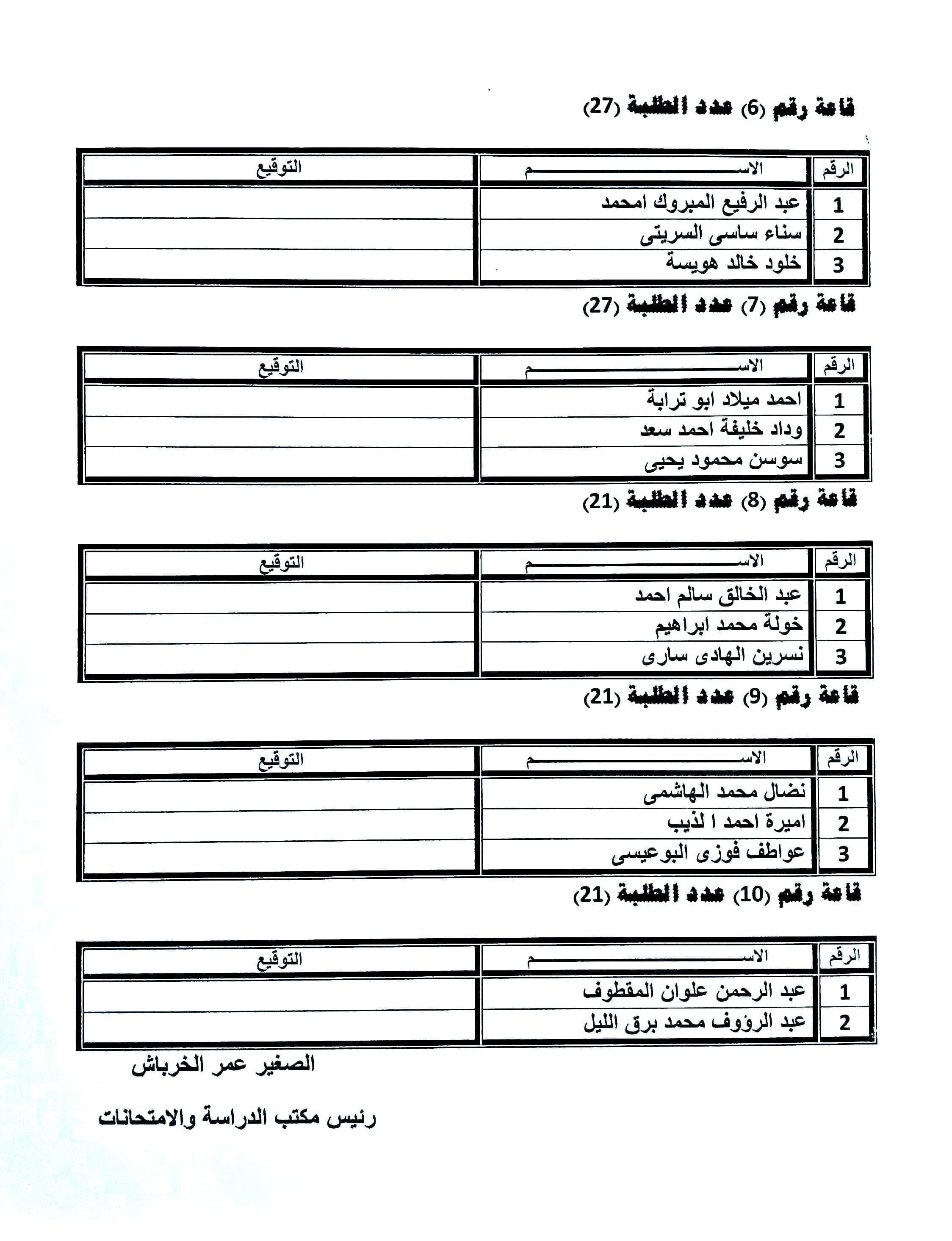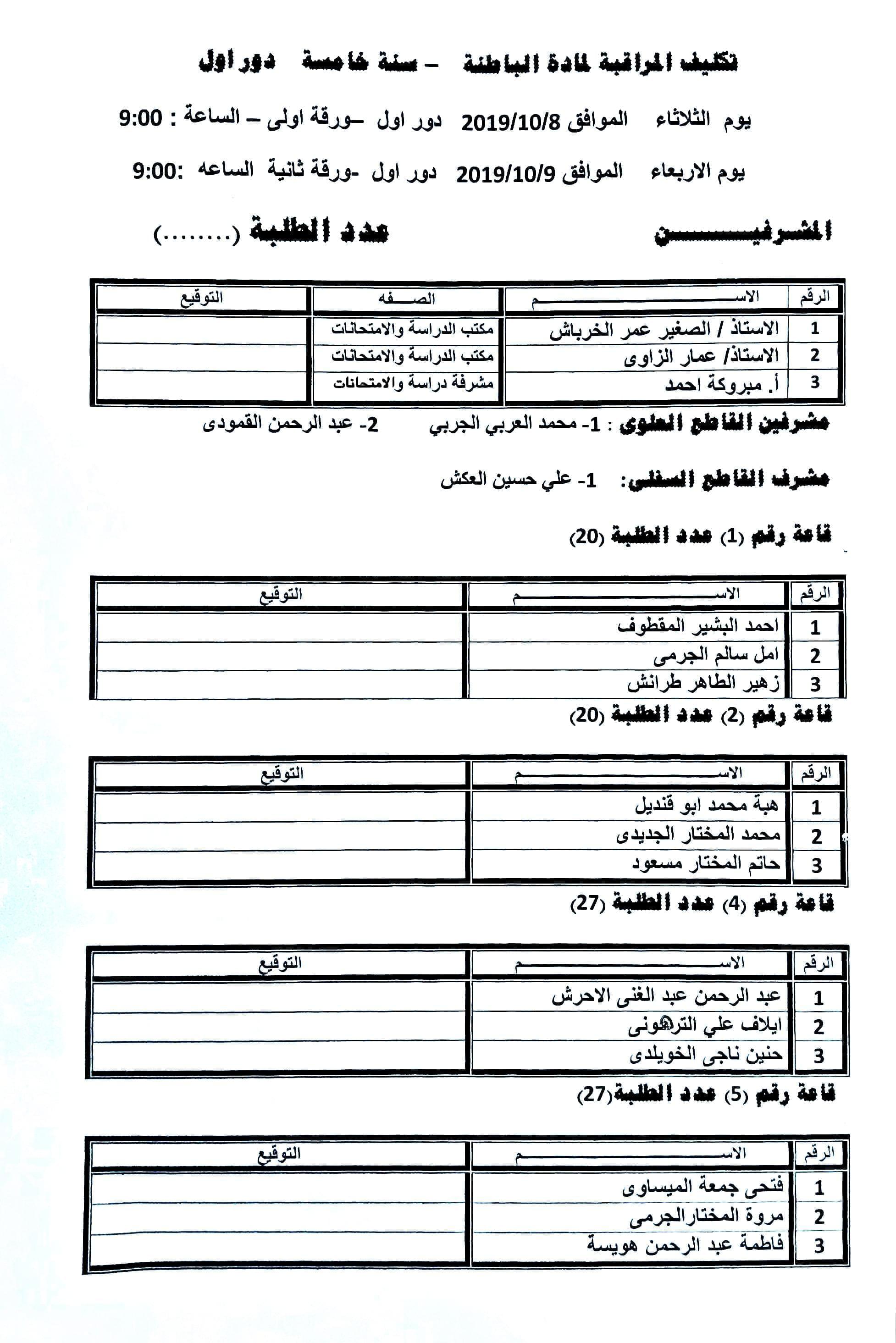 أسماء المكلفين بمراقبة امتحان الورقة الأولى والثانية لمادة الباطنة للسنة الخامسة الدفعة 14