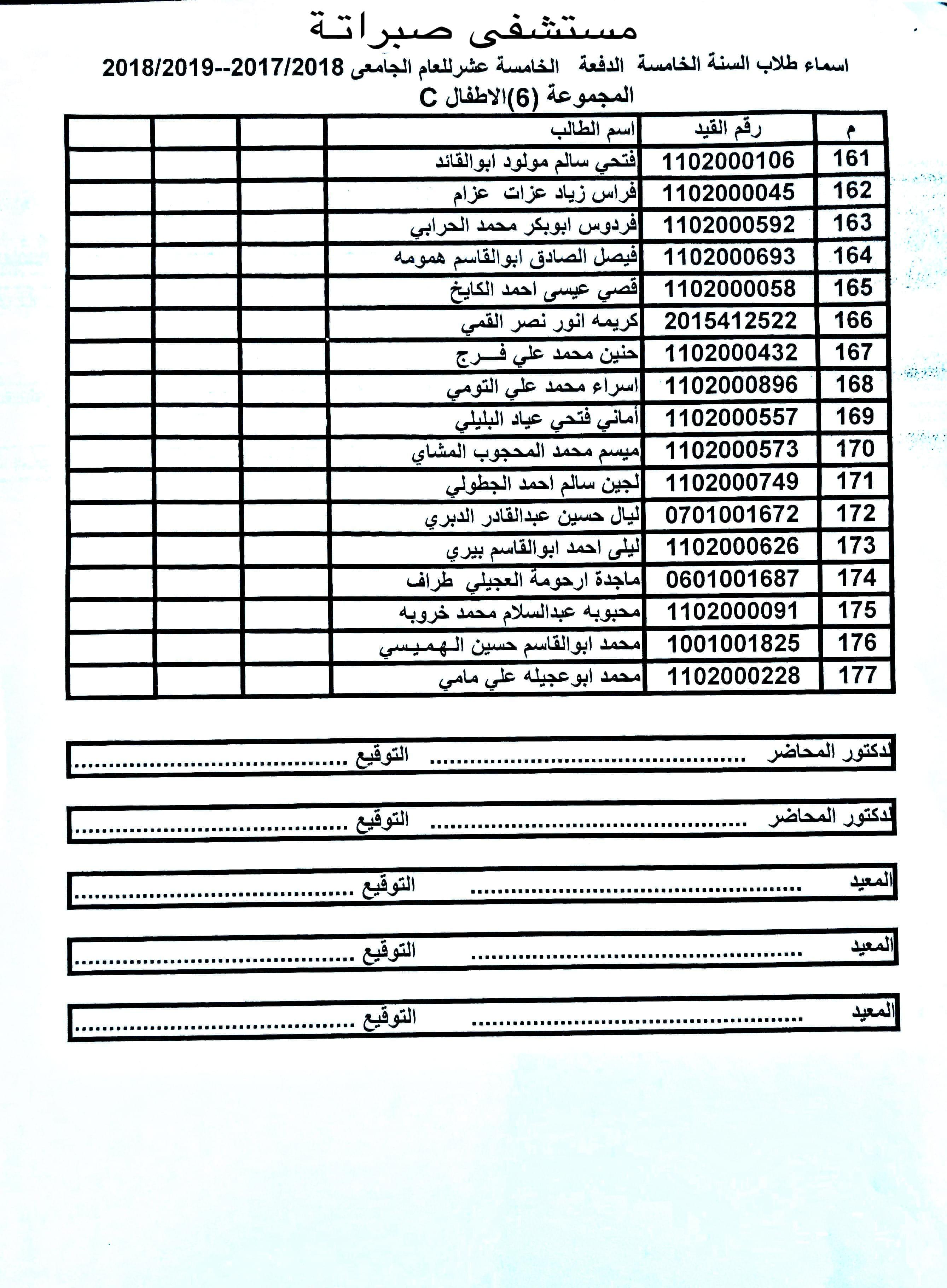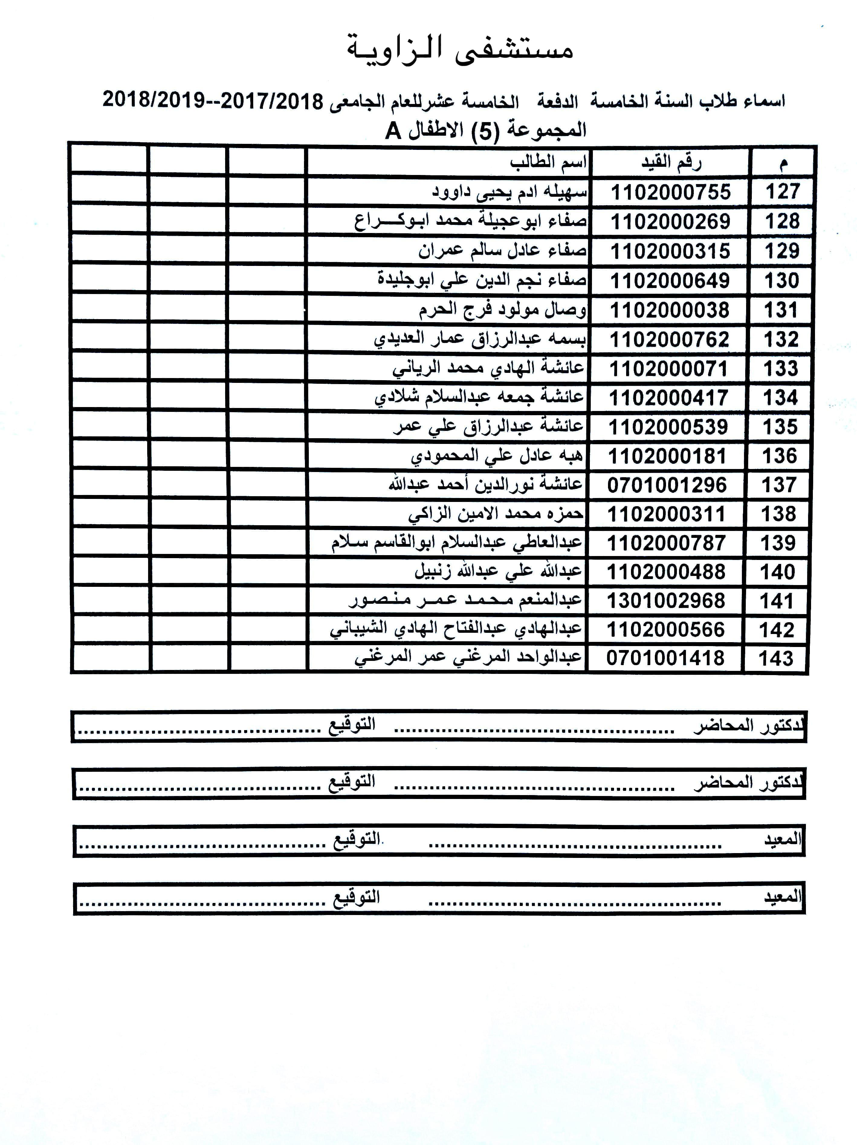 تقسيم مجموعات مادة الأطــفــال للسنة الخامسة الدفعة 15