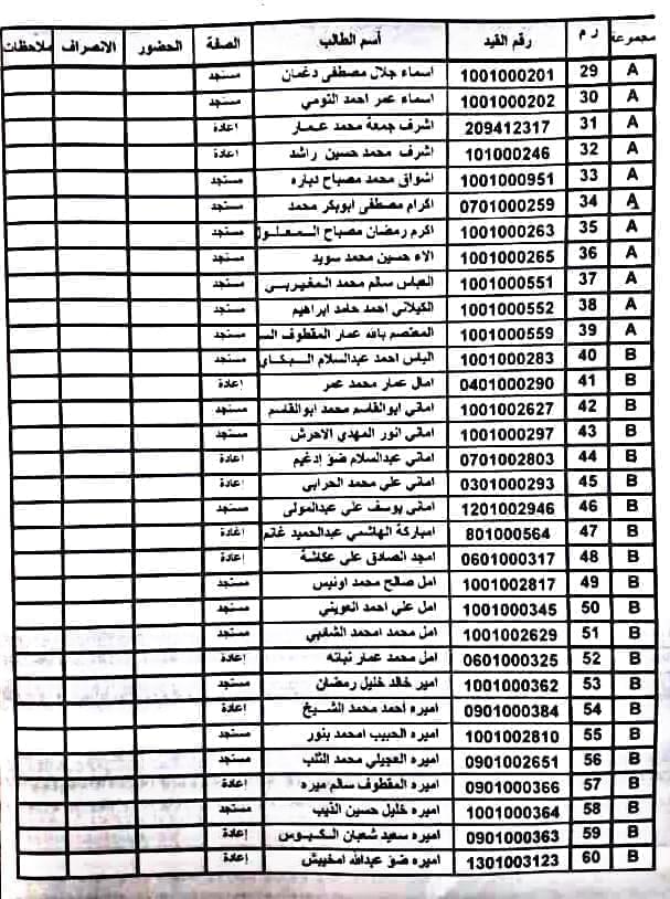 يرجى الالتزام بالموعد والمجموعة المحددة لكل طالب.