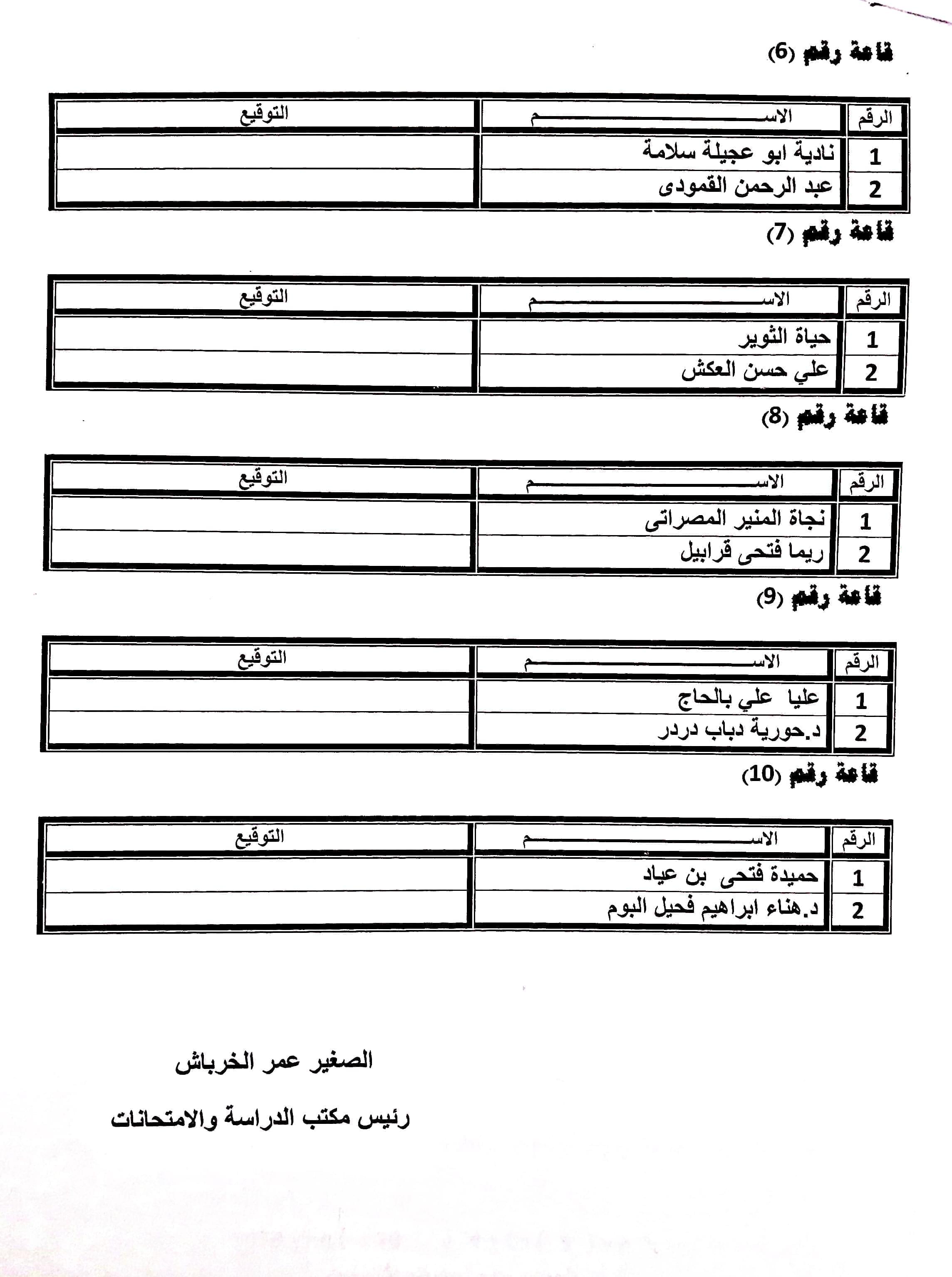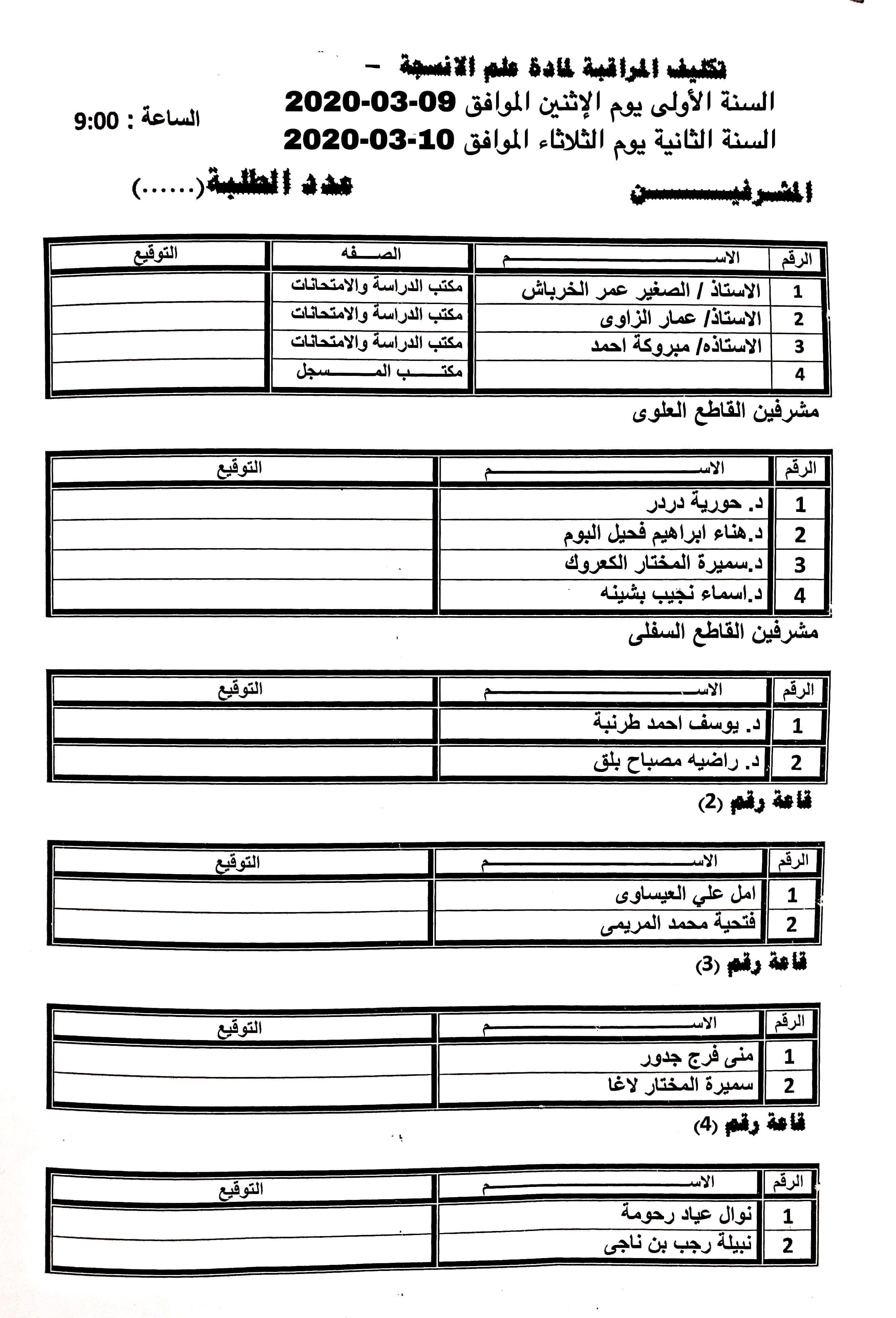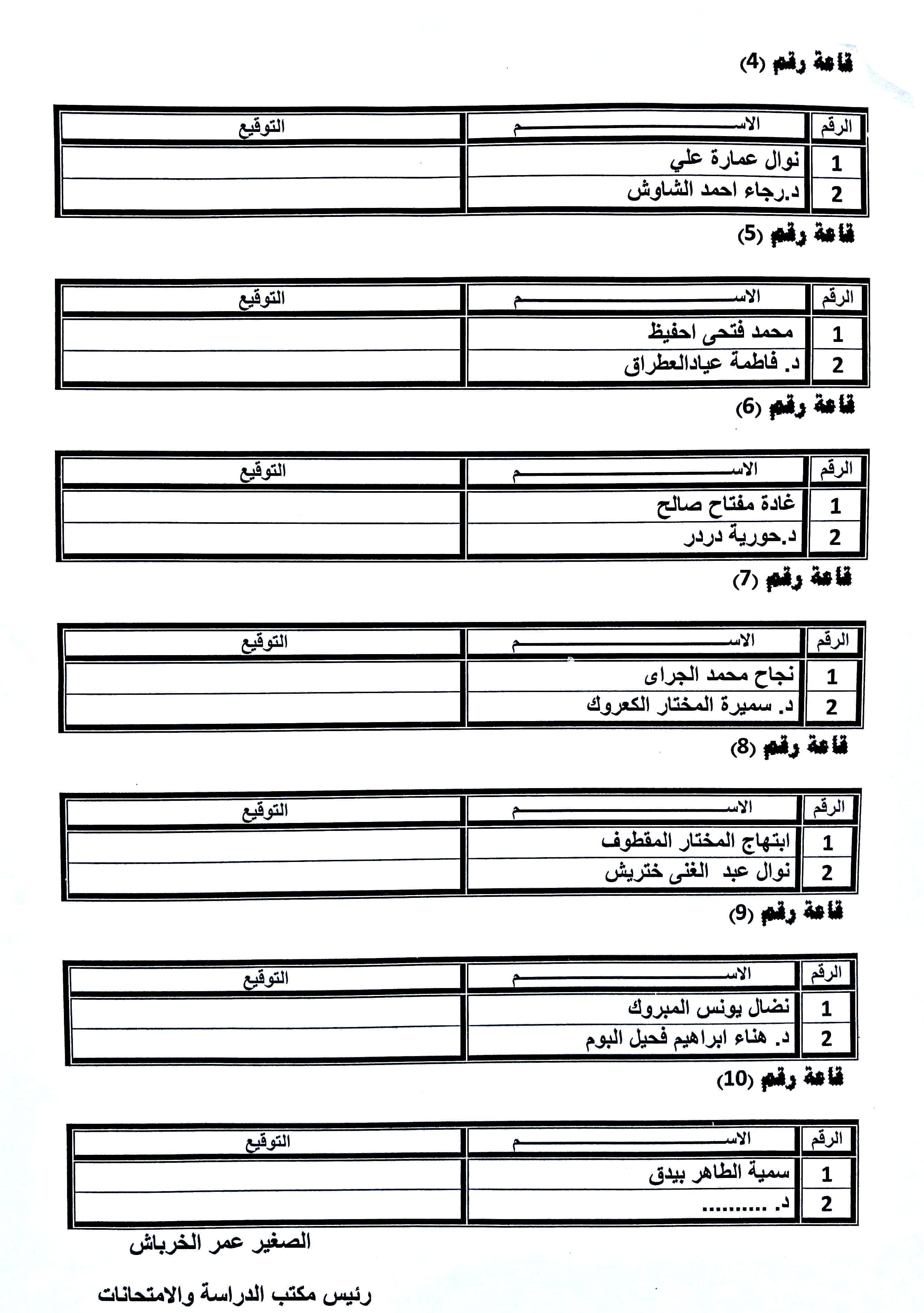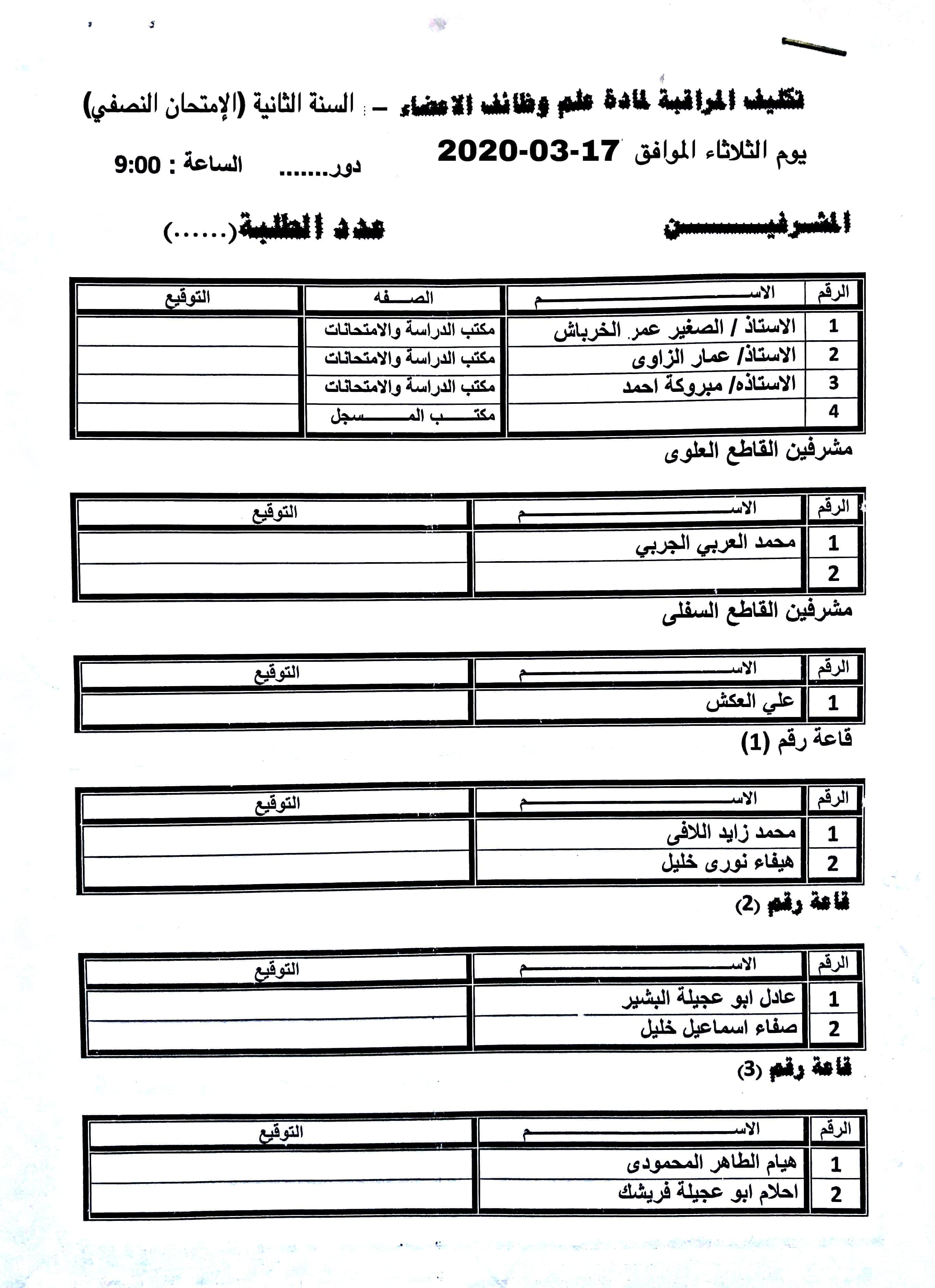 أسماء المكلفين لمراقبة الإمتحانات النصفية للسنتين الأولى والثانية طب بشري .