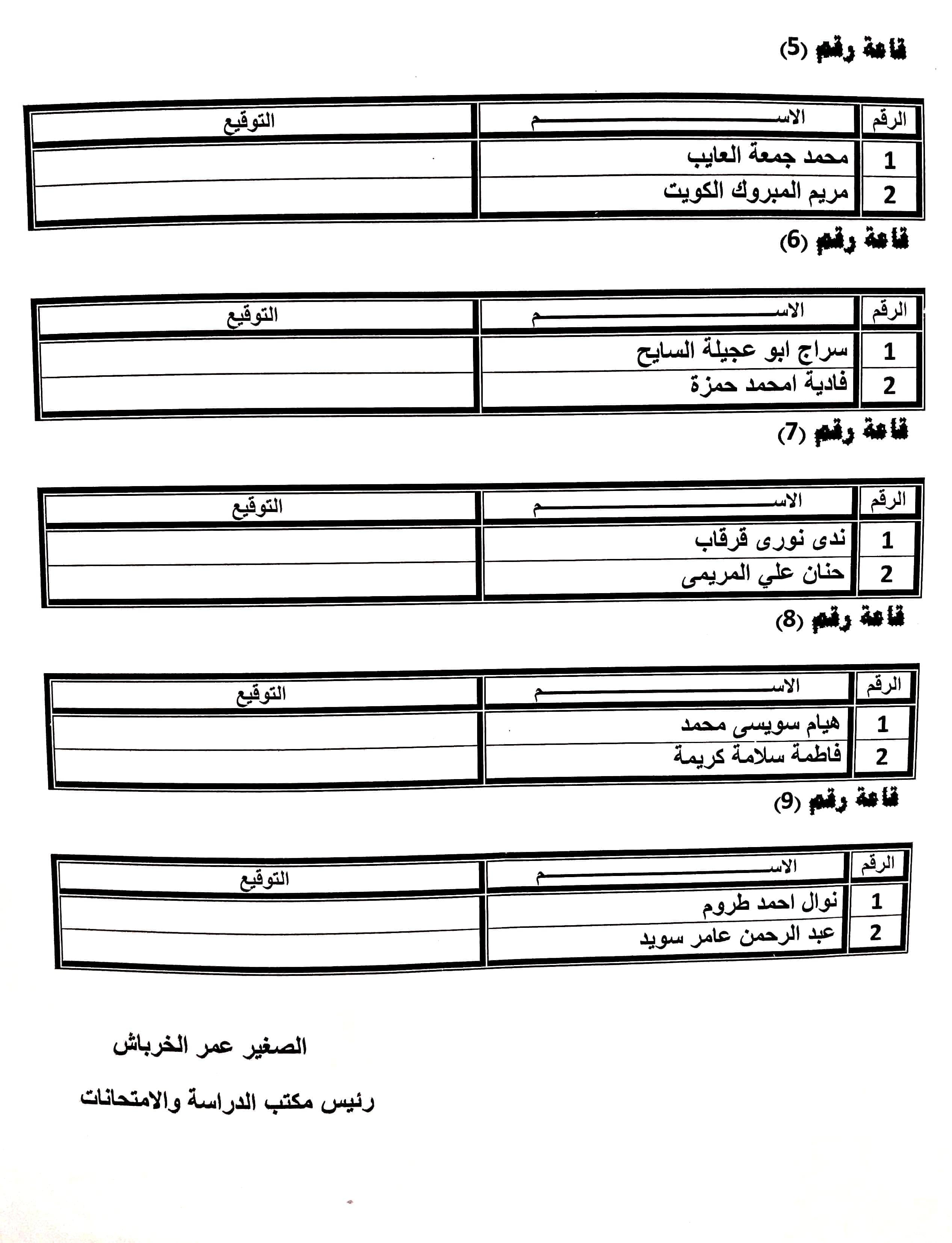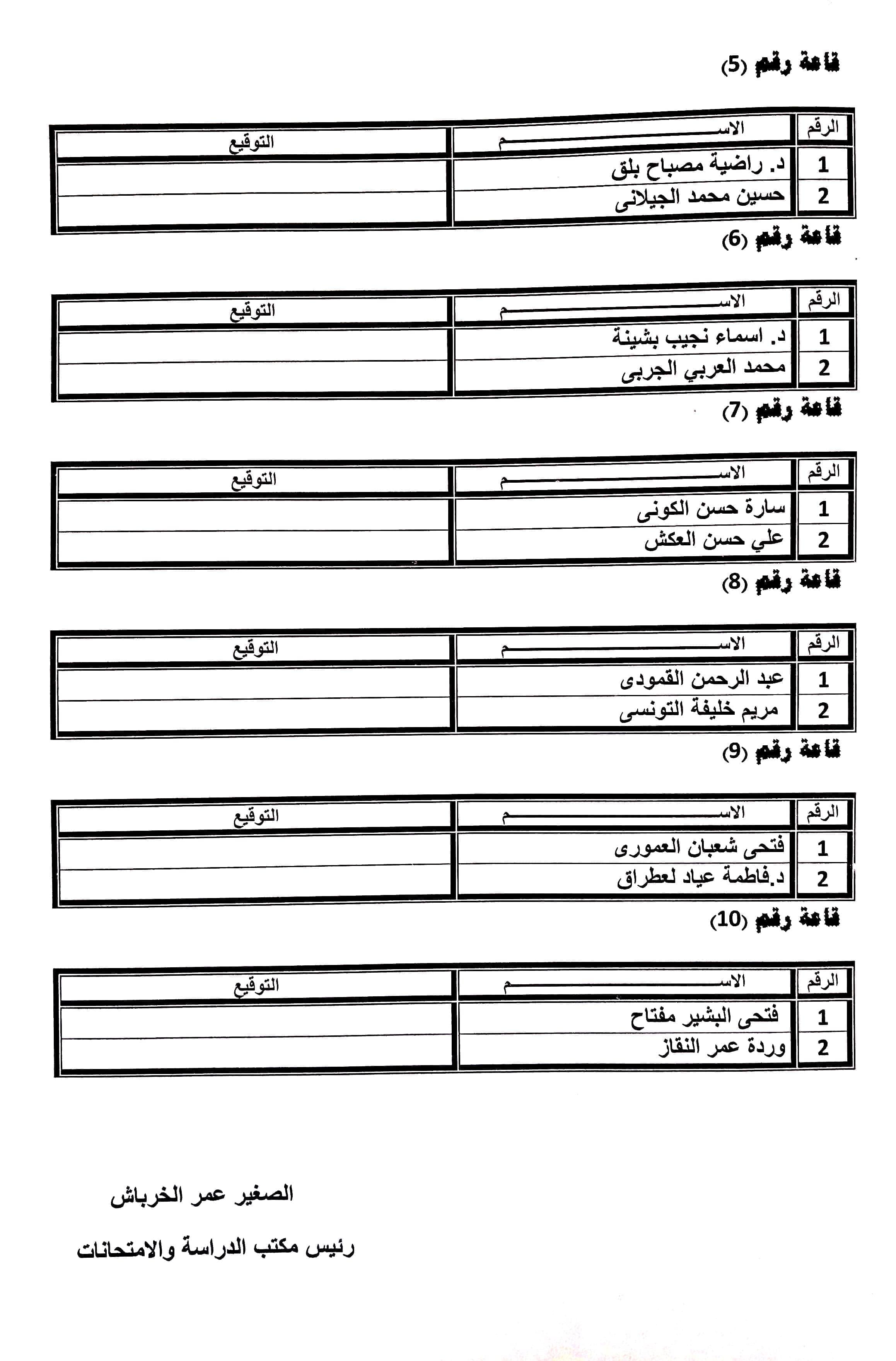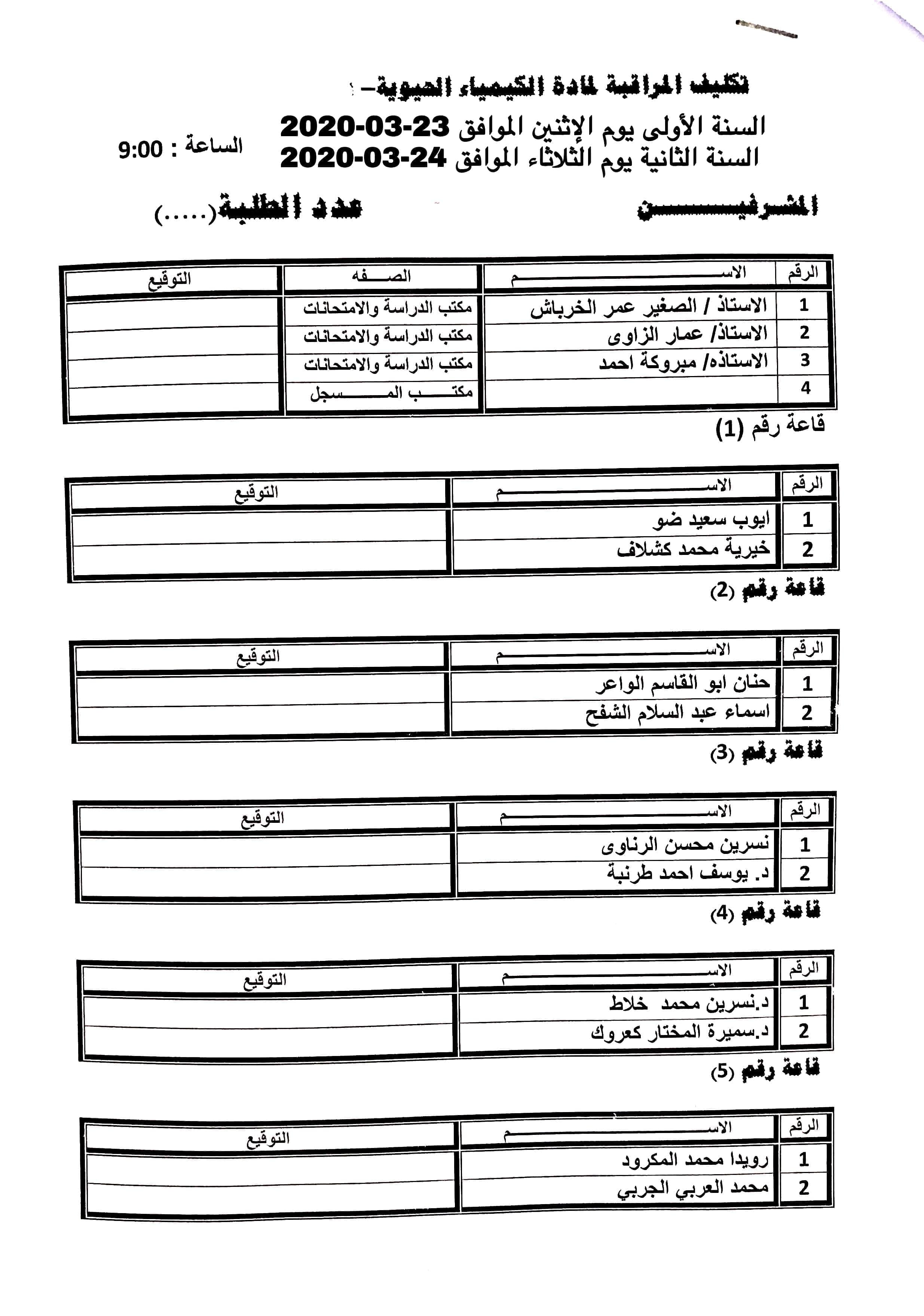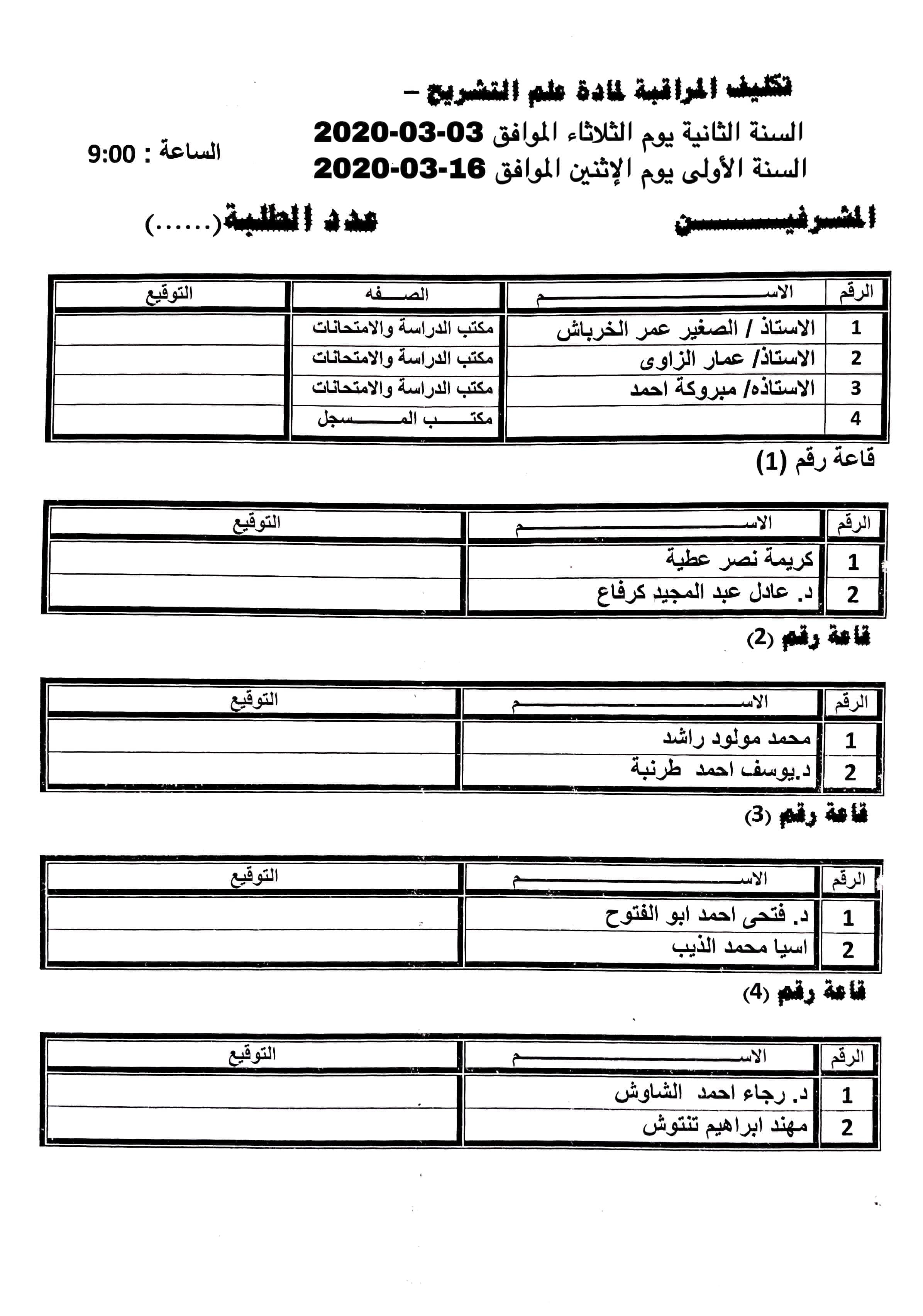 أسماء المكلفين لمراقبة الإمتحانات النصفية للسنتين الأولى والثانية طب بشري .