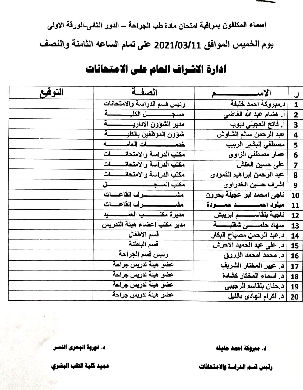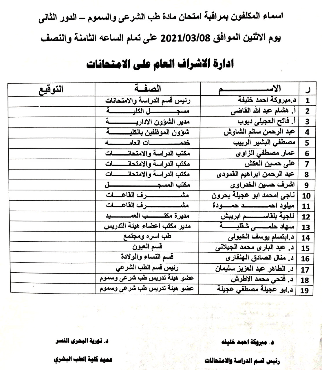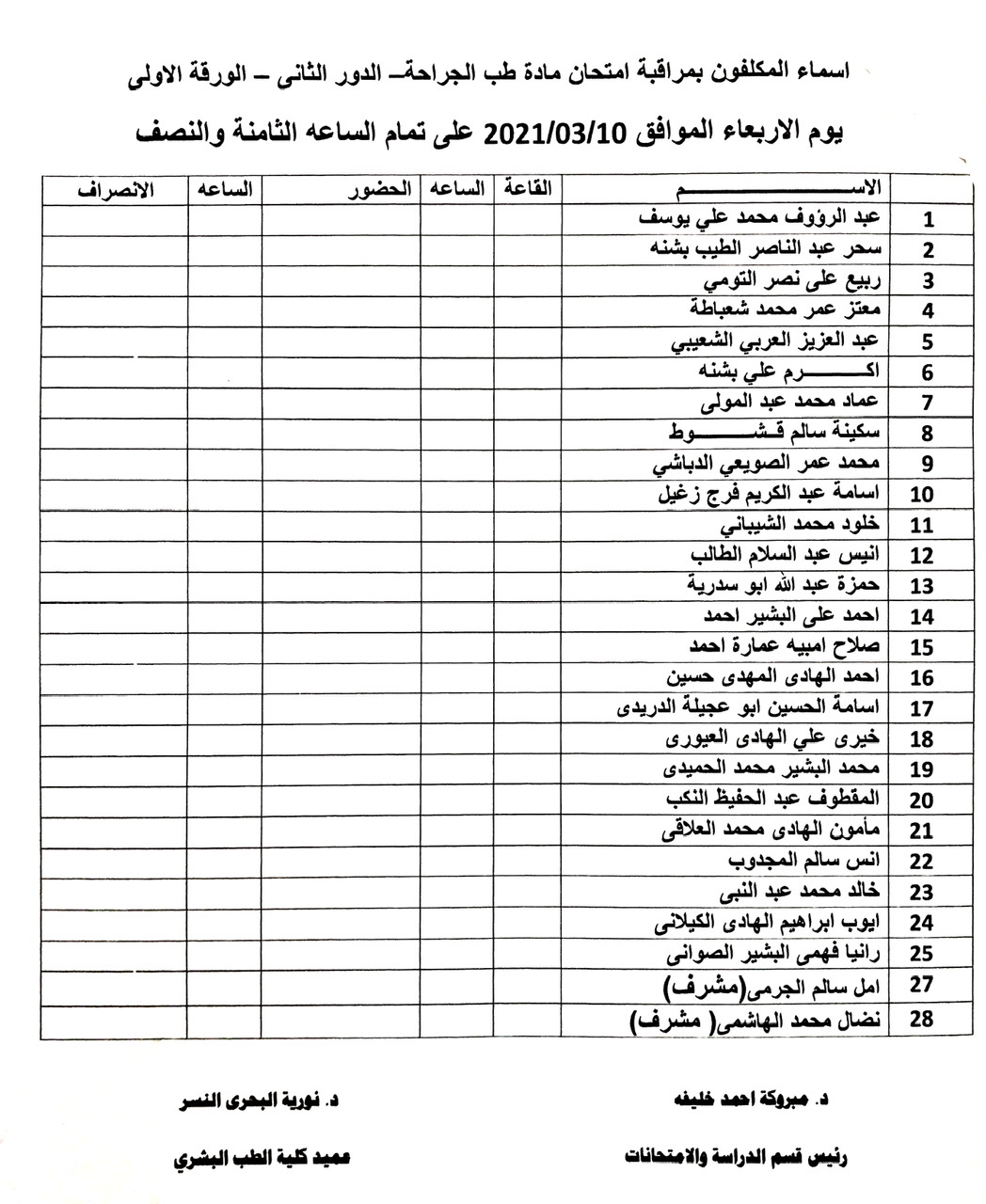 أسماء المكلفين بمراقبة امتحانات الدور الثاني لكل من: