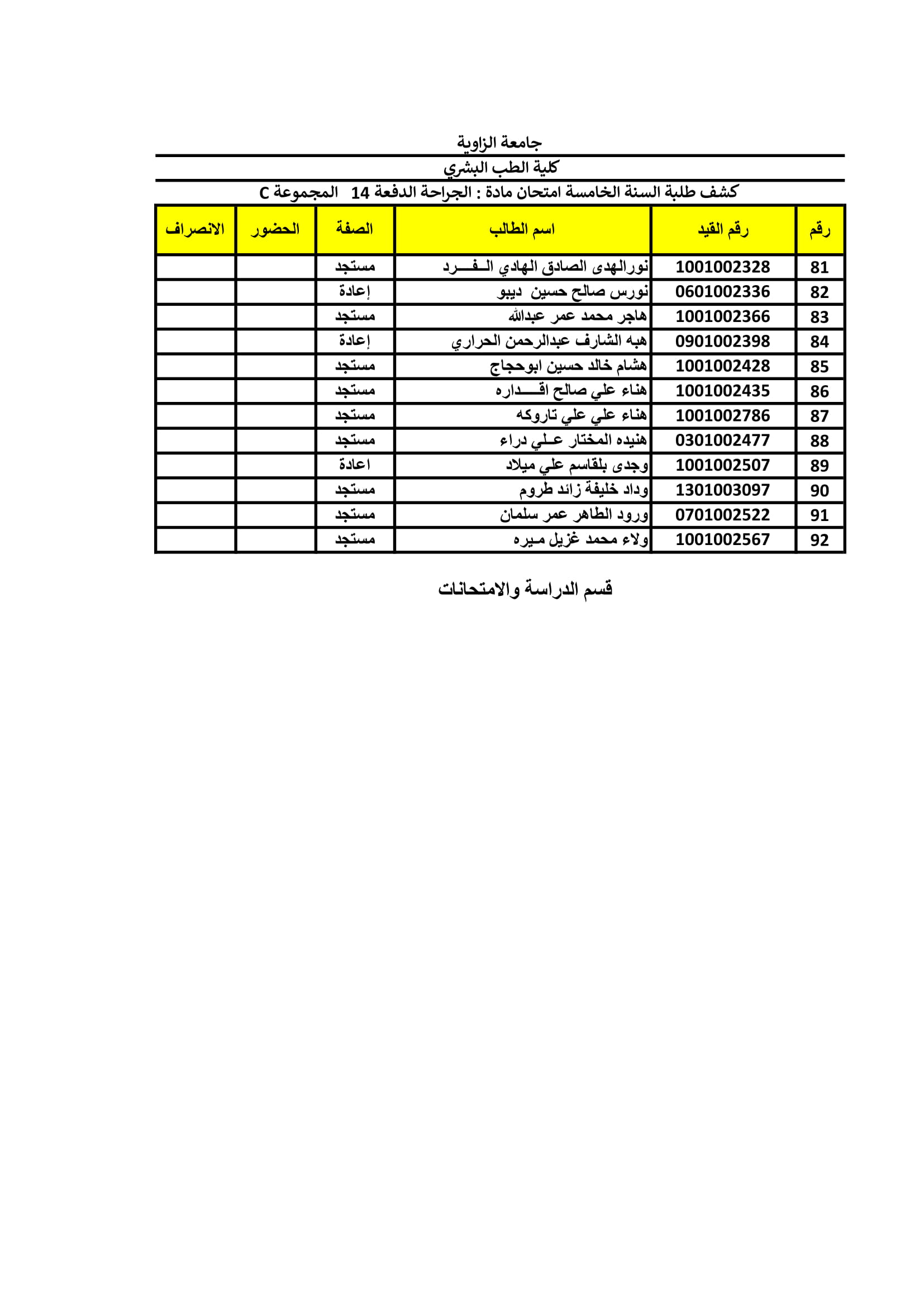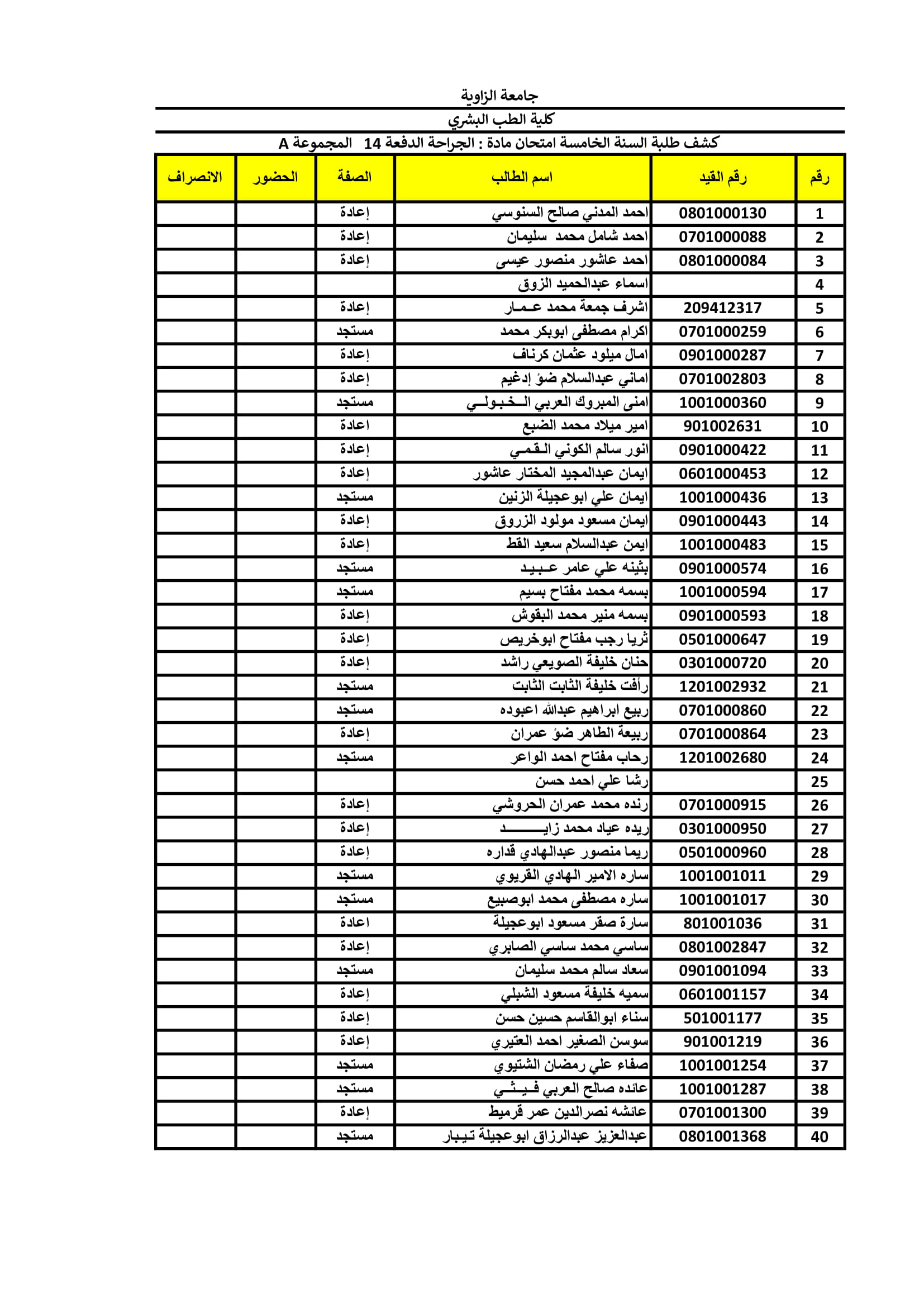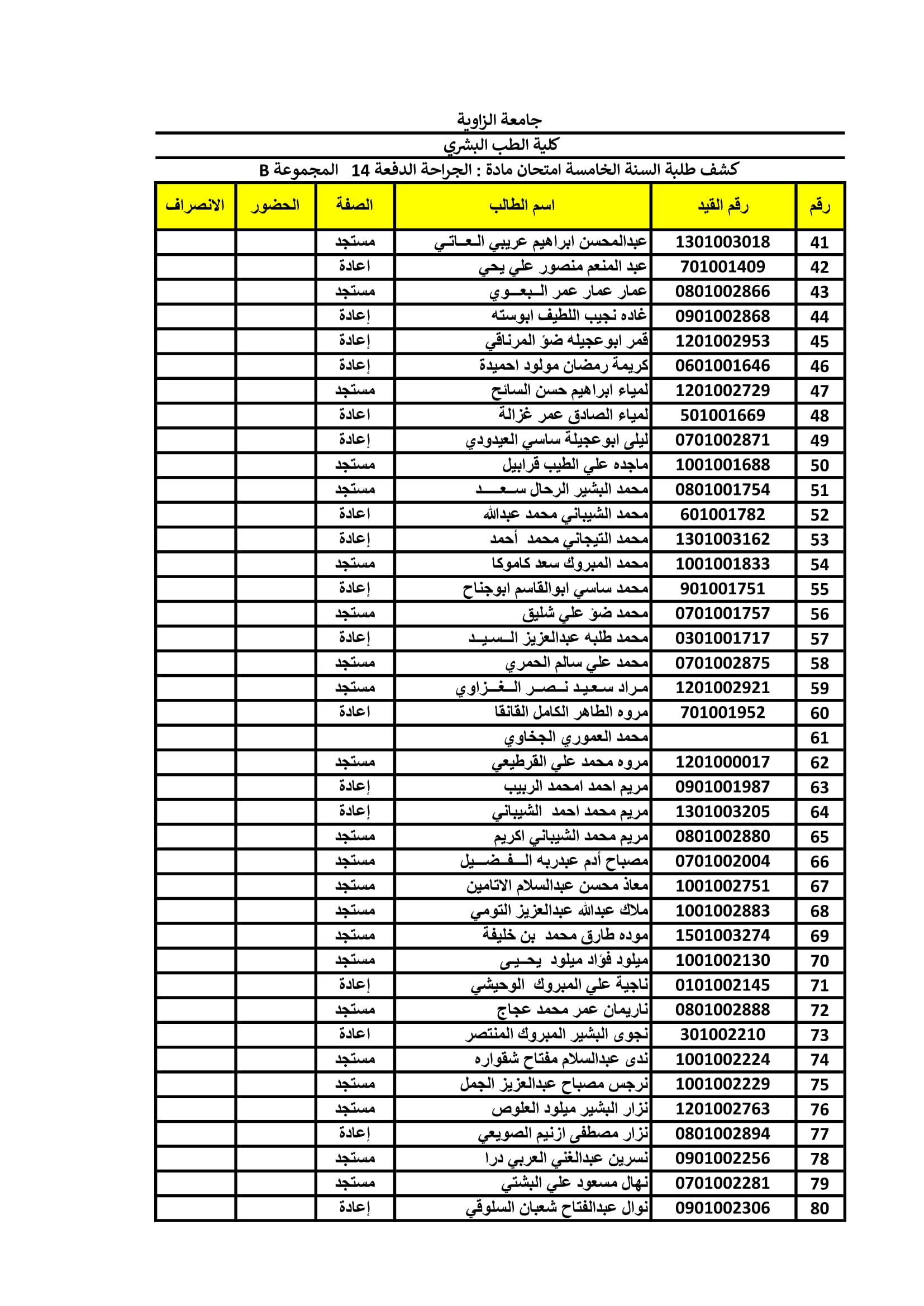 توزيع قوائم الامتحان السريري الدور الثاني لمادة الجراحة للسنة الخامسة الدفعة 14.
