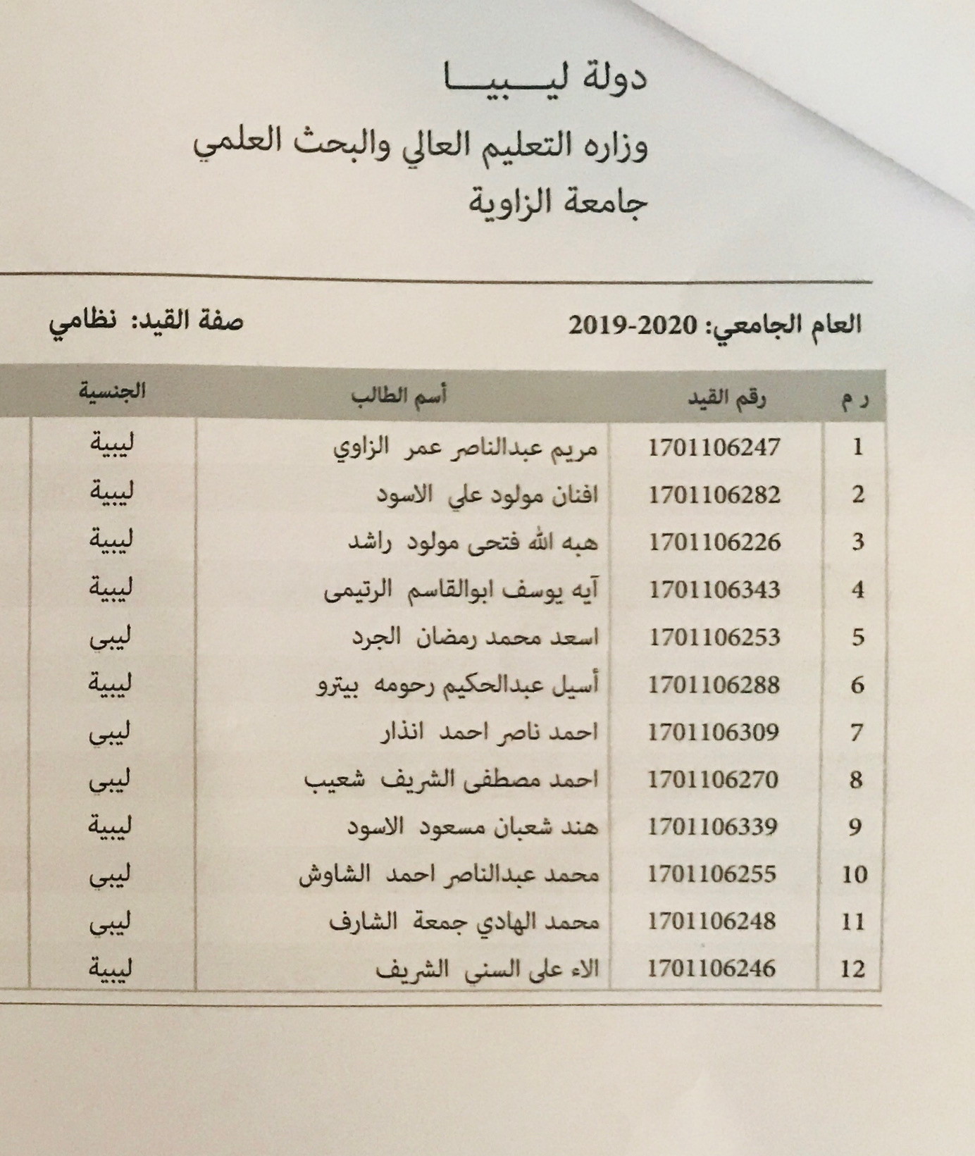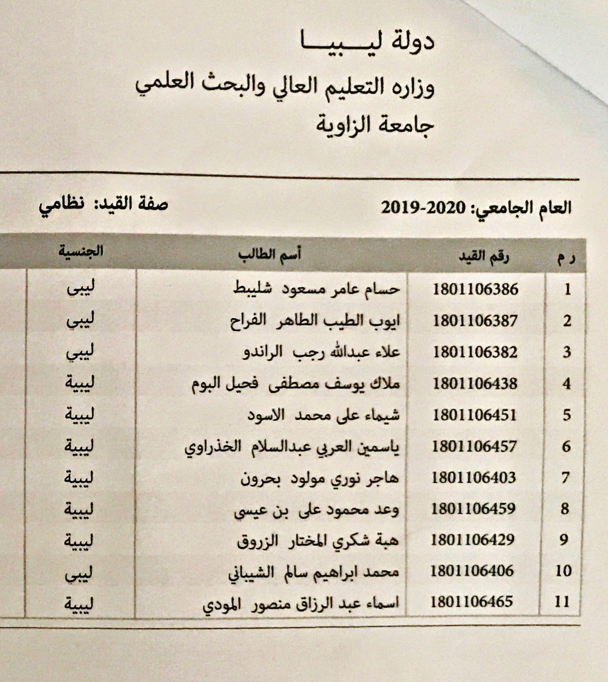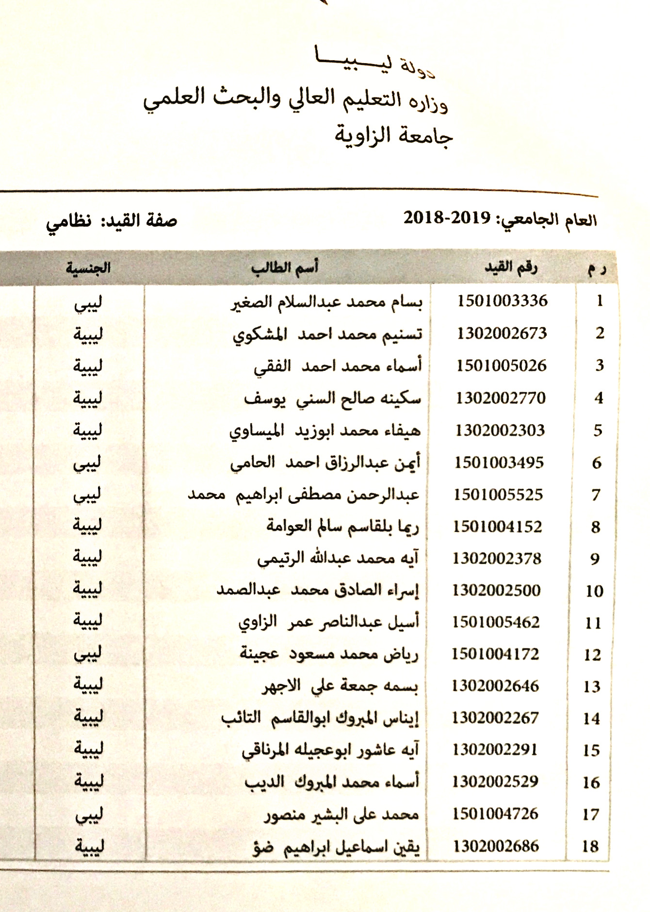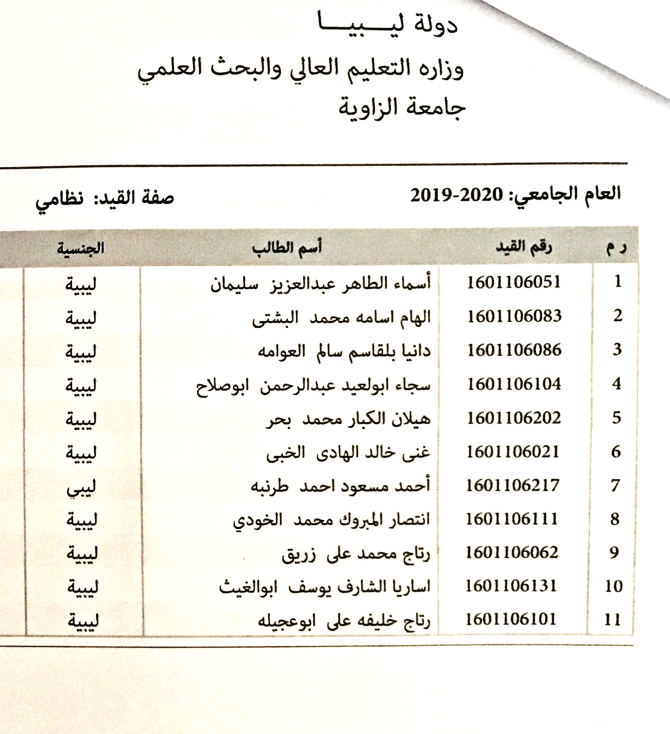 على الطلبة الآتية اسماؤهم ضرورة حضور إلى كلية الطب البشري وذلك يوم الاثنين الموافق 28-6-2021 الساعة الـ10:00 صباحا وذلك لأمر يهمم