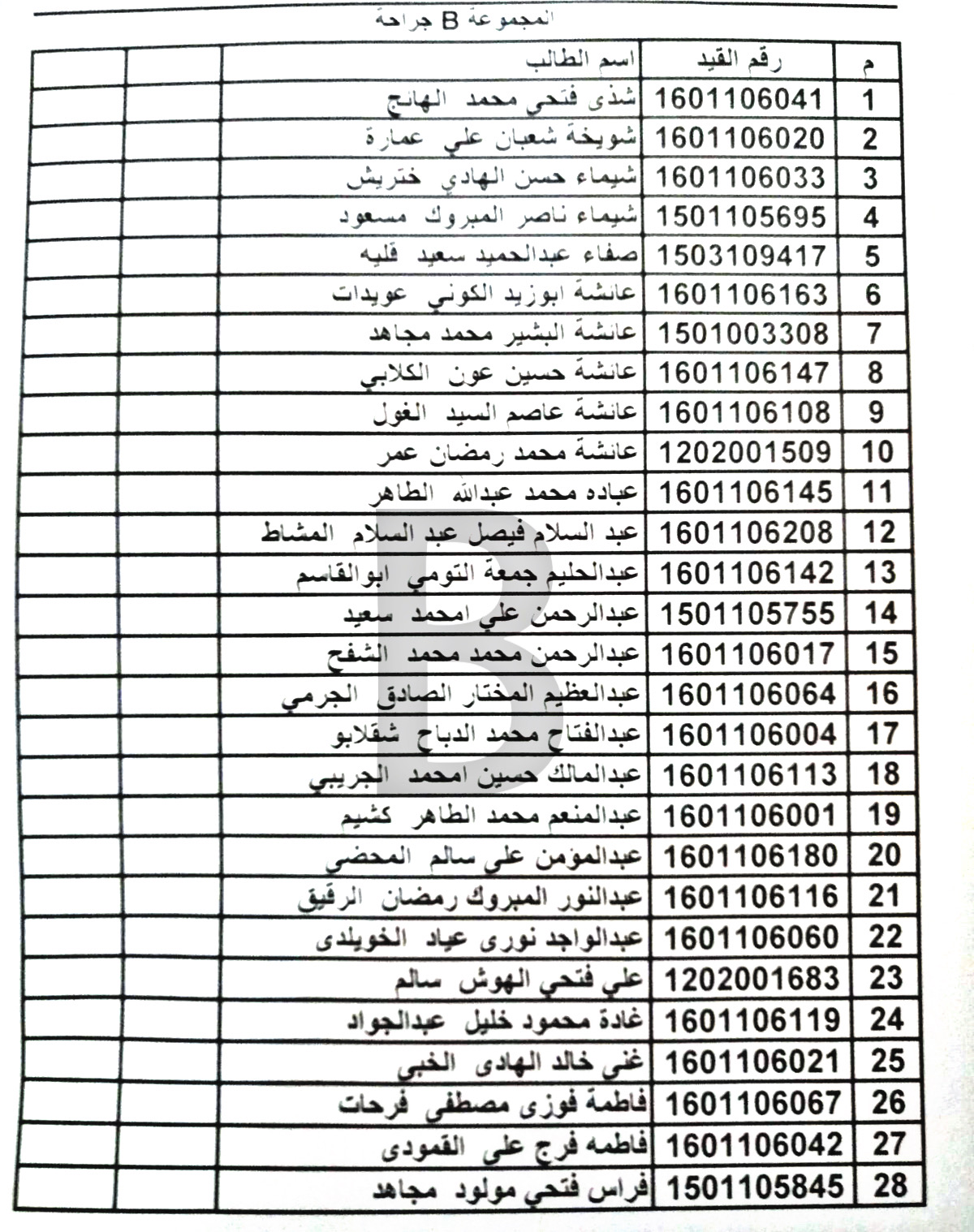 جدول المحاضرات التمهيدية وتقسيم المجموعات للسنة الرابعة الدفعة 20