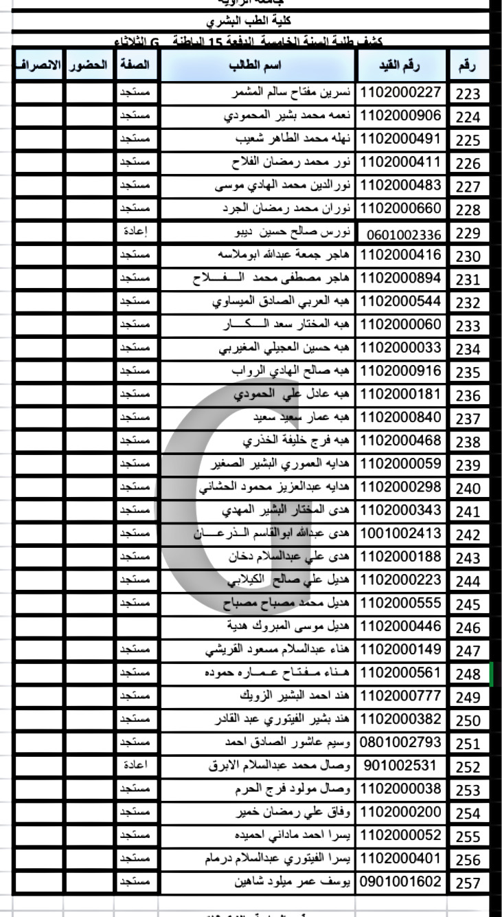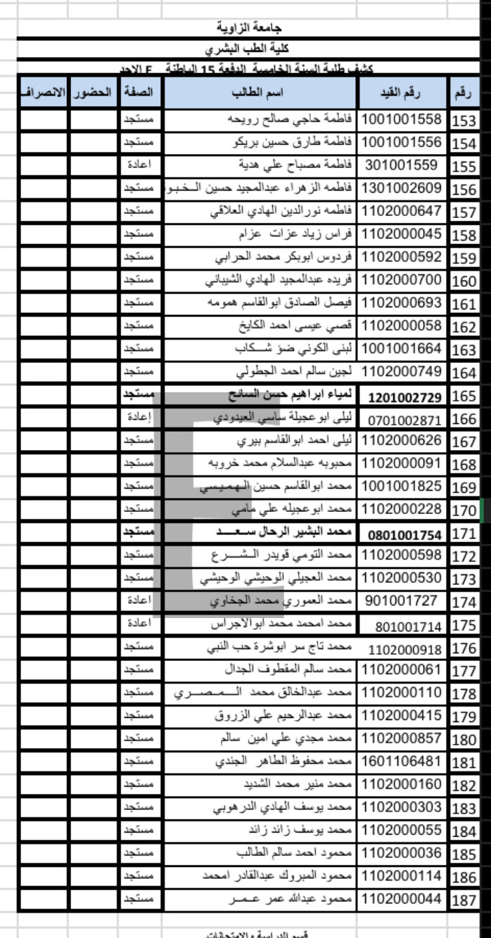 تقسيم مجموعات الامتحان السريري الدور الأول لمادة الباطنة للسنة الخامسة الدفعة 15 والتكميلي: