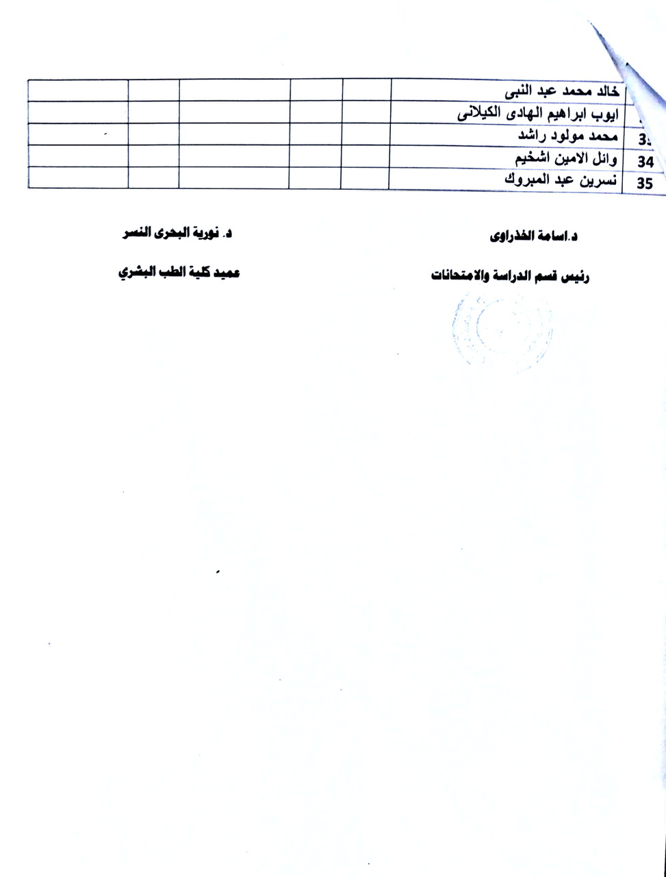 أسماء المكلفين بمراقبة امتحان الدور الثاني لمادة الاطفال للسنة الخامسة الدفعة 15 وذلك يوم السبت الموافق 19-2-2022 الساعة الـ08:30 صباحاً
