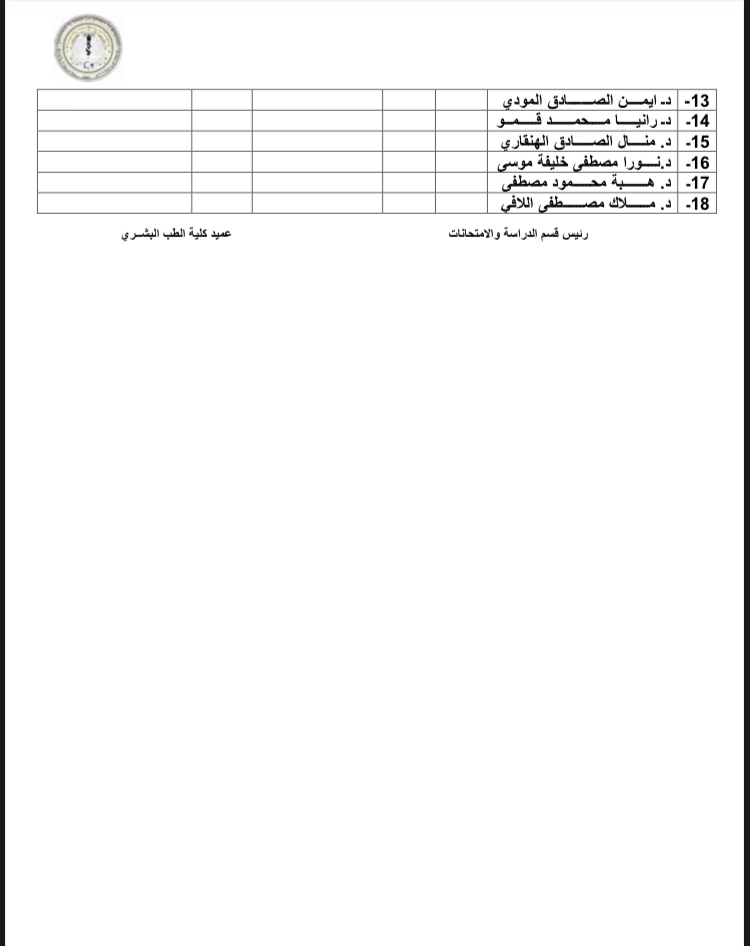 اسماء المكلفين بمراقبة امتحان الدور الثاني لمادة النساء والولادة وذلك يوم الأحد الموافق 8-5-2022 .