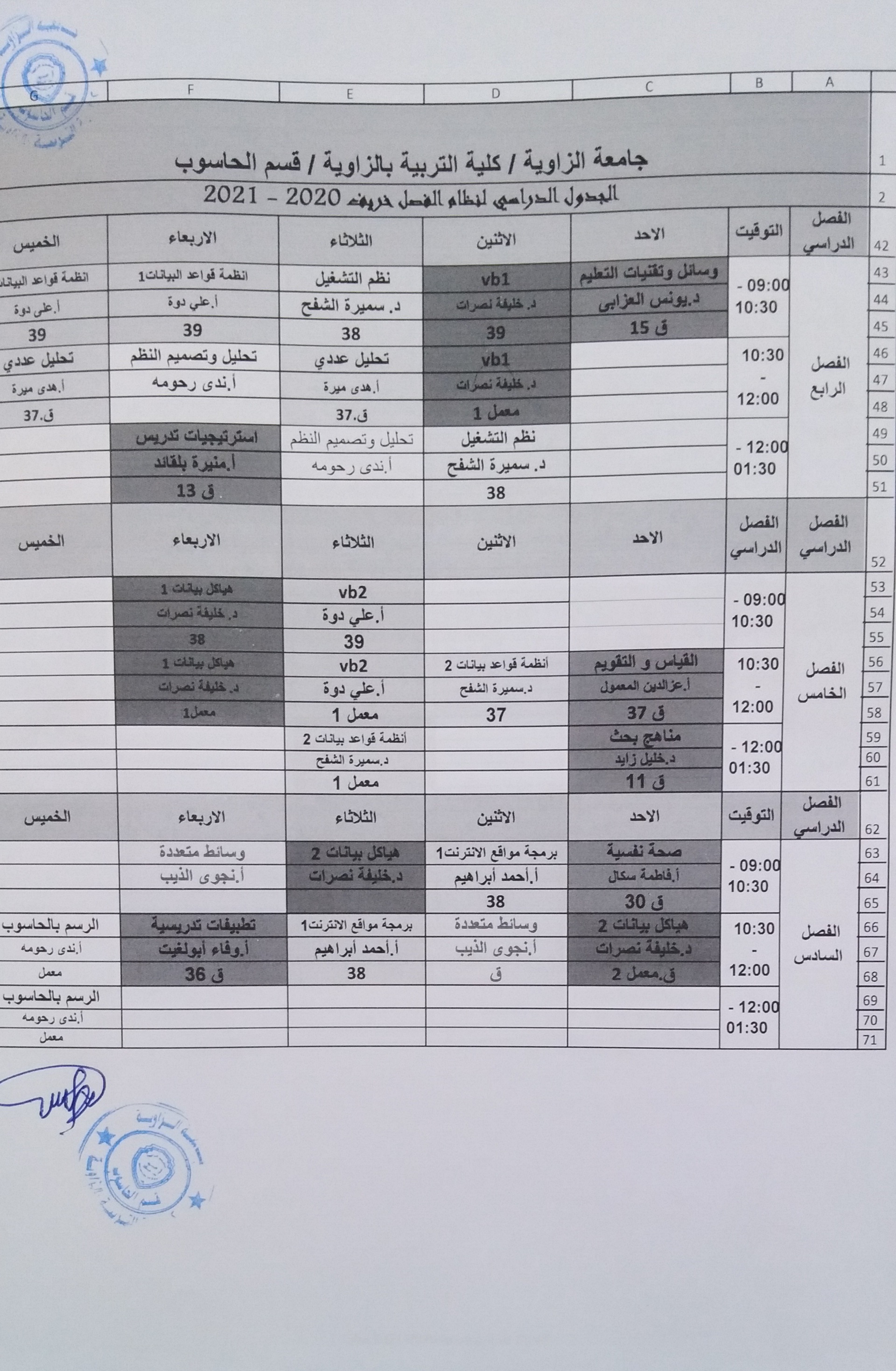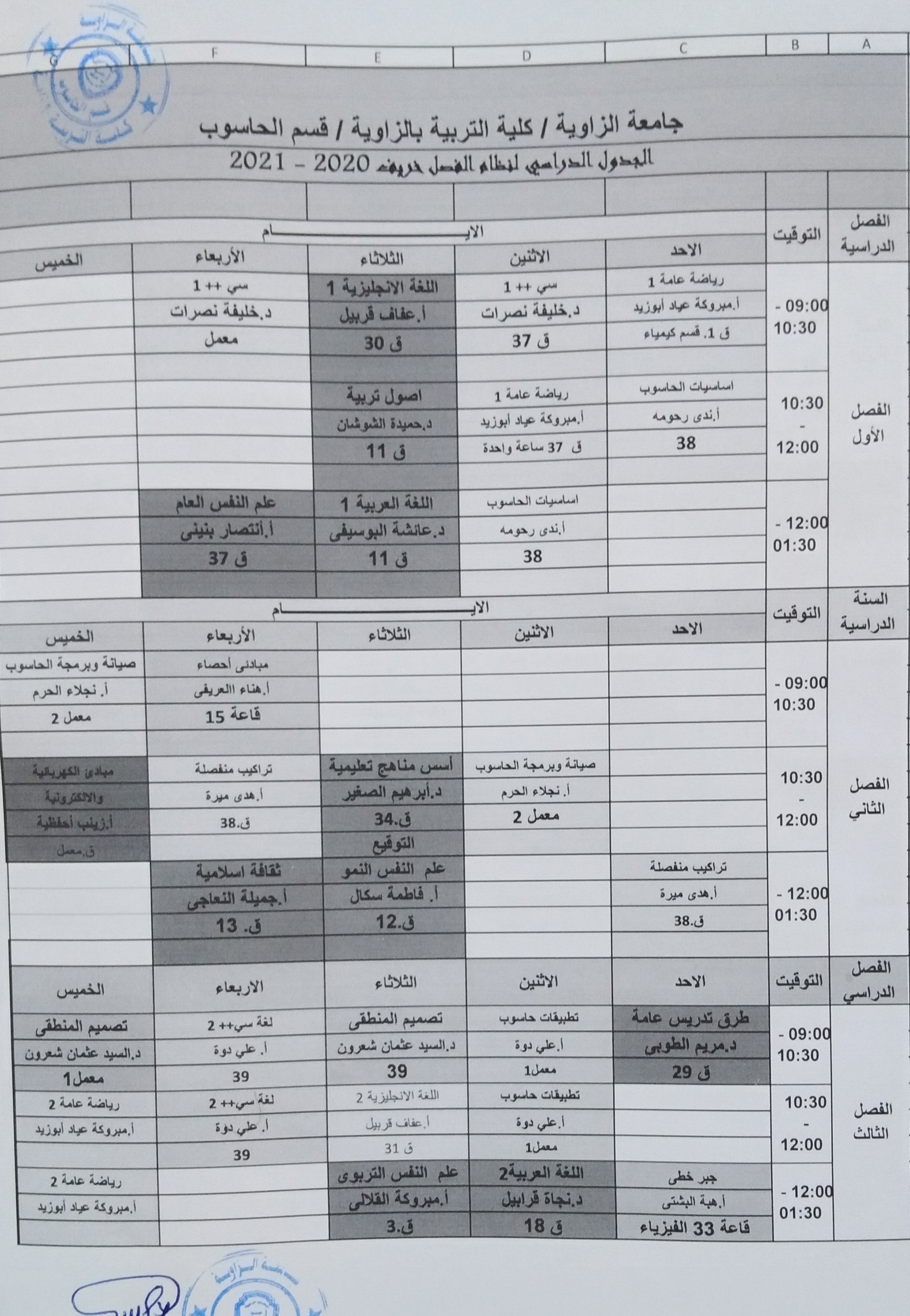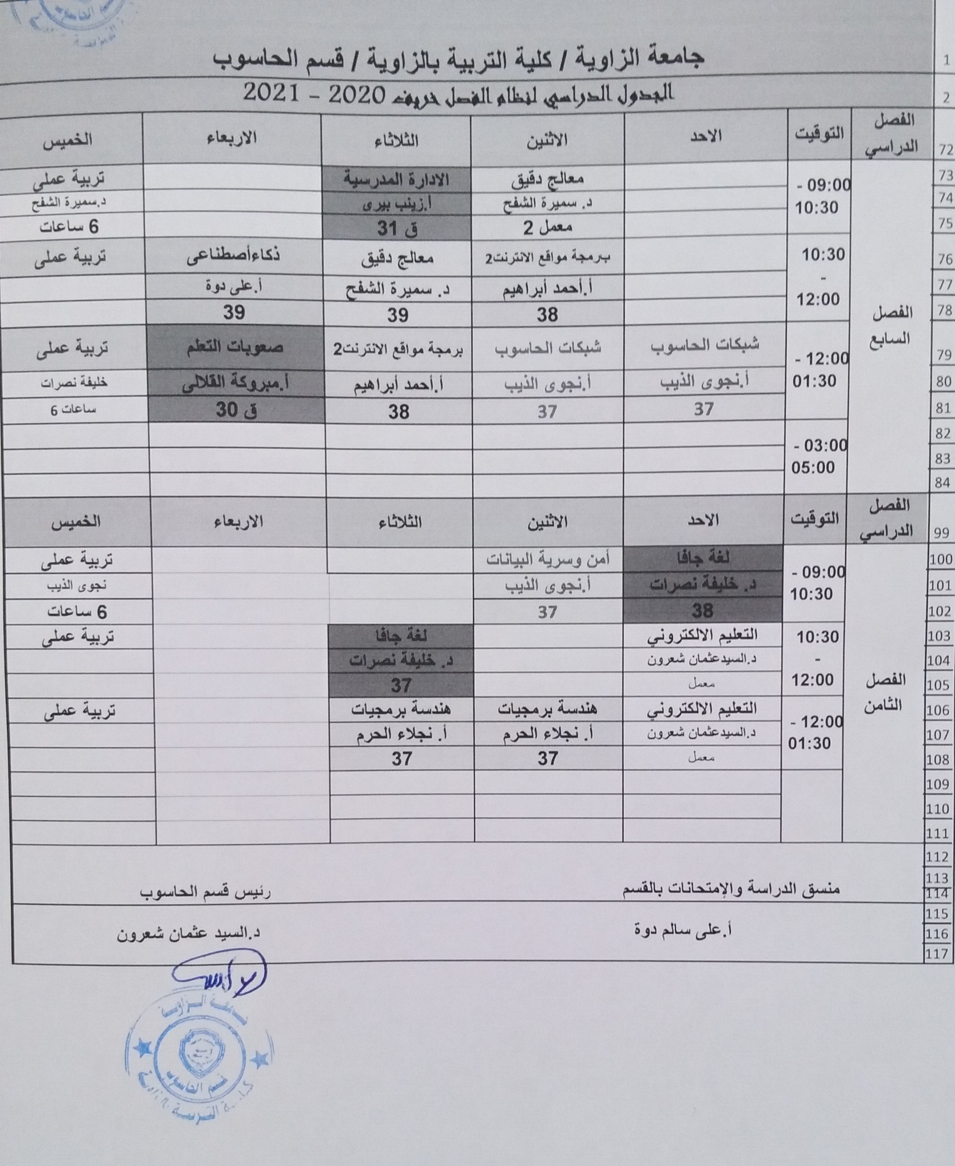 جدول قسم الحاسوب