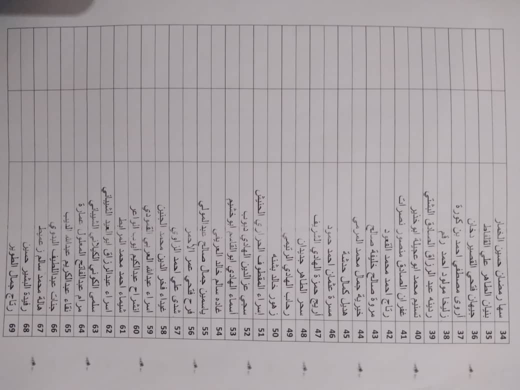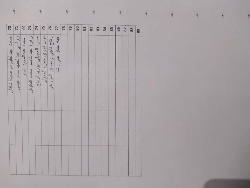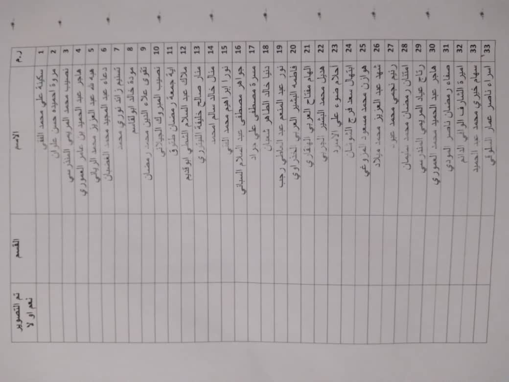 على الطالبات التالية أسمائهن ضرورة مراجعة مكتب مسجل الكلية بأسرع وقت ممكن
