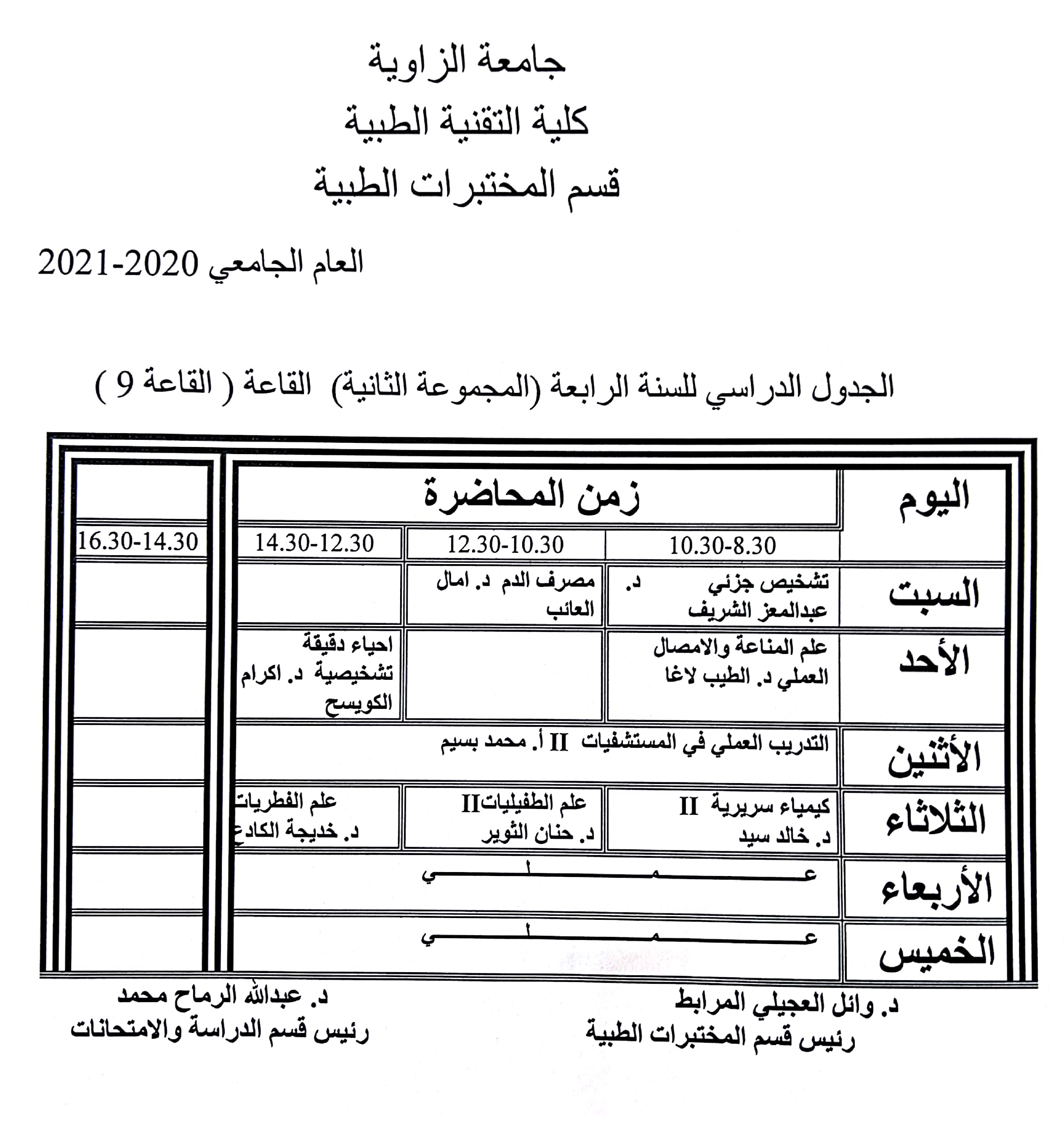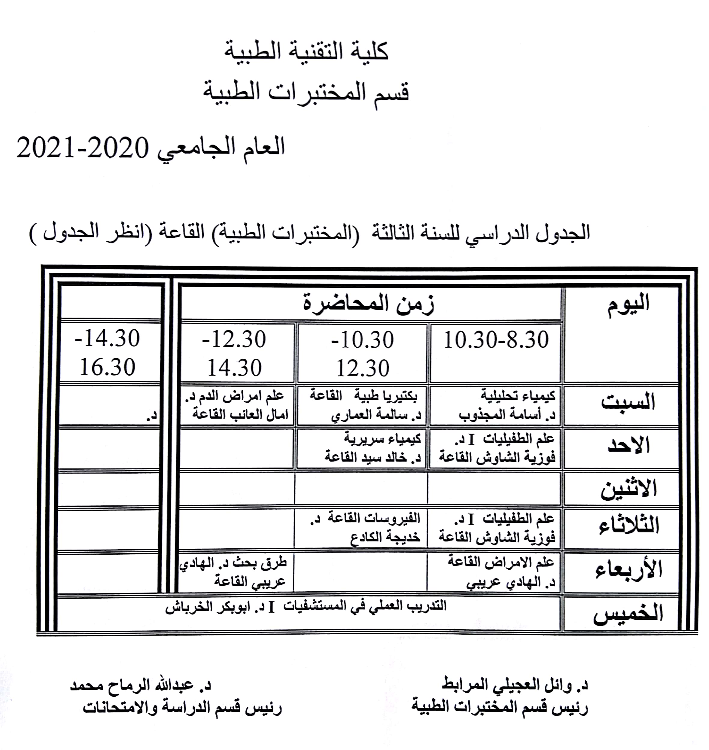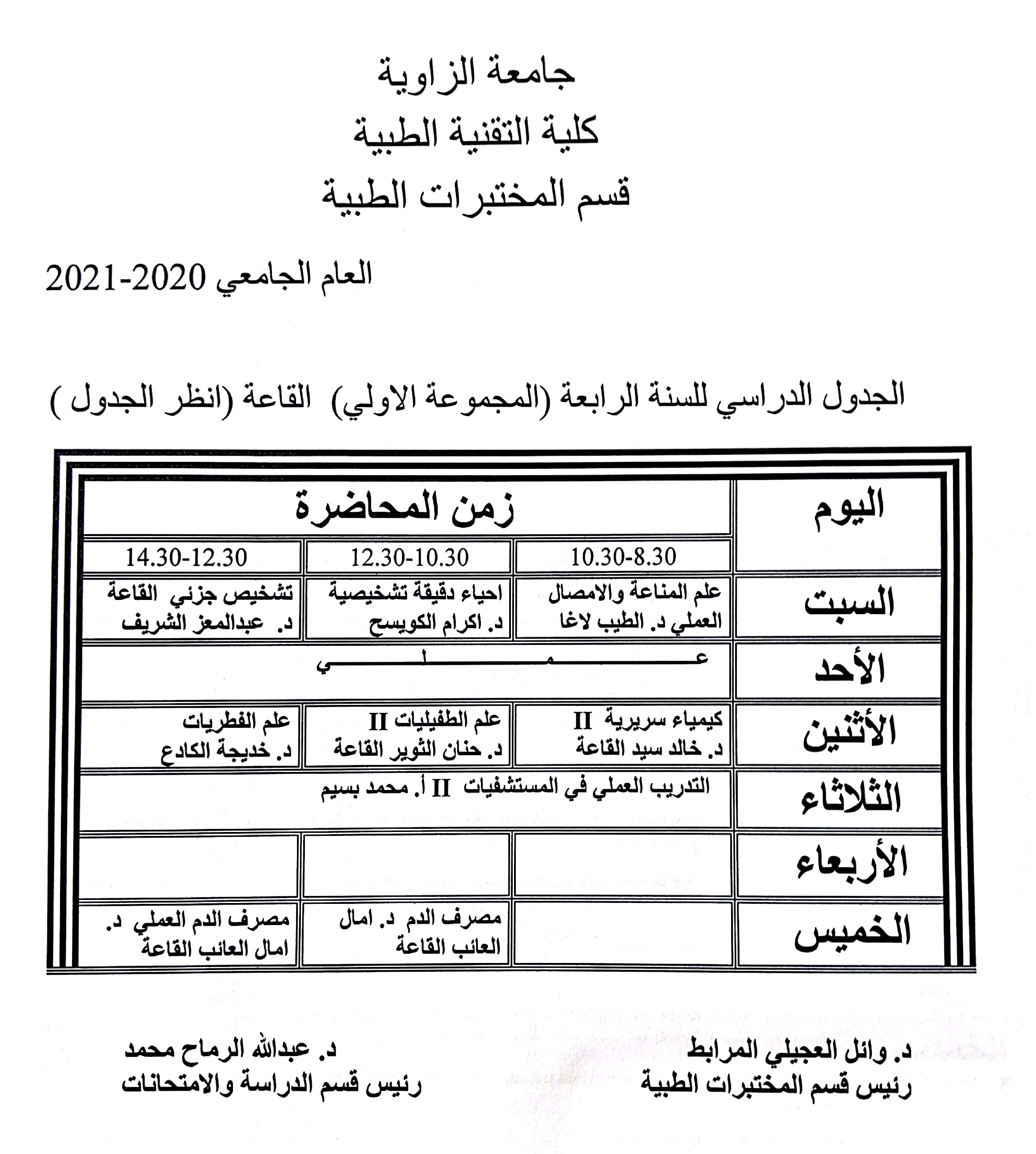 كانت بداية قسم المختبرات الطبية سنة 2001\2002 كأحد الأقسام العلمية لكلية التقنية الطبية بجامعة الزاوية, وتخرج من القسم مئات الطلاب في أكثر من أربعة عشرة دفعة حتى ألان , حيث تخرجت أولى الدفعات في العام الجامعي 2004/2005
