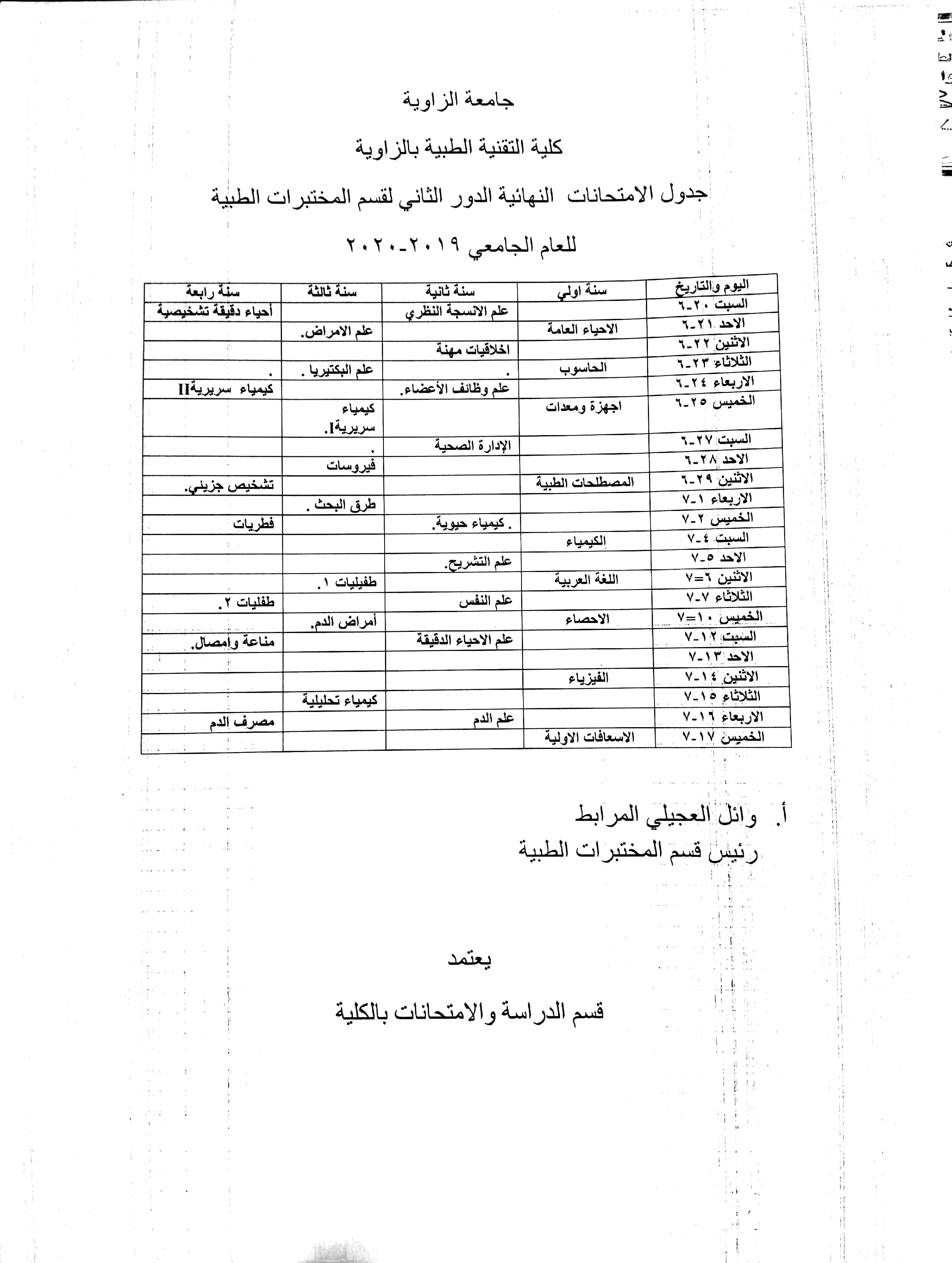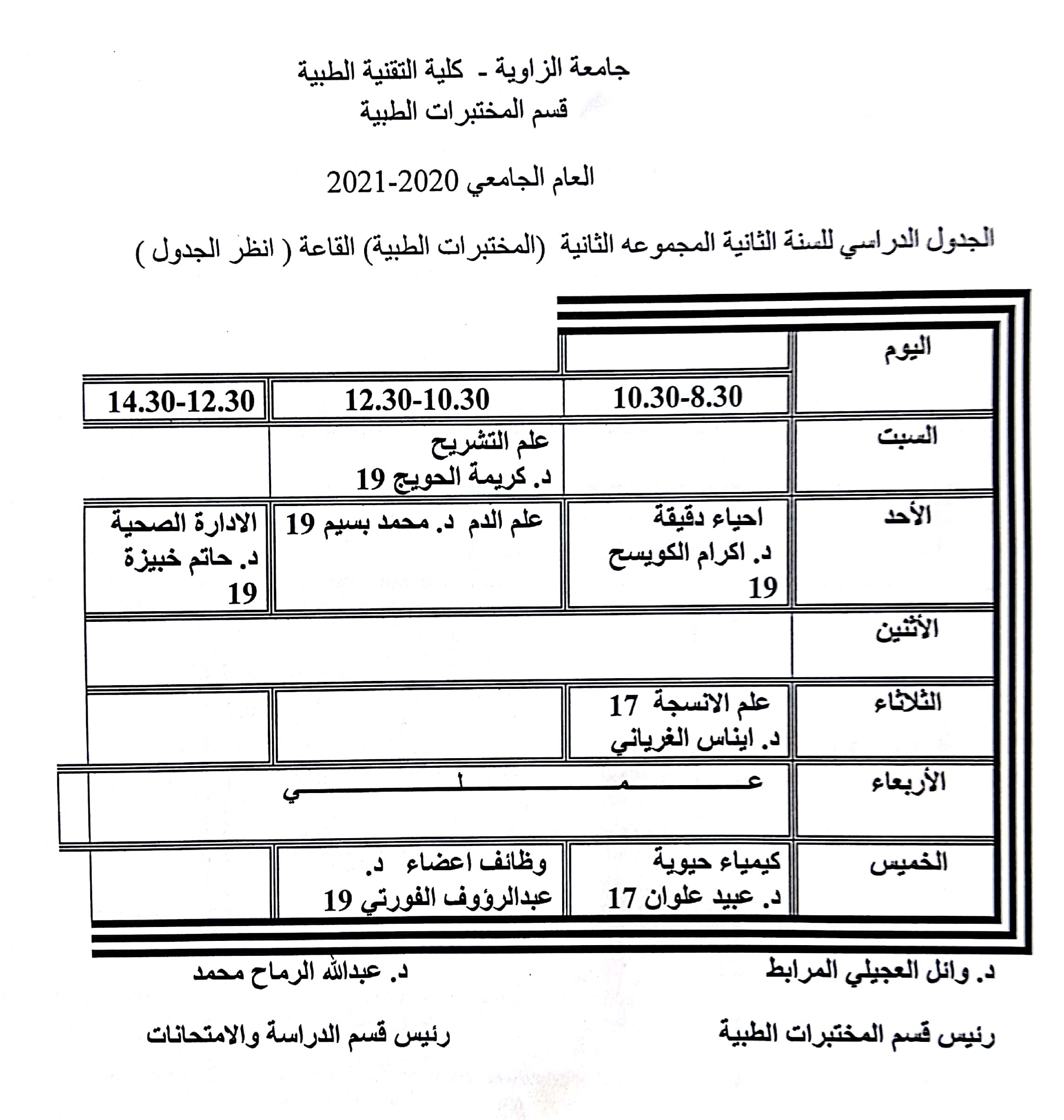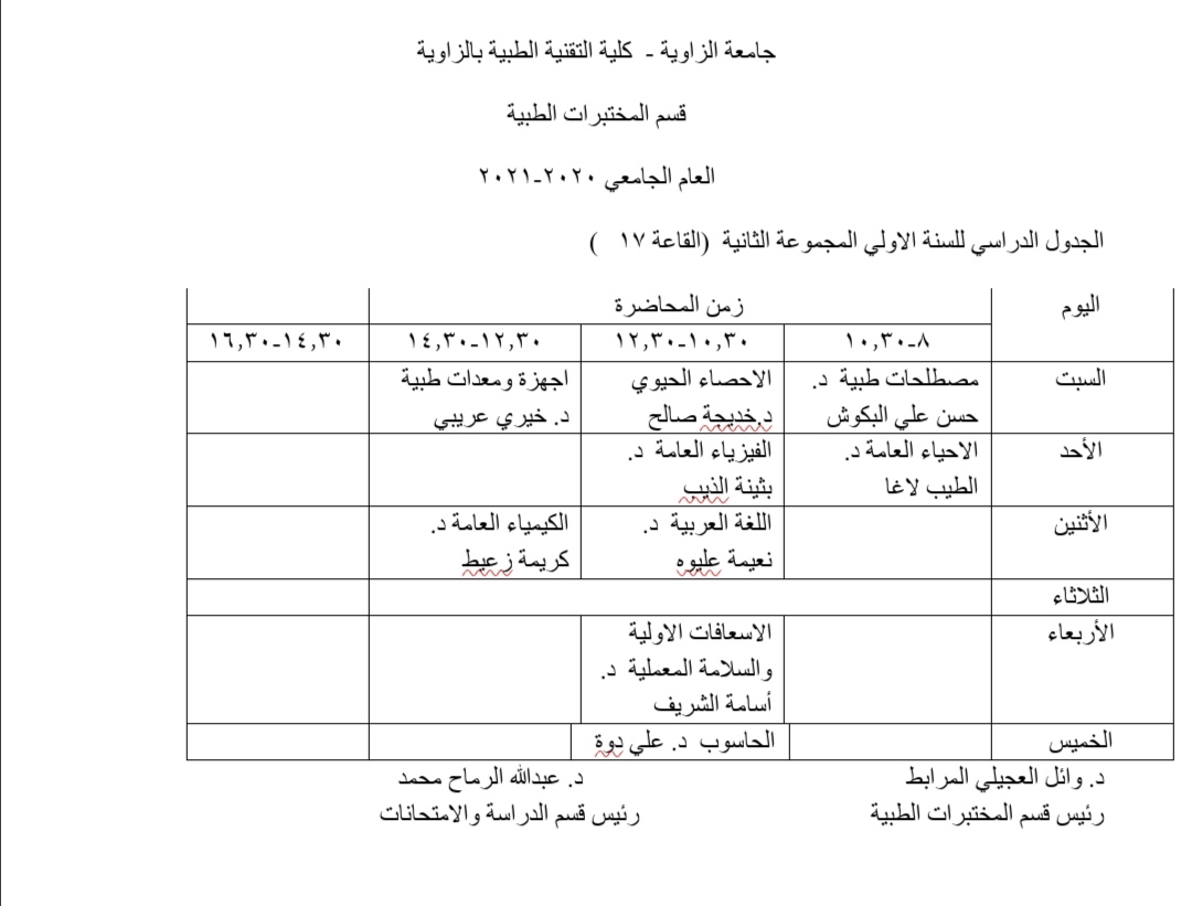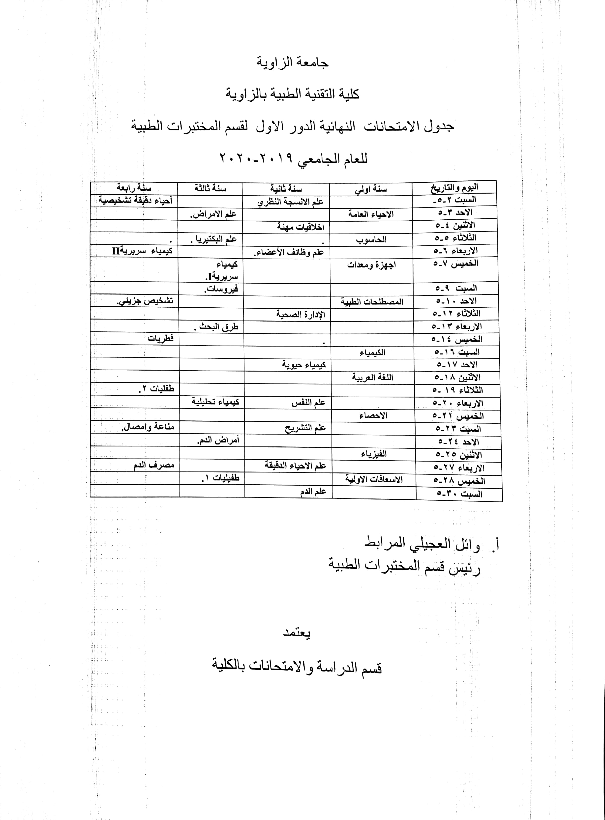 كانت بداية قسم المختبرات الطبية سنة 2001\2002 كأحد الأقسام العلمية لكلية التقنية الطبية بجامعة الزاوية, وتخرج من القسم مئات الطلاب في أكثر من أربعة عشرة دفعة حتى ألان , حيث تخرجت أولى الدفعات في العام الجامعي 2004/2005