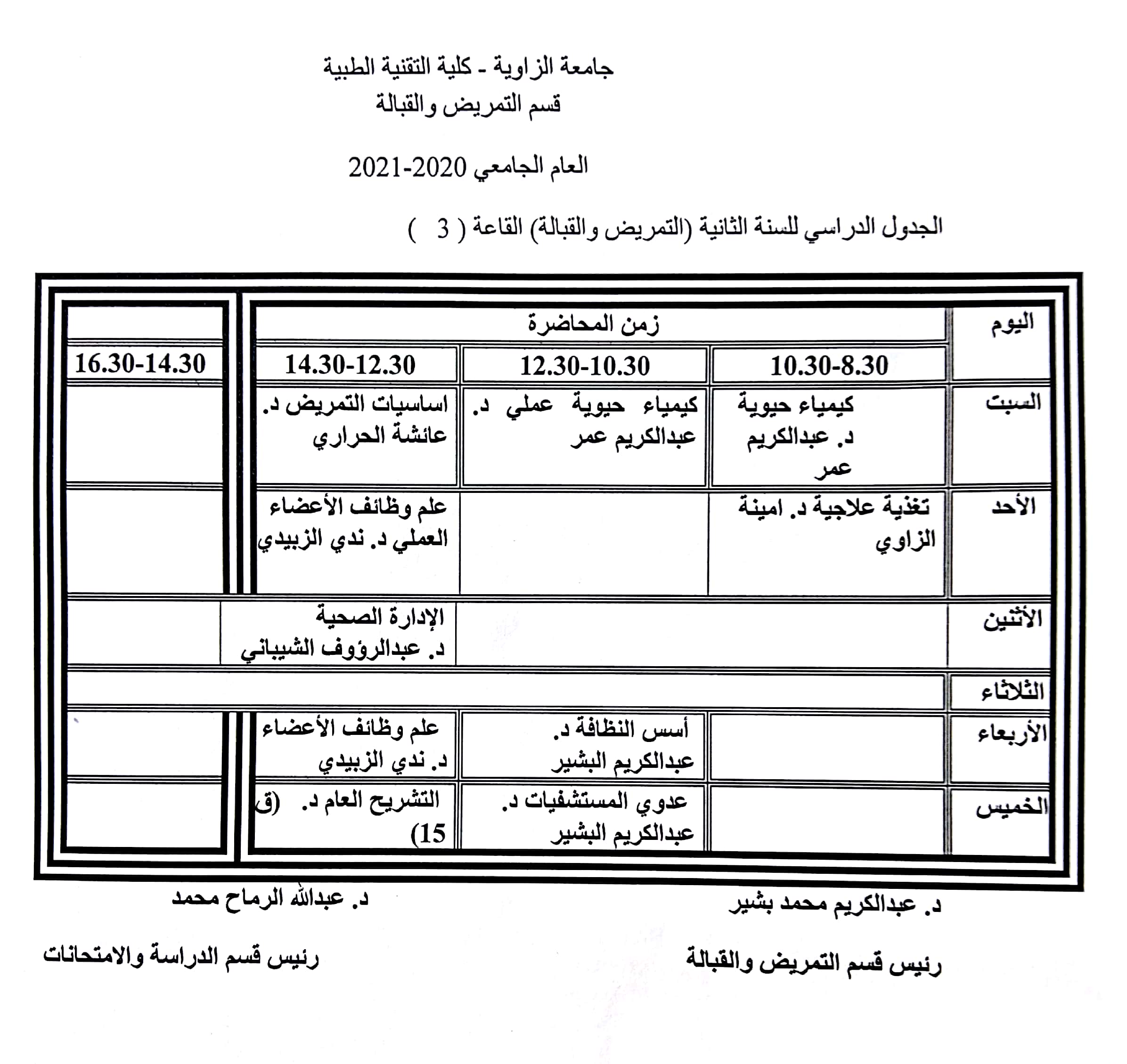 الجدول الدراسي للسنة الثانية للعام الجامعي 2021/2020م