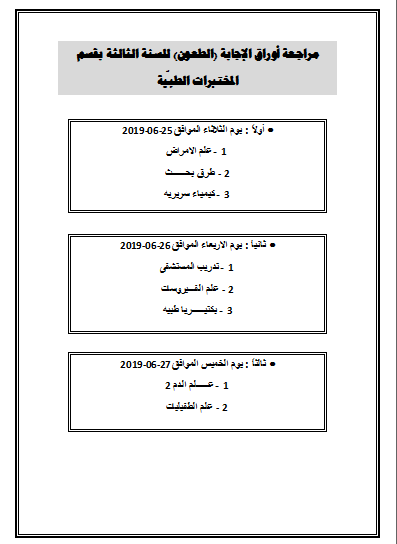 نرفق لكم ادنى هذا الاعلان صور لموعد اجراء الطعون