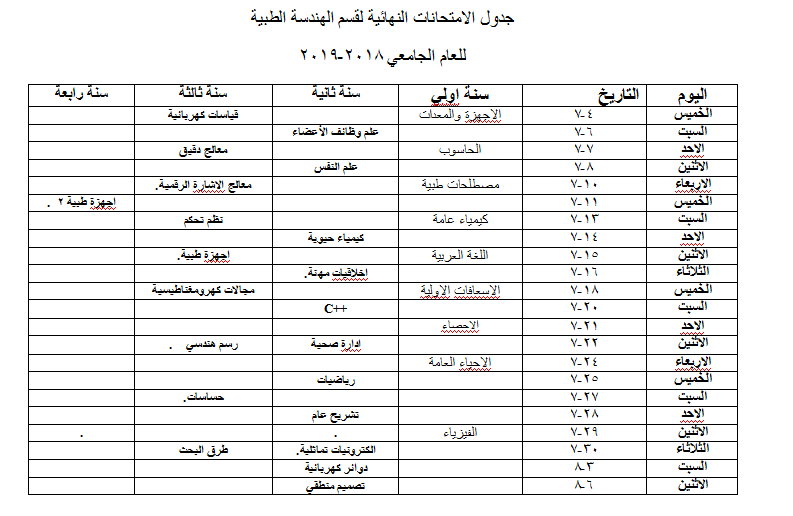 نرفق لكم أدنى هذا الإعلان صور الجداول المعدلة والنهائية للإمتحانات النهائية للدور الثاني للعام الجامعي 2019/2018 .