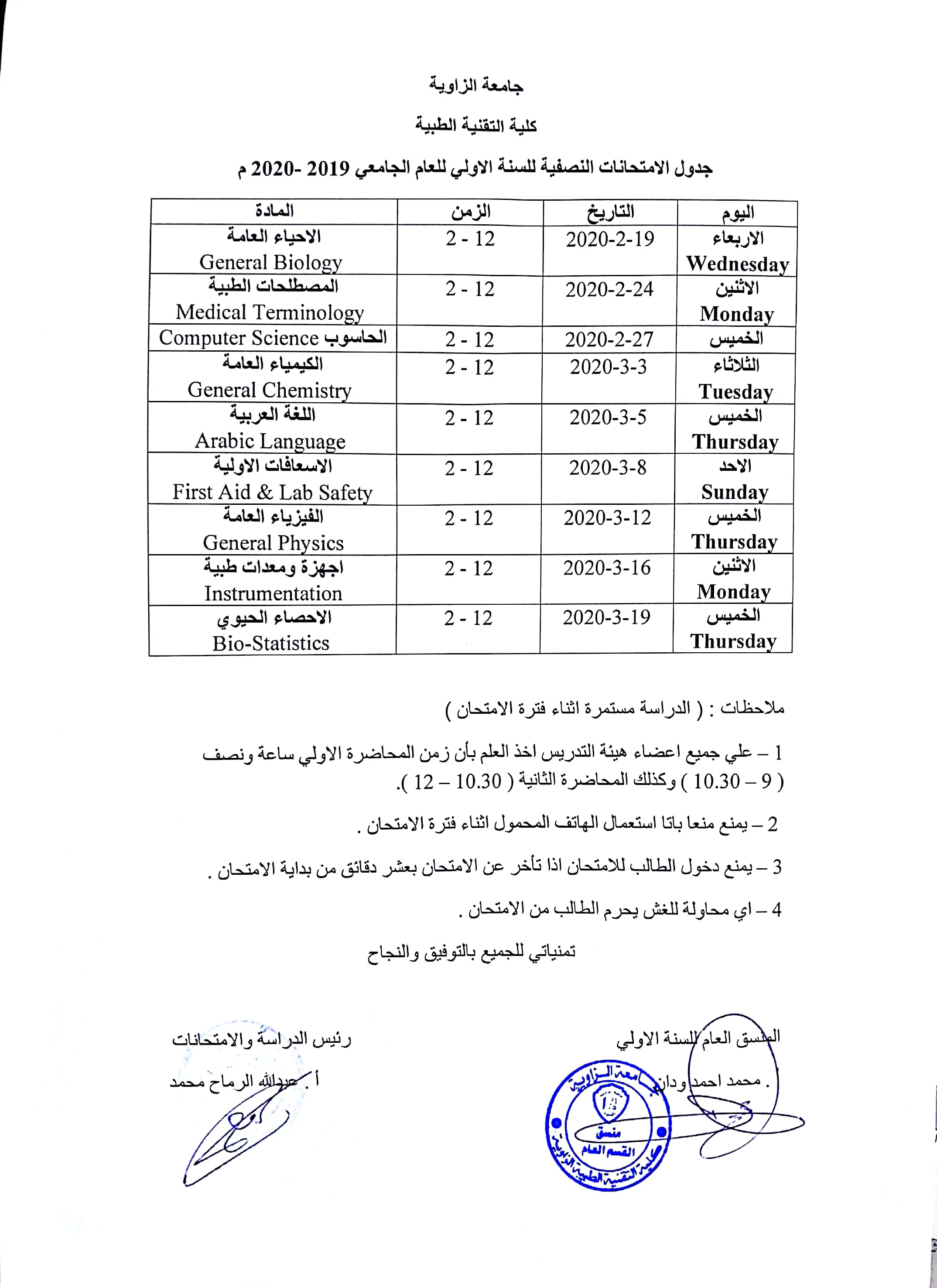 أدنى هذا الإعلان (بمعرض الصور) نرفق لكم جدول الإمتحانات النصفية الخاصة بكم