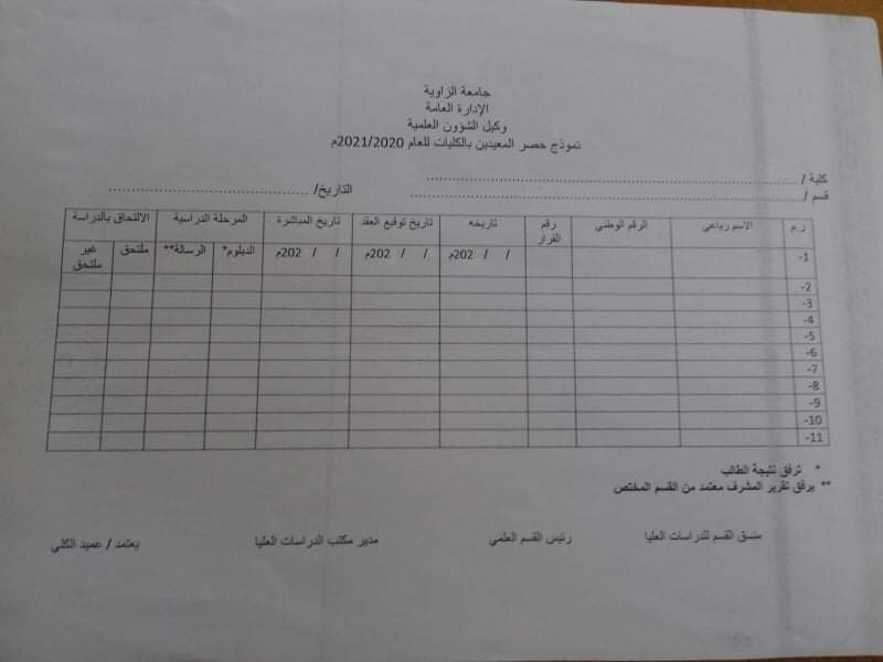 نلفت عنايتكم إلى ضرورة إحضار جميع البيانات المُدرجة بالنموذج بمعرض الصور أدنى هذا الإعلان وذلك يوم غدٍ الأحد بمكتب السيد مدير الشؤون الإدارية والمالية بالكلية .