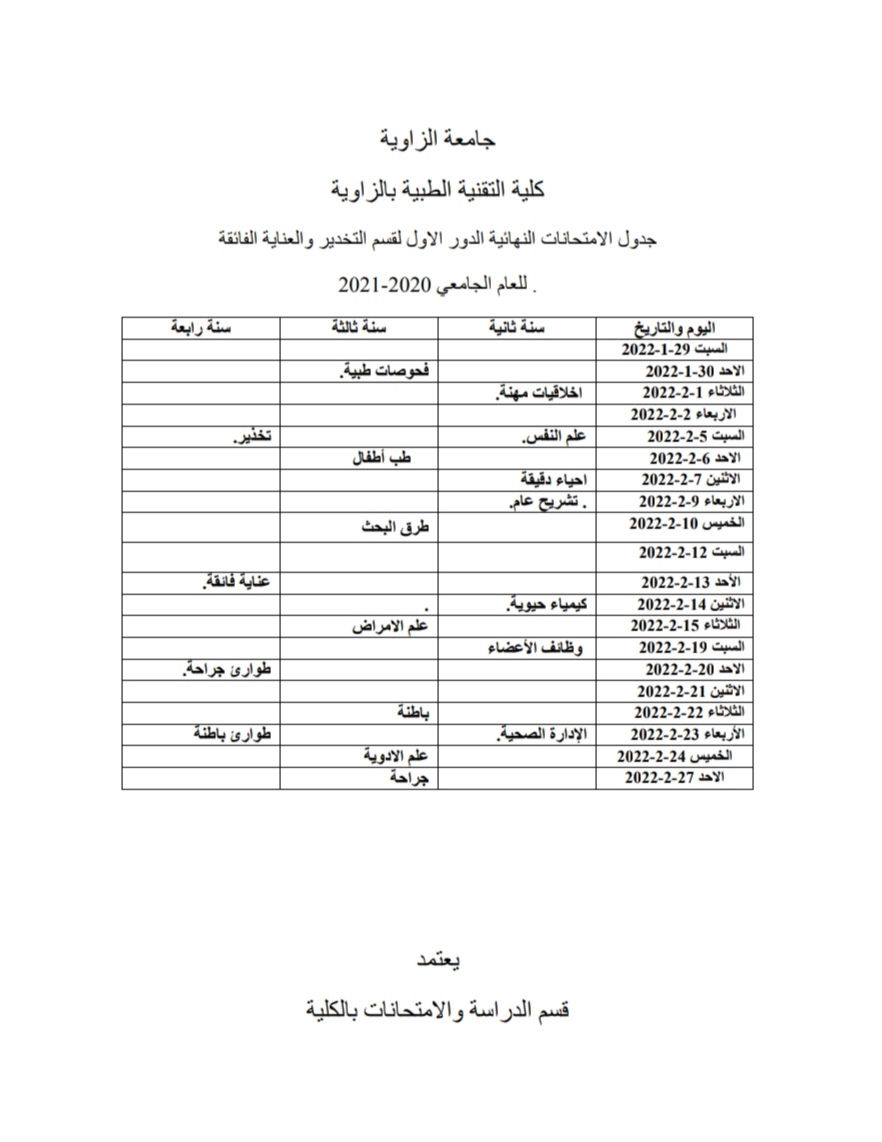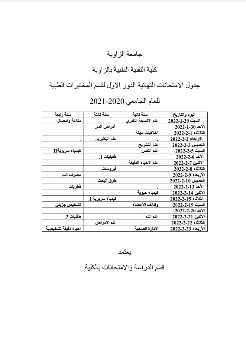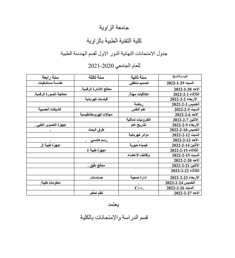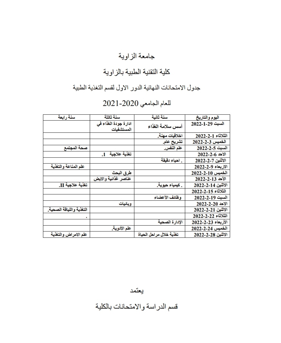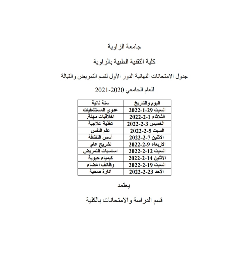 نرفق لكم أدنى هذا الإعلان بمعرض الصور جداول الإمتحانات النهائية الخاصة بكم .