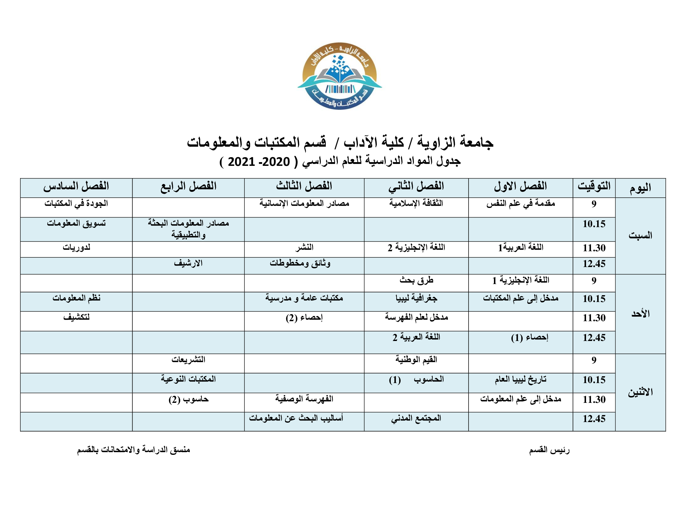 - تخريج كوادر قادرة على سد احتياجات المجتمع في مجال المكتبات والمعلوماتية.