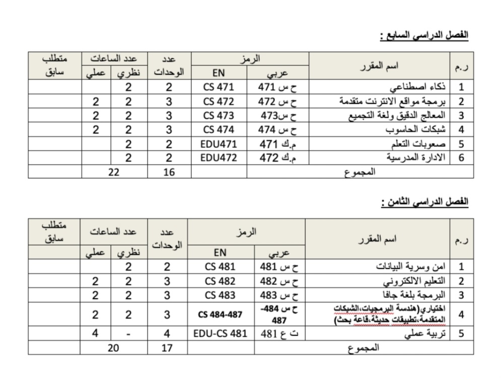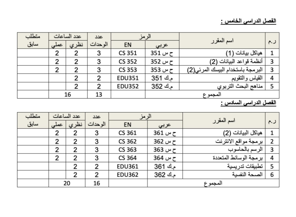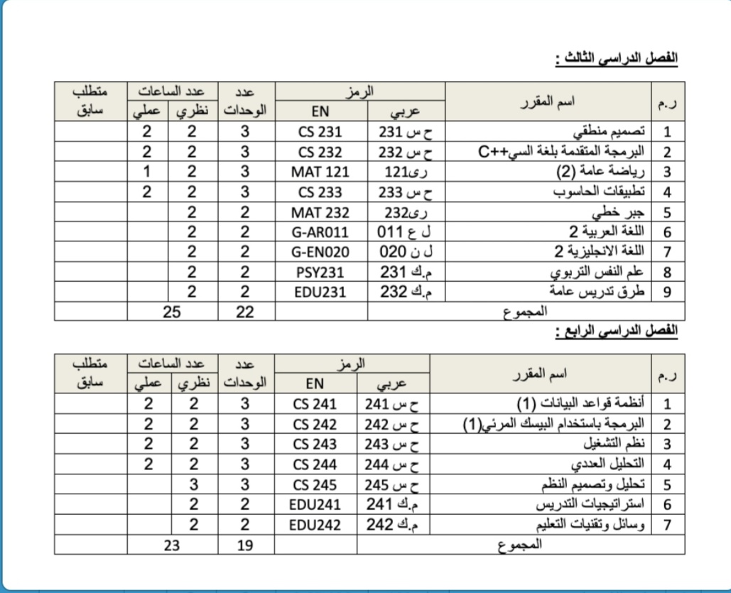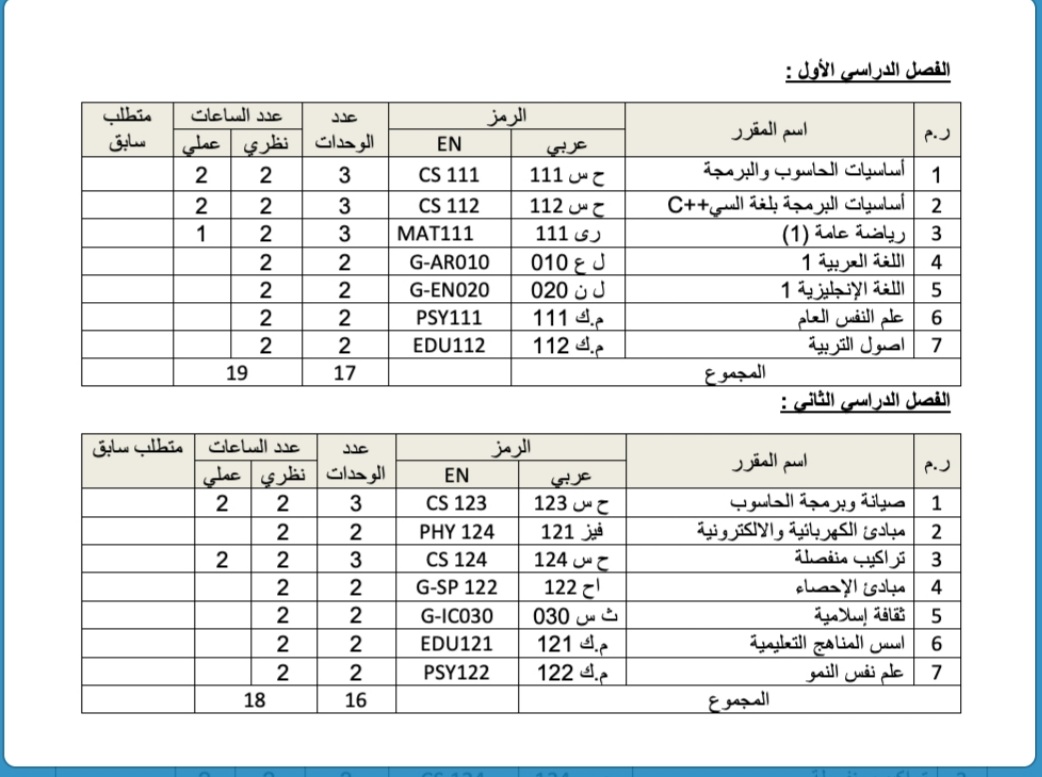 الخطة الدراسية