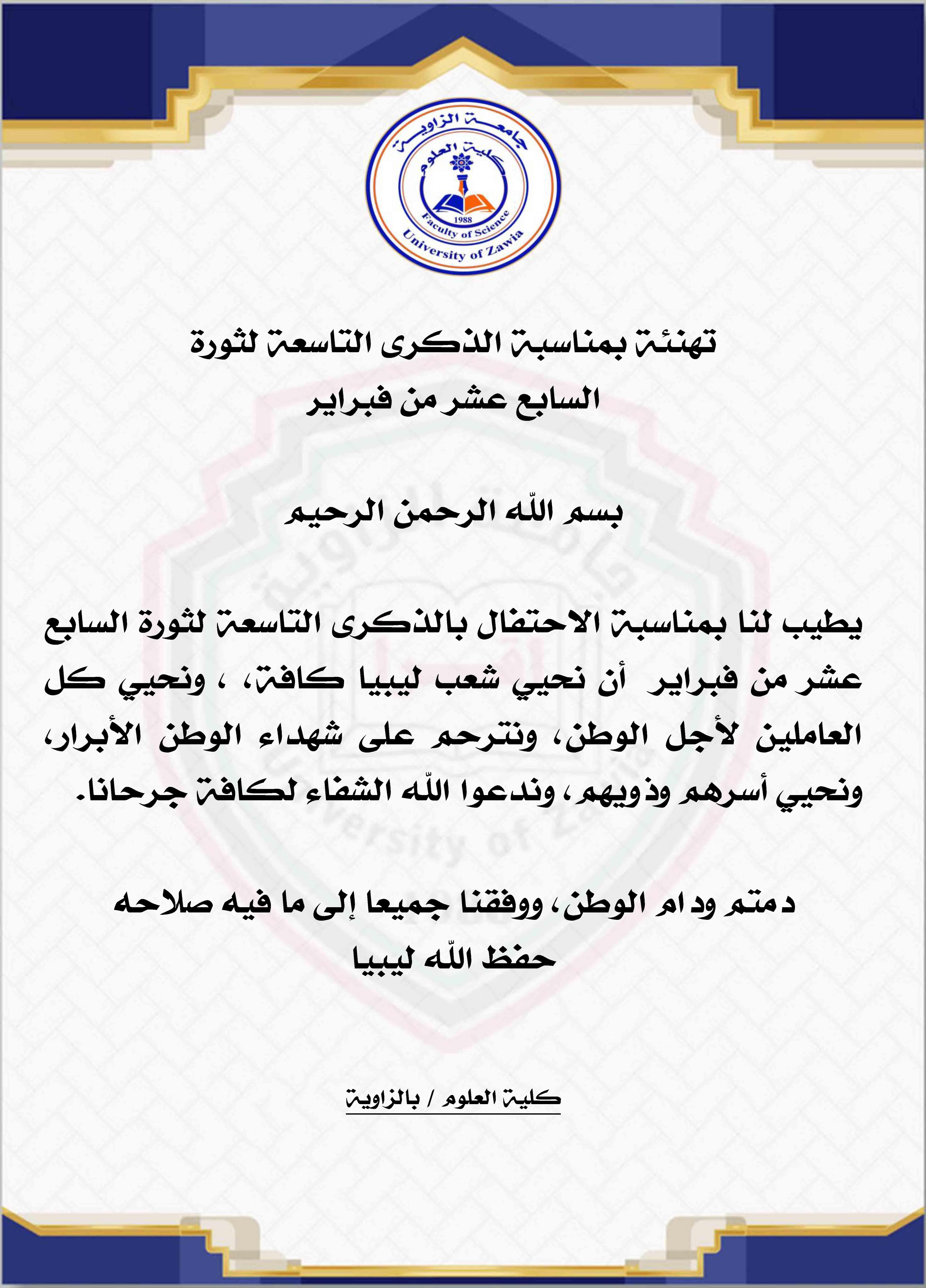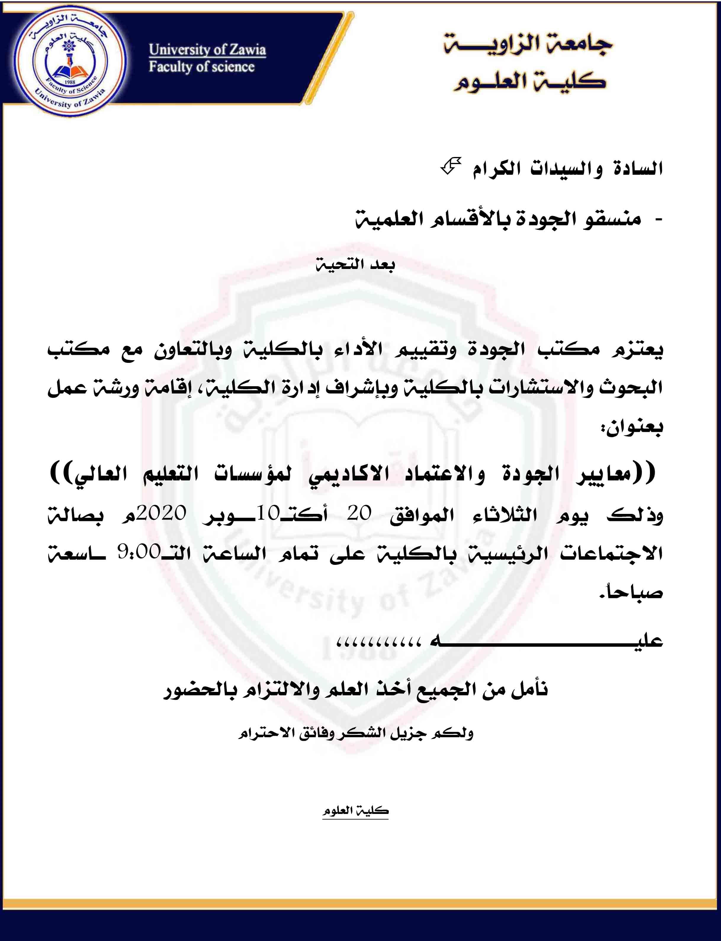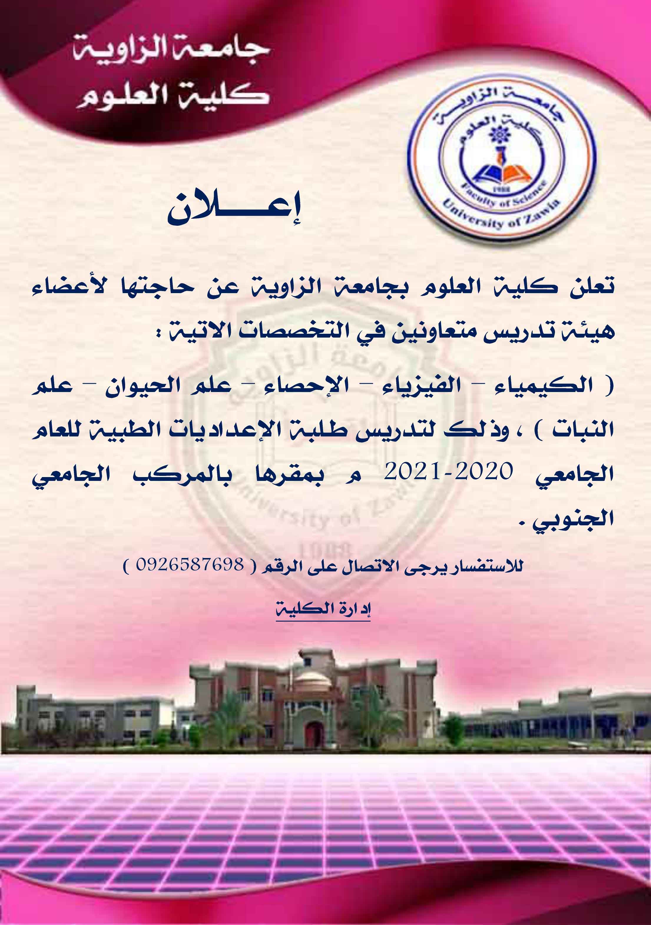 الي جميع طلبة وطالبات كلية العلوم بجامعة الزاوية