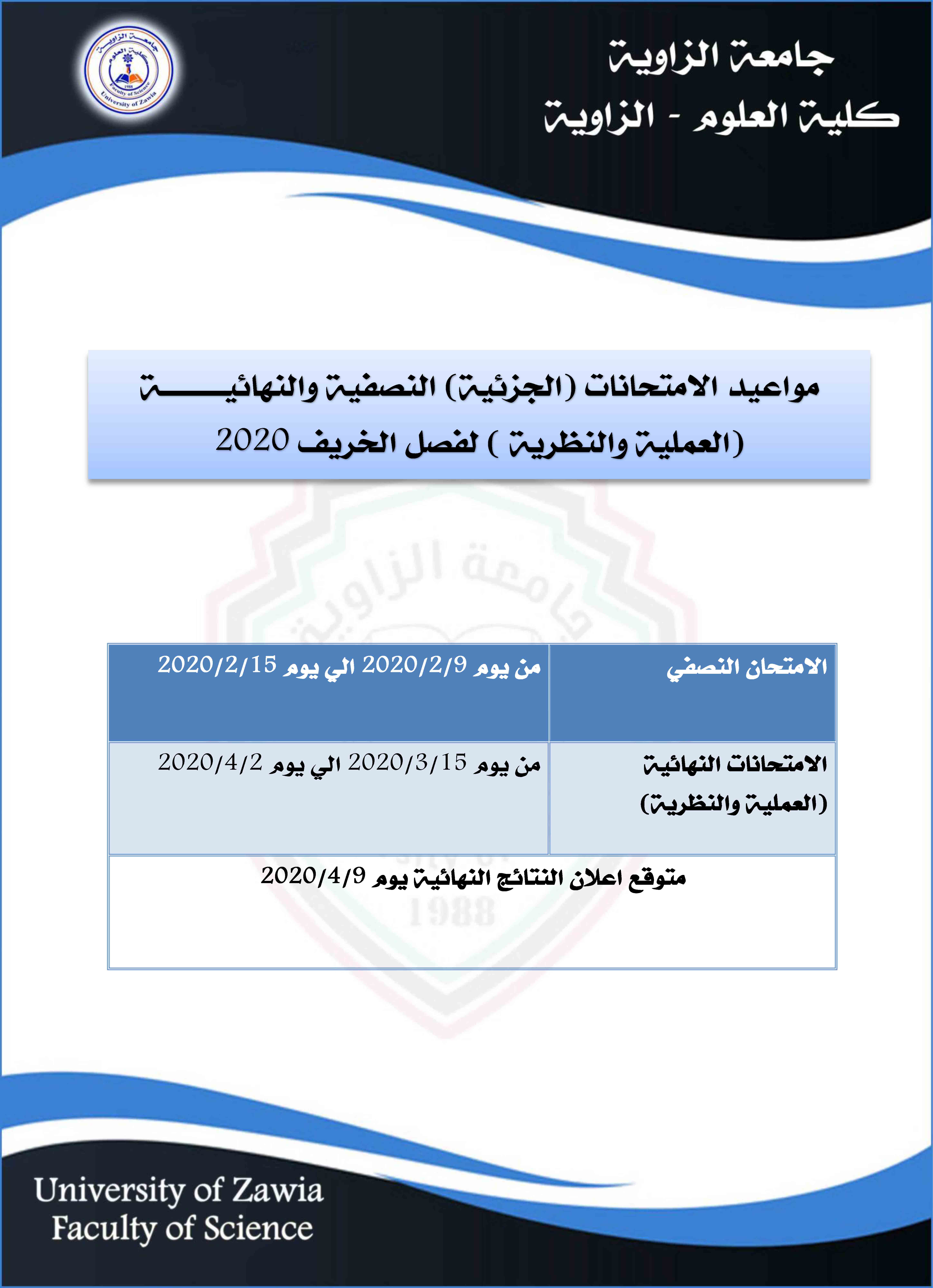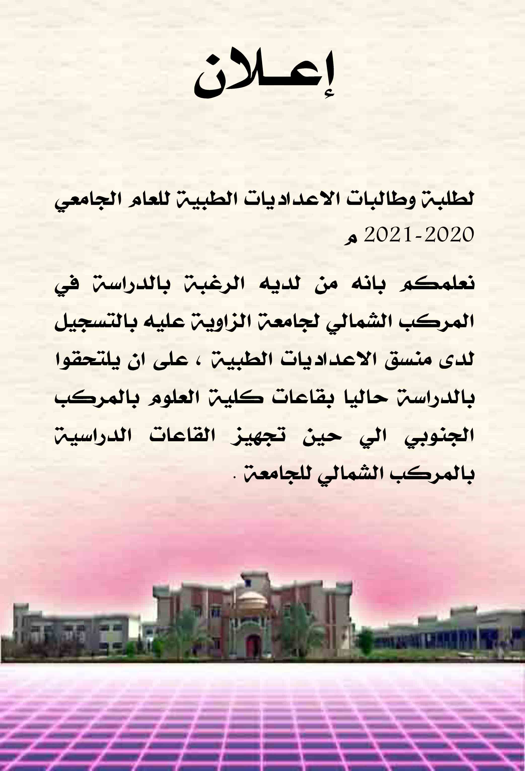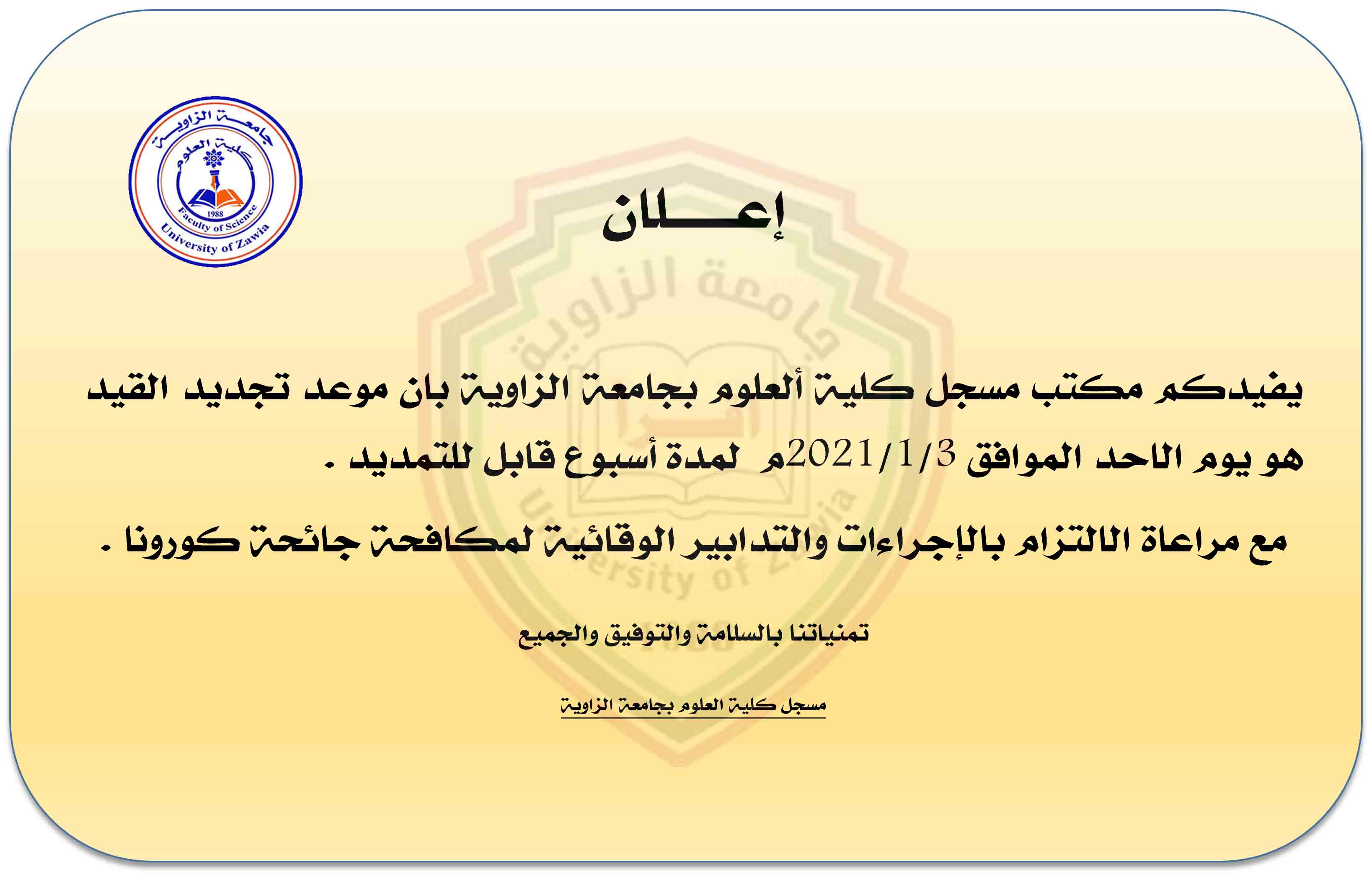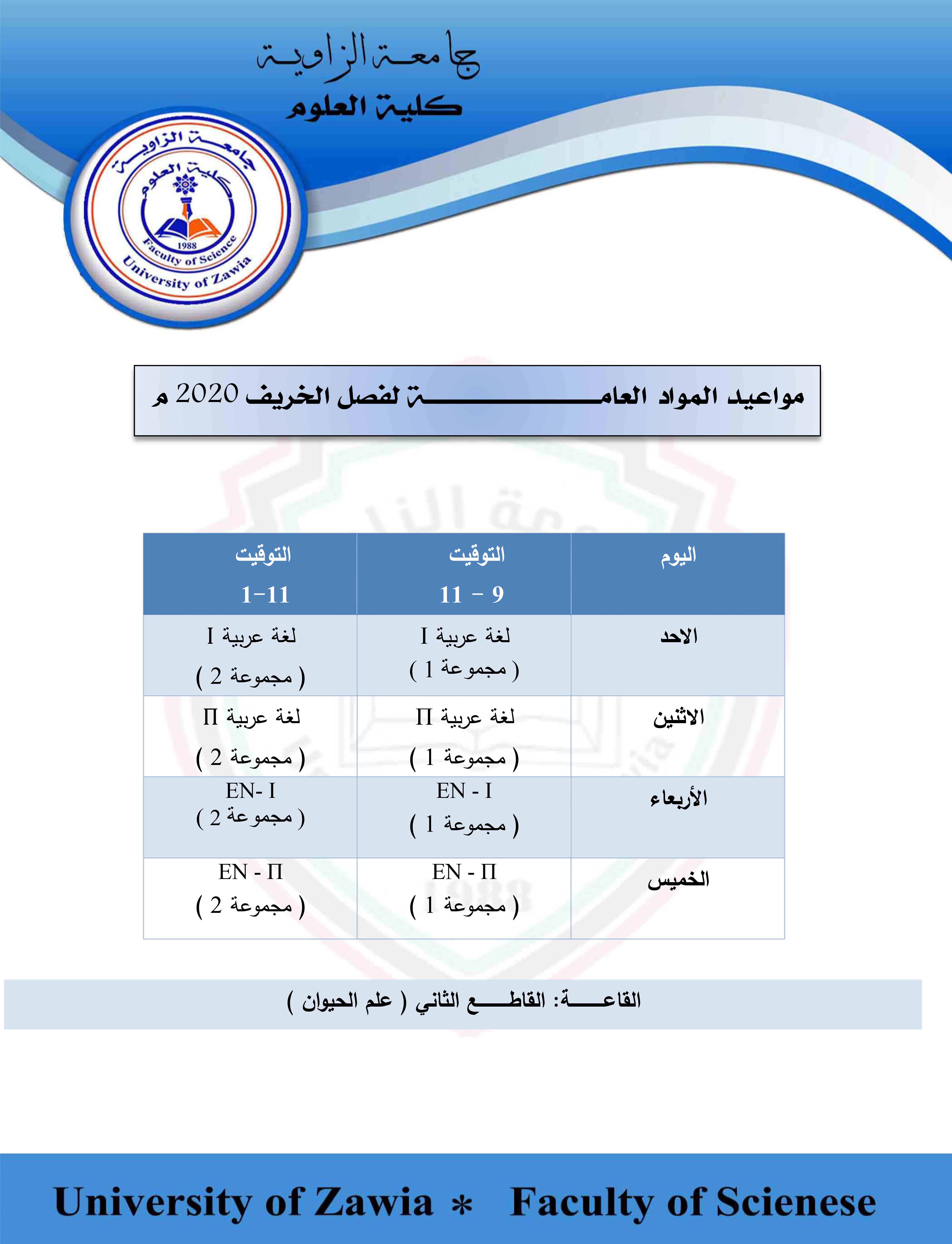 الي جميع طلبة وطالبات كلية العلوم بجامعة الزاوية