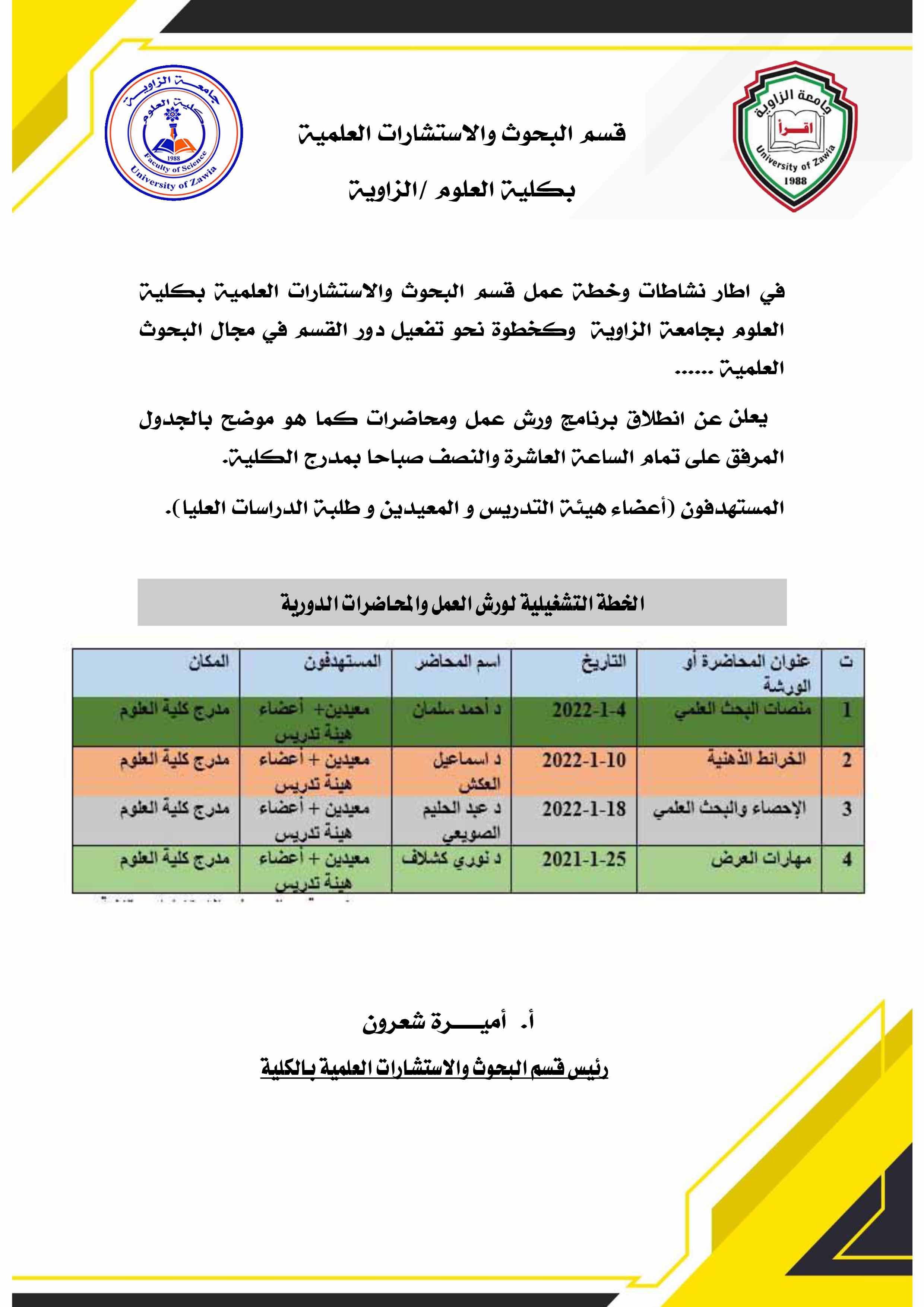 رئيس قسم البحوث والاستشارات بكلية العلوم بجامعة الزاوية