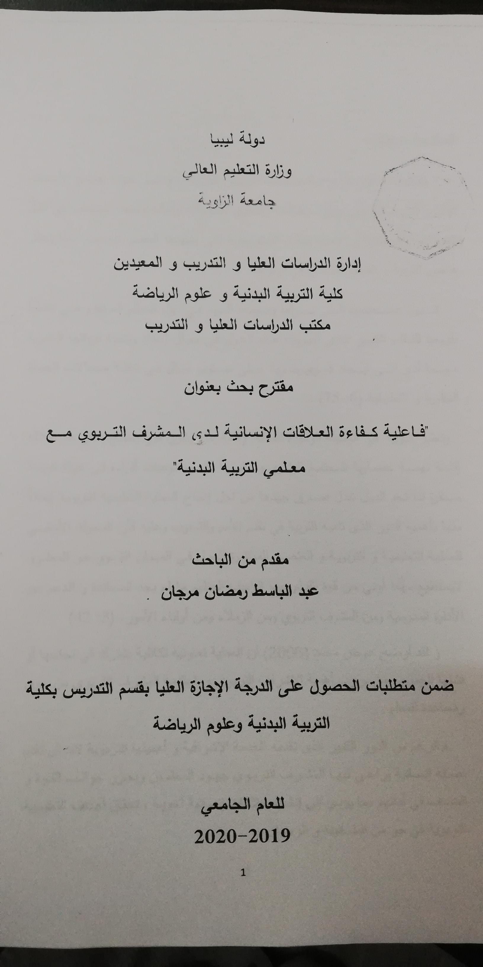 مناقشة موضوع بحث // بعنوان فاعلية كفاءة العلاقات الإنسانية لدى المشرف التربوي مع معلمي التربية البدنية/ للدارس عبدالباسط رمضان مرجان يوم غداً الأربعاء على تمام الساعة العاشرة صباحاً بمقر الكلية....