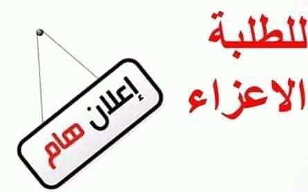 أبنائي طلاب السنة الأولى.... أُعلمكم بأنه تقرر إجراء الأمتحان بمقرر علم الإجتماع الرياضي ذلك يوم الثلاثاء الموافق 3-3-2020أثناء المحاضرة الأولى للأهمية يطلب أخذ العلم بذلك... أستاذ المادة