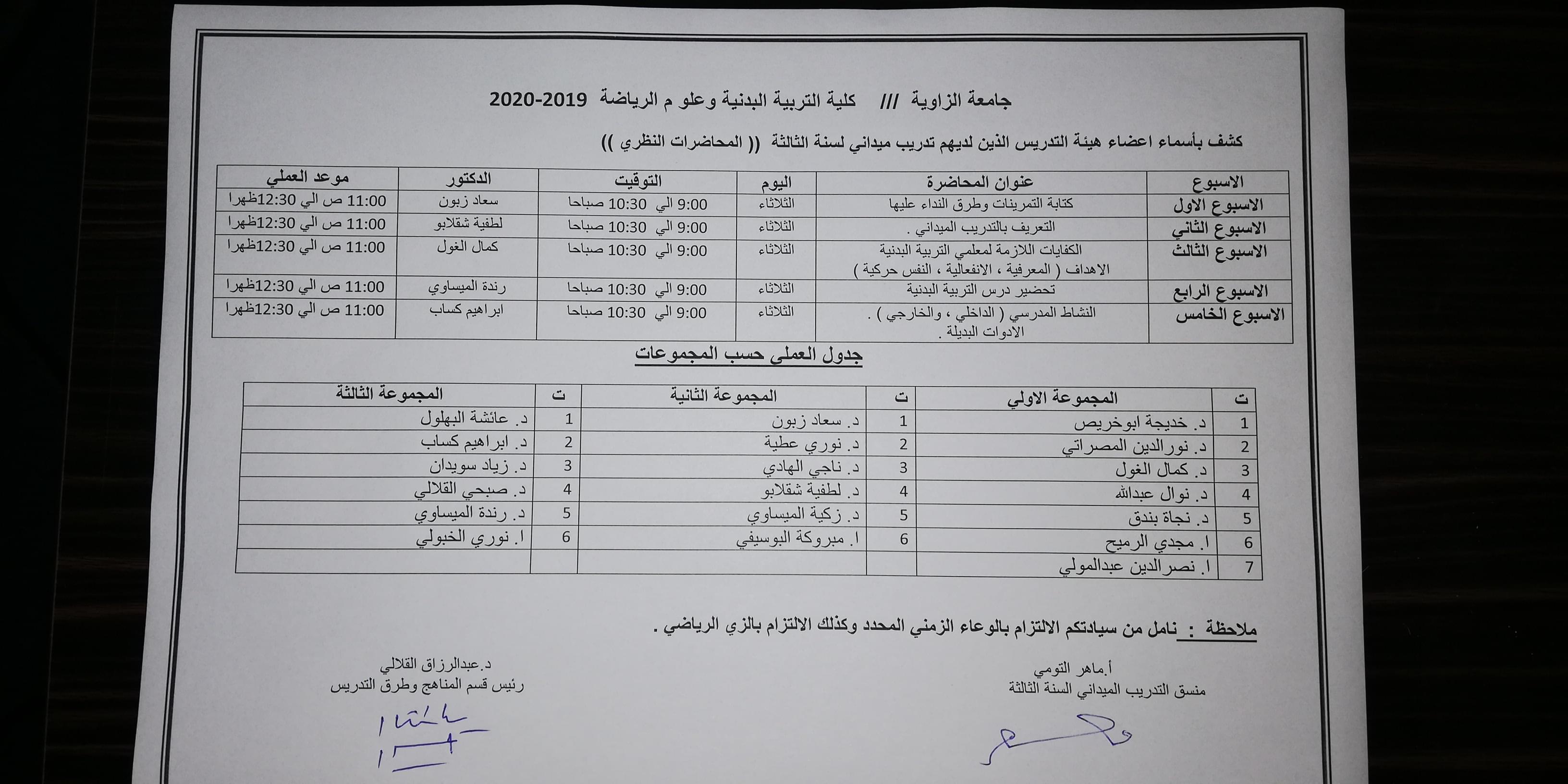 يُعلن قسم المناهج وطرق التدريس عن توزيع مهام مقرر التدريب الميداني الشق العملي والنظري للسنة الثالثة.