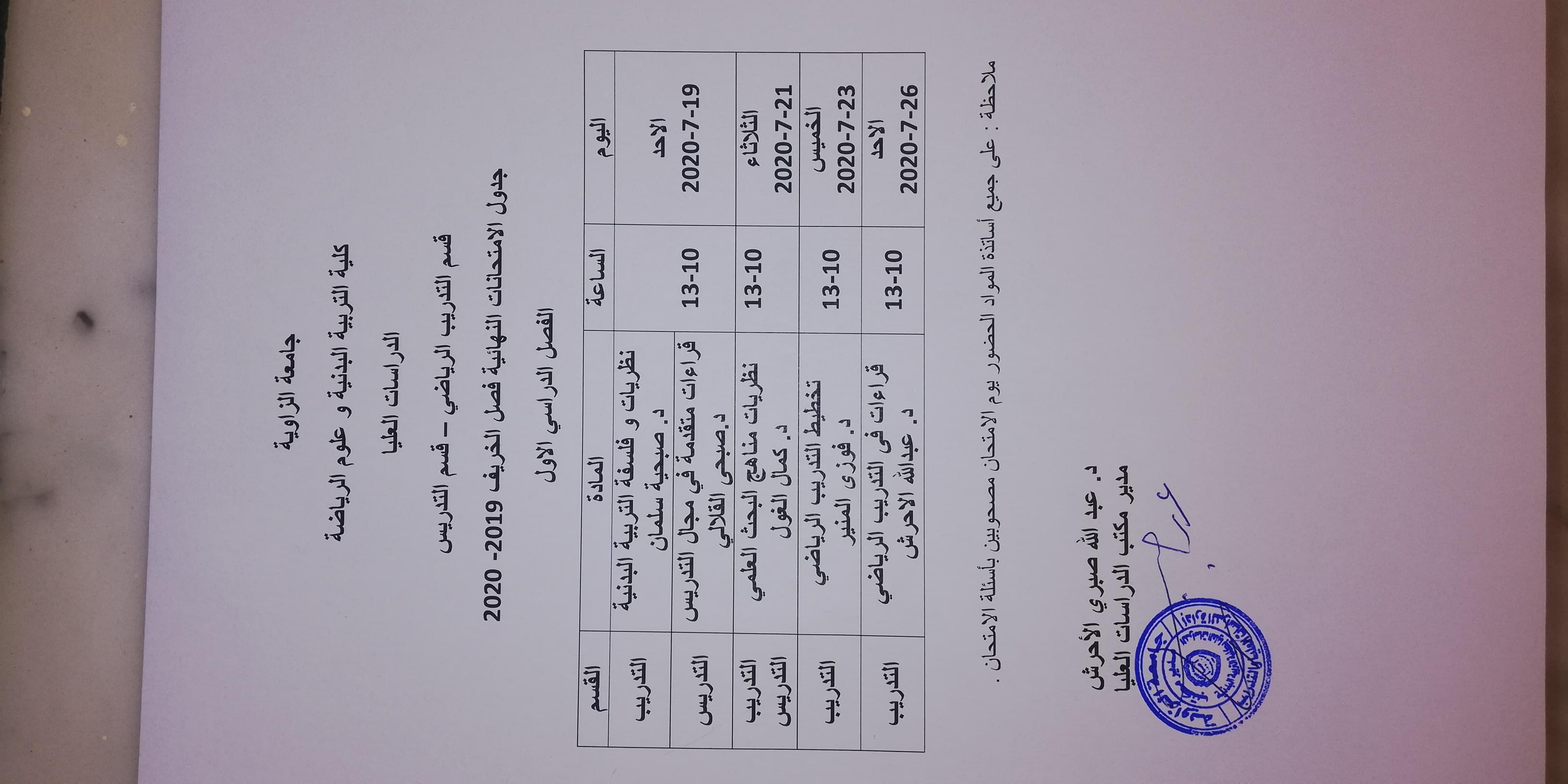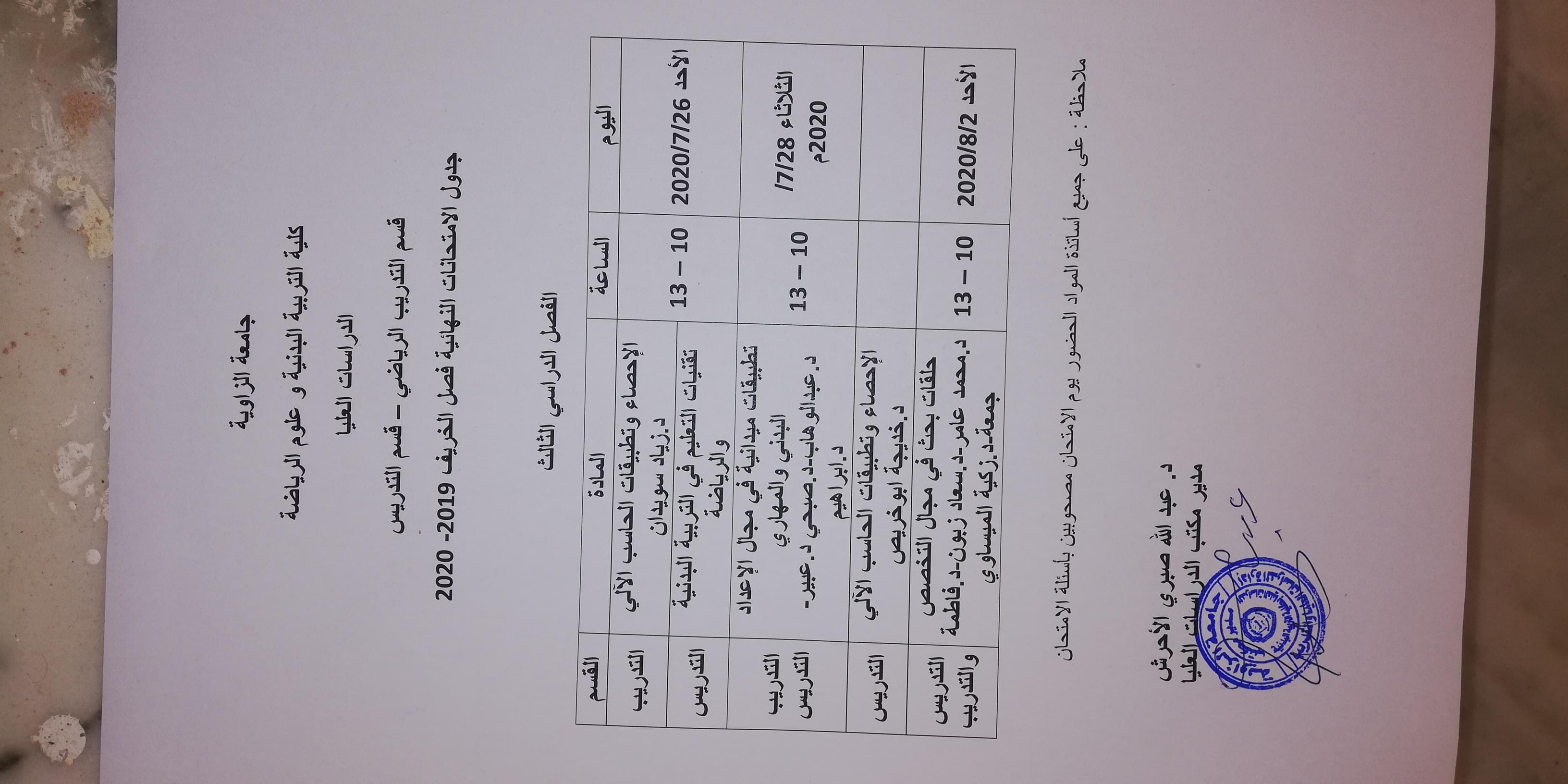 تُعلن كلية التربية البدنية وعلوم الرياضة إجراء إمتحانات طلبة الدراسات العليا حسب الجدول المرفق...