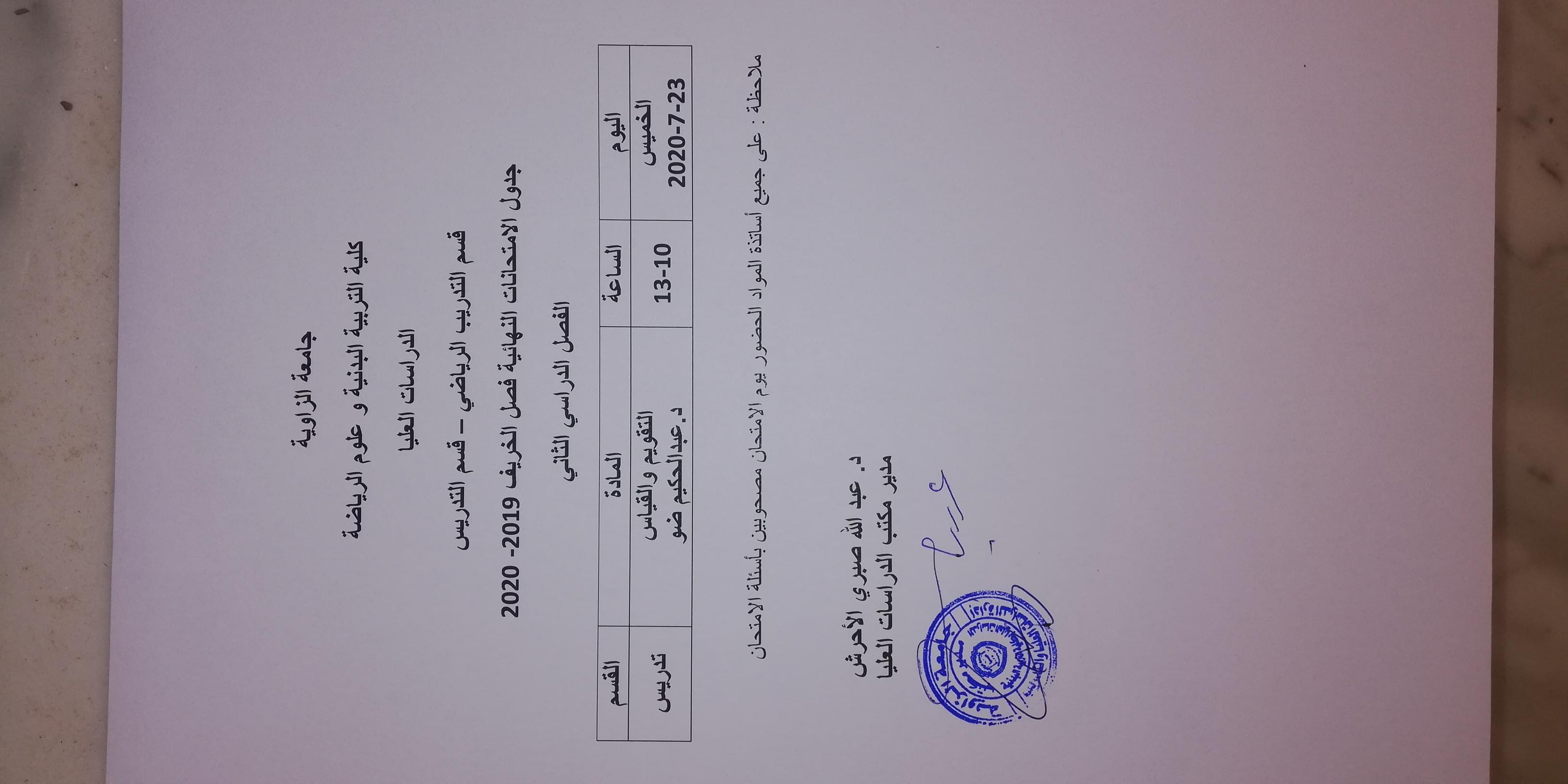 إمتحانات فصل الربيع لطلبة الدراسات العليا بكلية التربية البدنية وعلوم الر ياضة