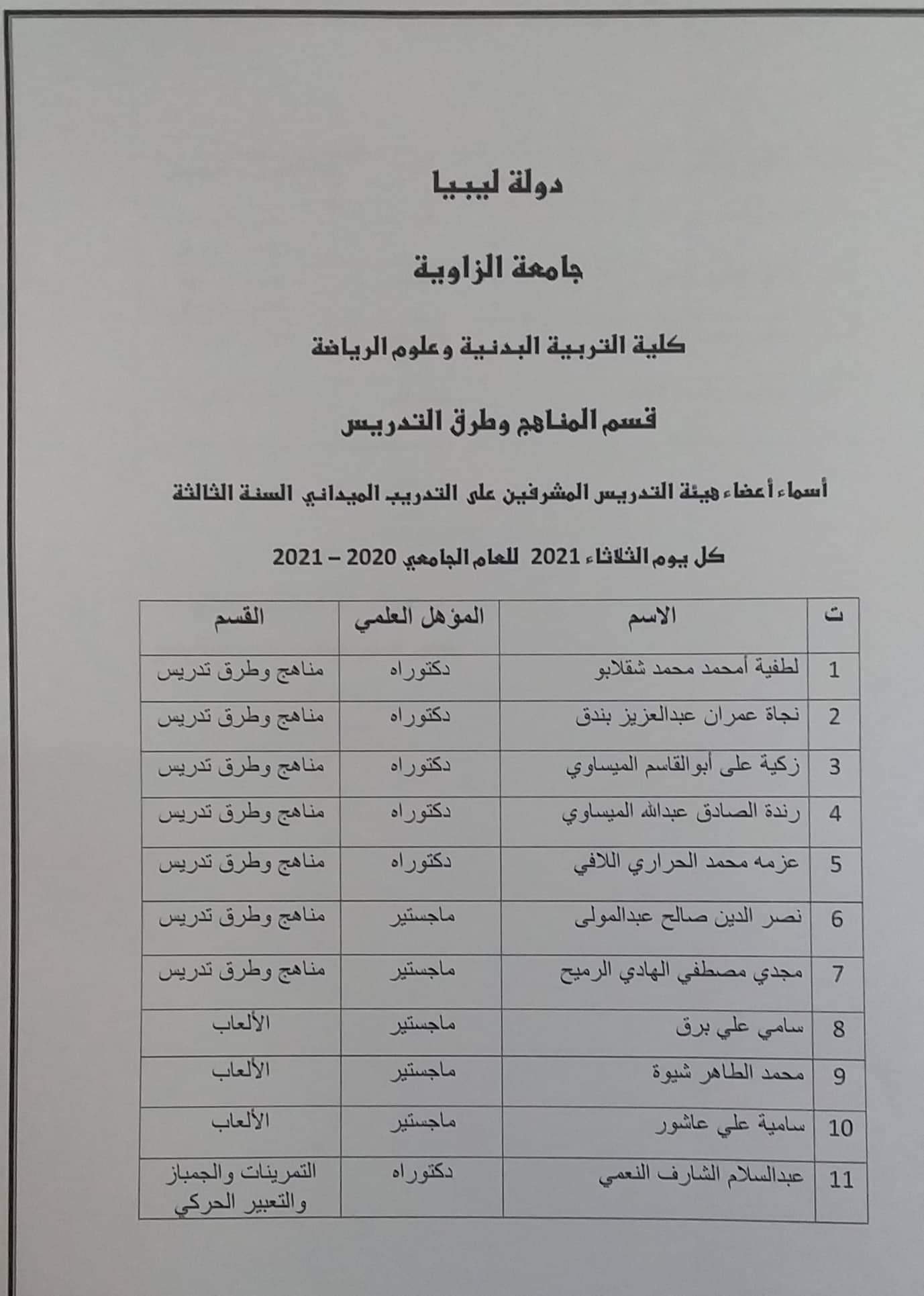 إعلان للمشرفين على التدريب الميداني بكلية التربية البدنية وعلوم الرياضة