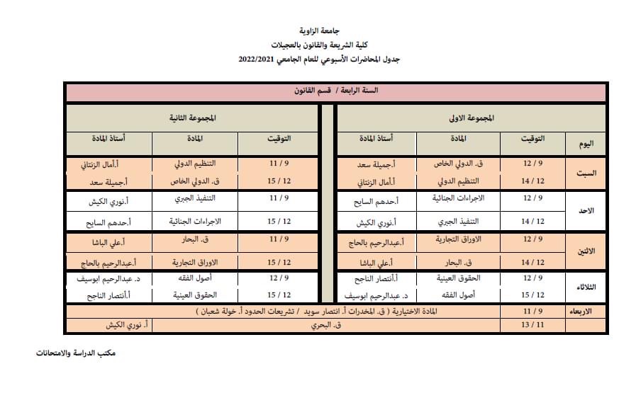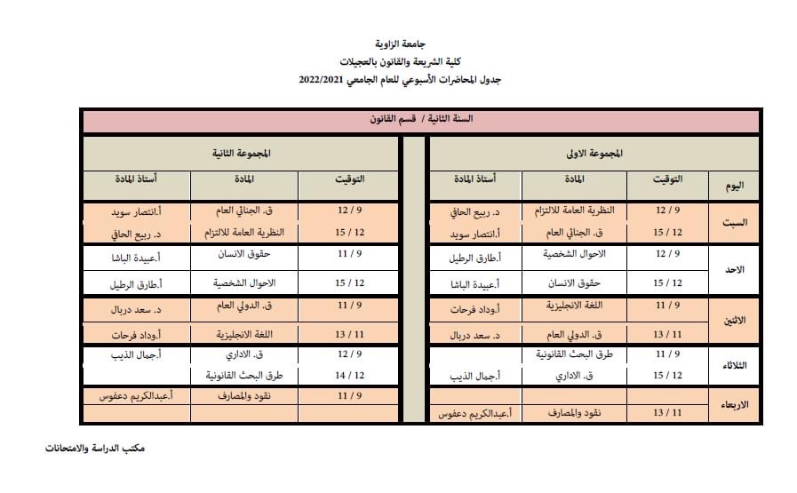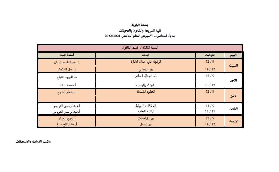 الجدول الدراسي