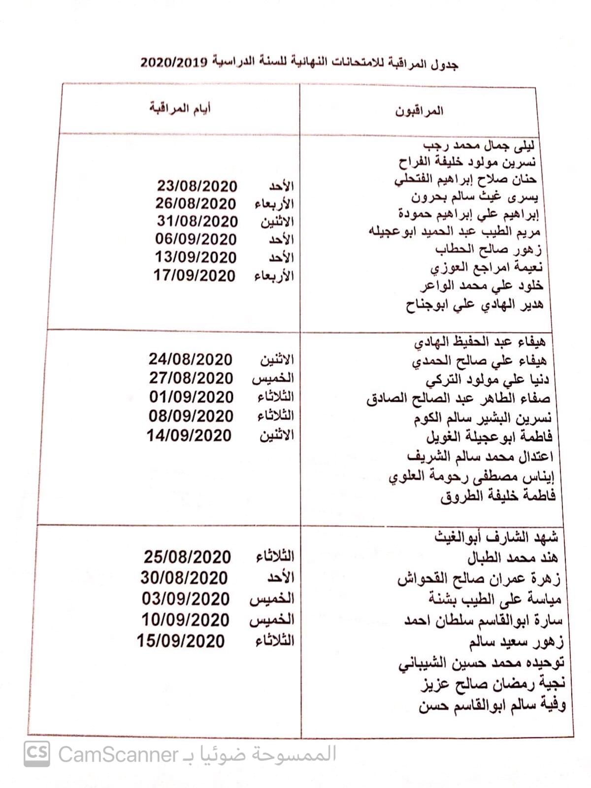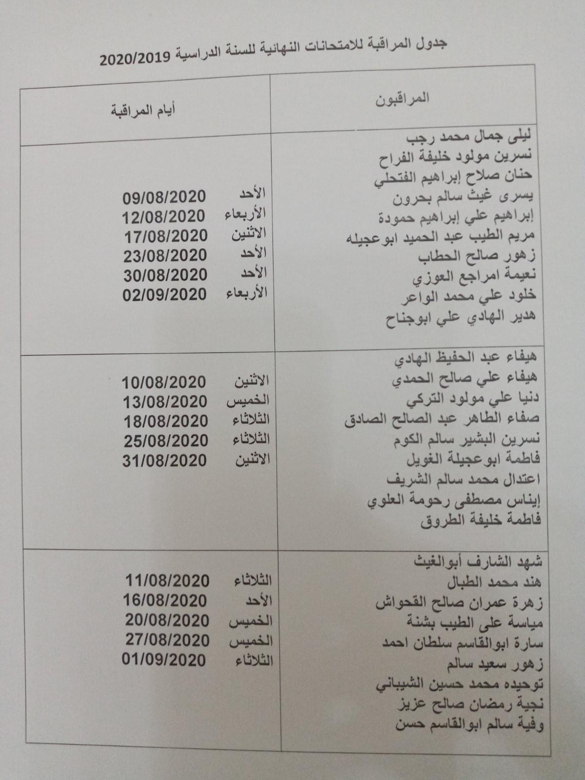يطلب من جميع المعيدين والمعيدات بالكلية متابعة سير الامتحانات النهائية الدور التاني لسنة الاعداد كلا حسب الجدول المرفق أدناه
