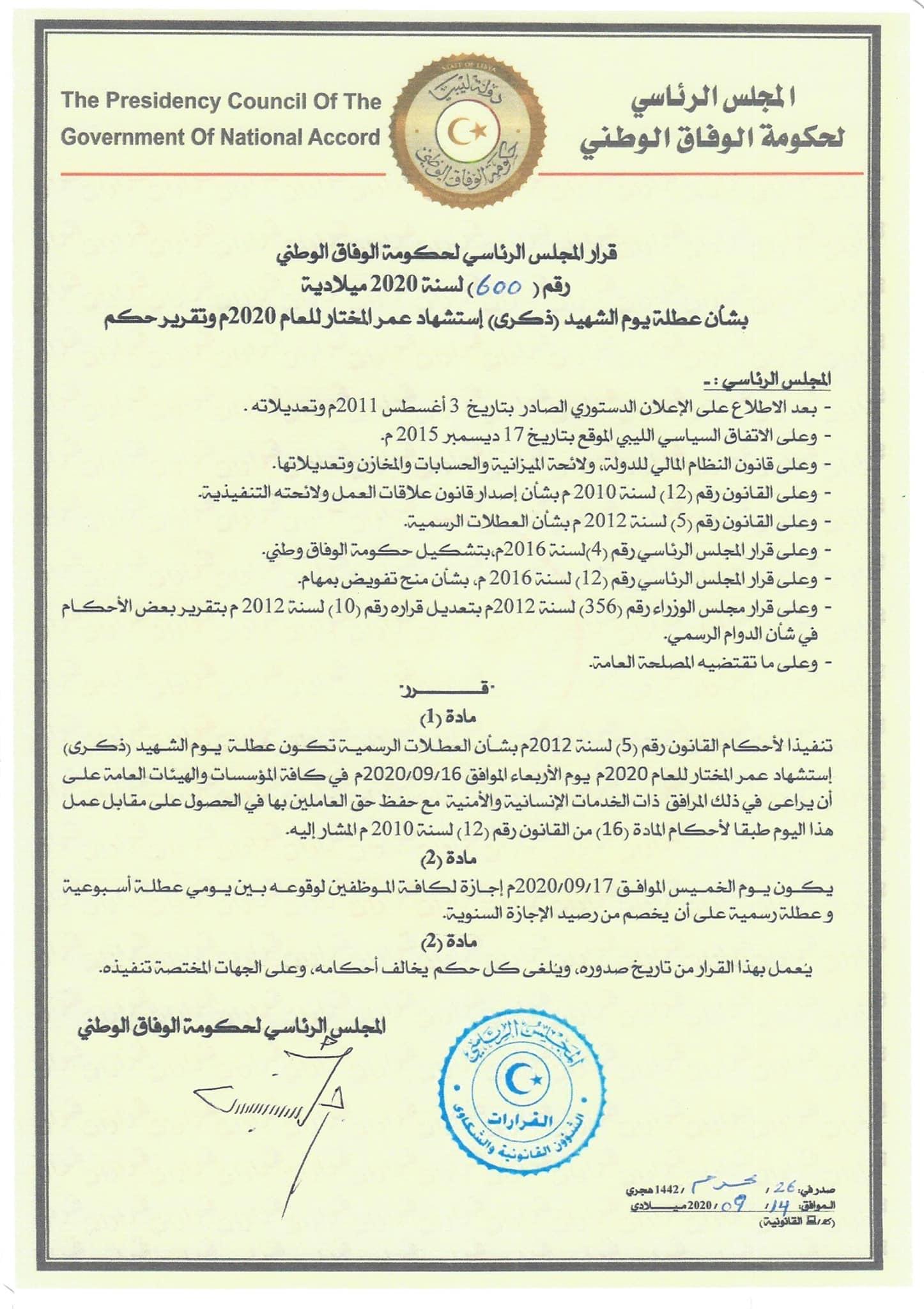 بمناسبة حلول الذكرى التاسعة لثورة 17 فبراير نعلمكم أن يوم الأحد و والاثنين القادمين عطلة رسمية وتأجل الامتحانات ليوم الأحد الي حين أشعار آخر .