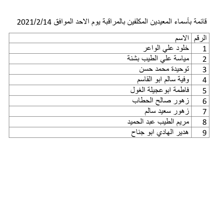 25/3/2021 للمراقبه على اﻻمتحان النهائى لطﻻب السنه اﻻولى والثالثه.