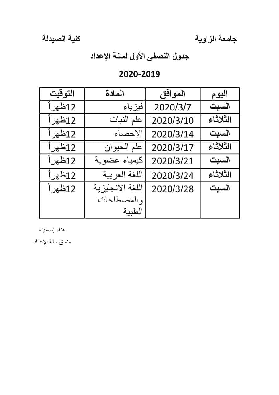 نأمل منكم تنظيم سير الامتحانات والمراقبة لسنة الاعداد وفقا للجدول المرفق.