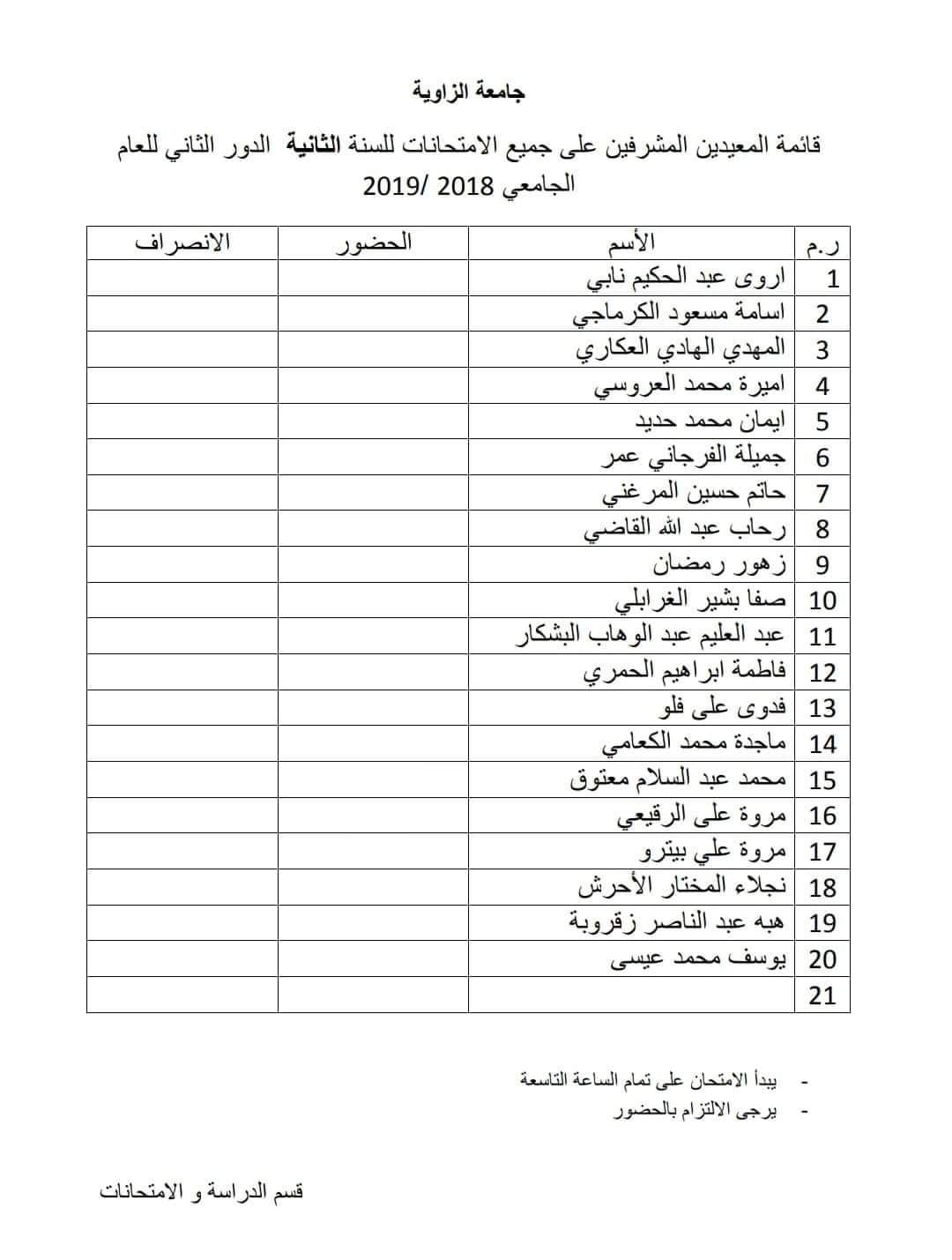 قائمة بأسماء المعيدين المراقبين على امتحان الدور الثاني السنة الأولى والثانية لجميع المواد