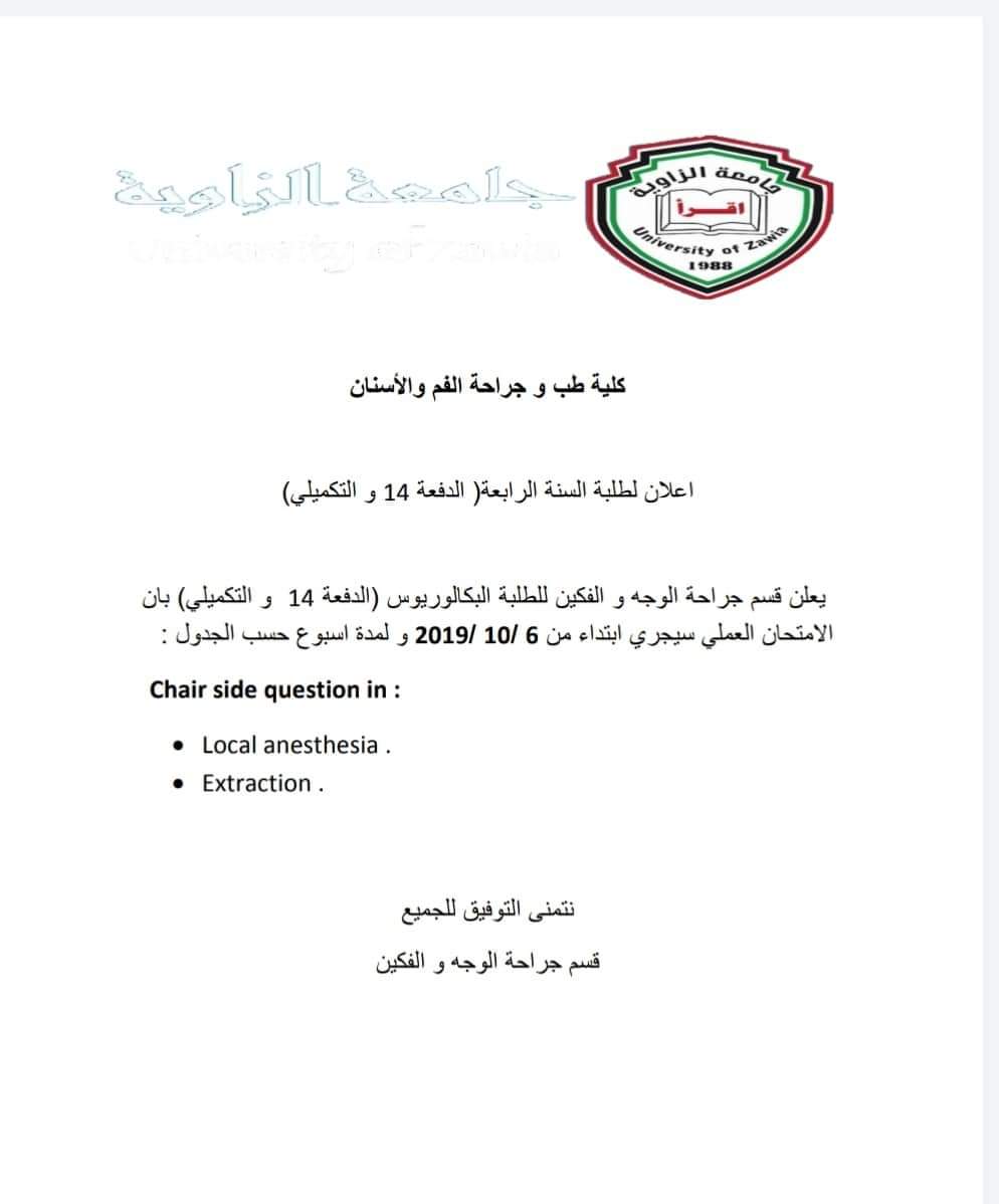 إعلان لطلبة السنه الرابعة الدفعة 14 والتكميلي