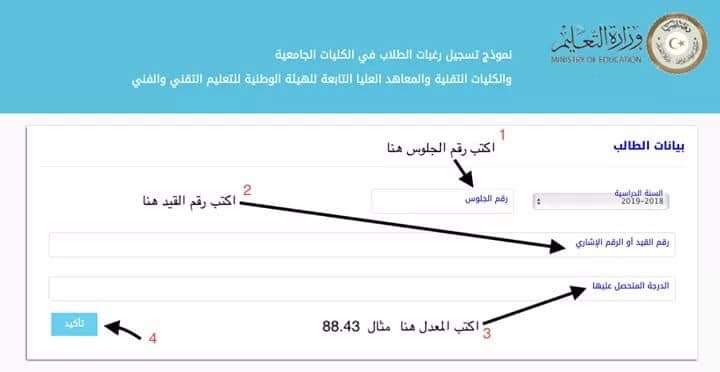 * طريقة التسجيل بمنظومة تسجيل رغبات الطالب في التسجيل بالكليات والجامعية والتقنية والمعاهد العليا ...