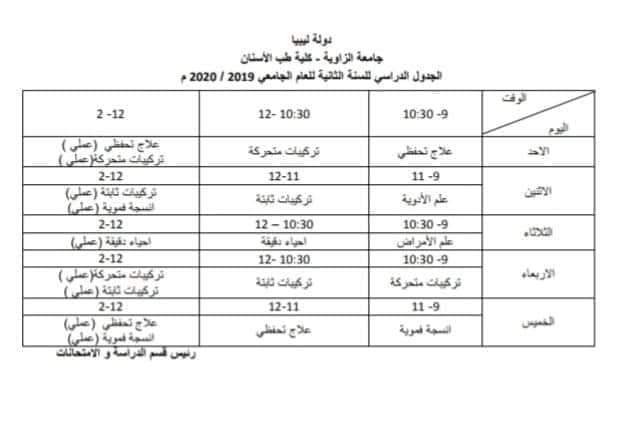 الجدول الدراسي الخاص بطلبة السنة الثانية أسنان