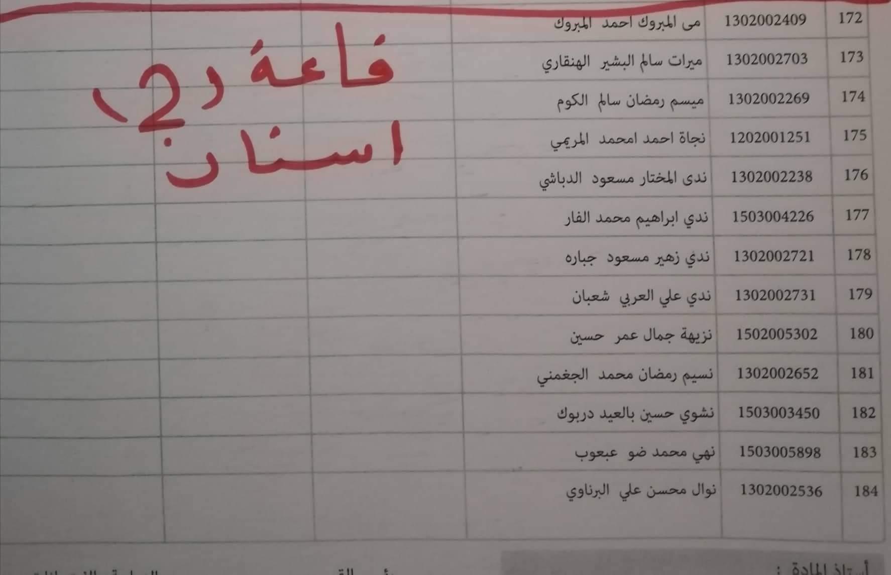 توزيع القاعات لطلبة السنه الرابعة الدفعة 14 للامتحان النظري لمادة علاج اللثه ليوم السبت الموافق 28 / 12 / 2019 على تمام الساعة 9