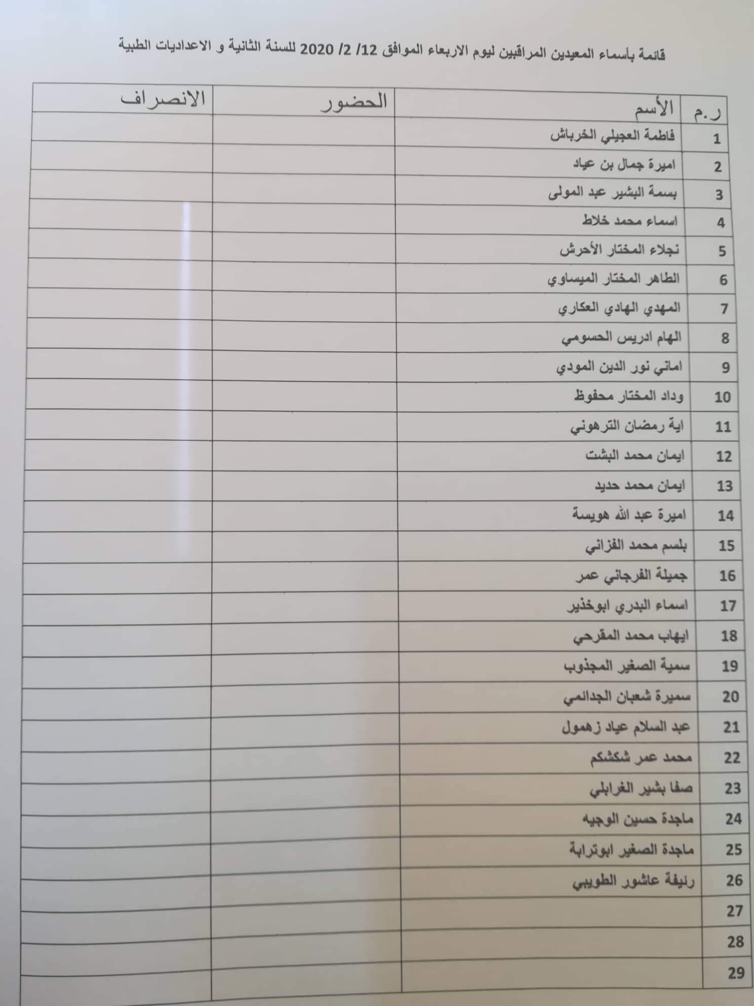 قائمة بأسماء المعيدين المراقبين على امتحان النصفي يوم الأربعاء من كل أسبوع
