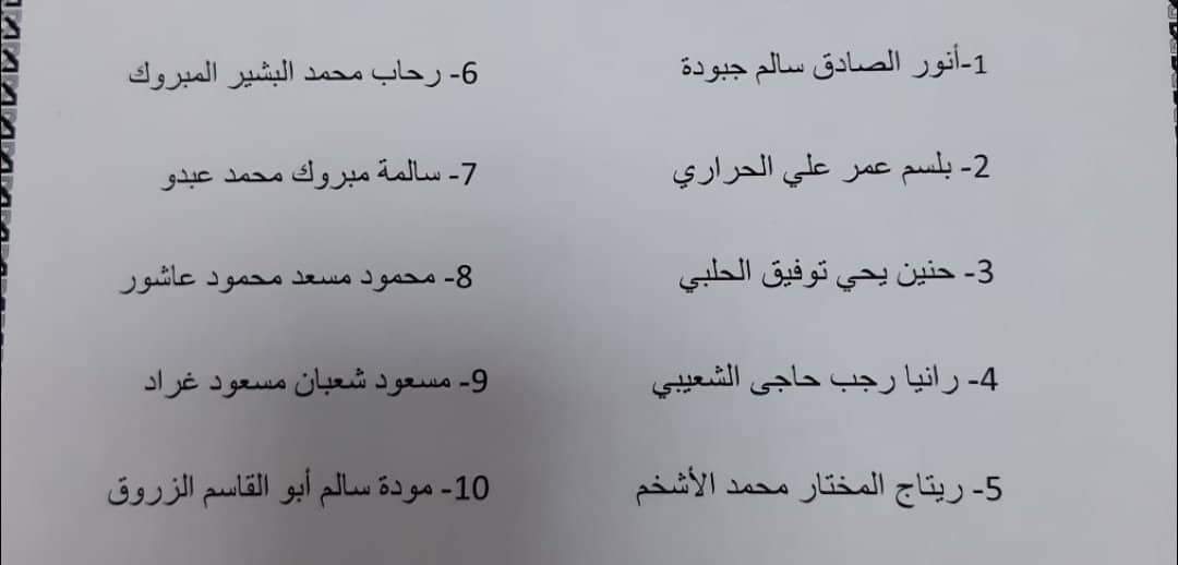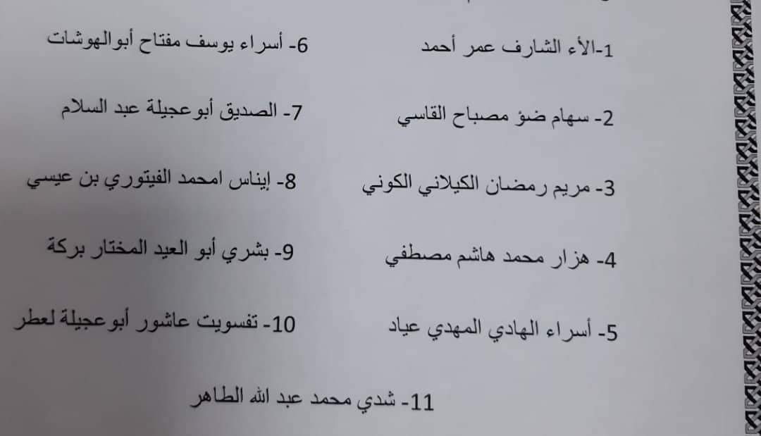 يطلب من جميع الطلبه الاتي أسمائهم مراجعة مكتب المسجل للأمر يخصهم يرجى الالتزام بالحضور.