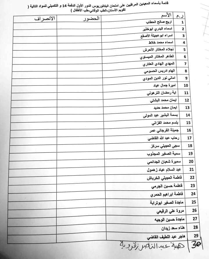 قائمة بأسماء المعيدين المراقبين على امتحان الدور الأول الدفعة 14 والتكميلي